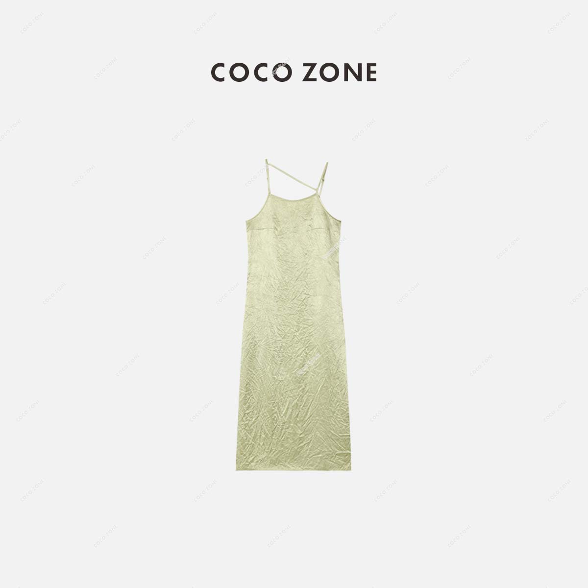 COCO ZONE 高级感吊带连衣裙褶皱感开叉设计裙子 23C18617