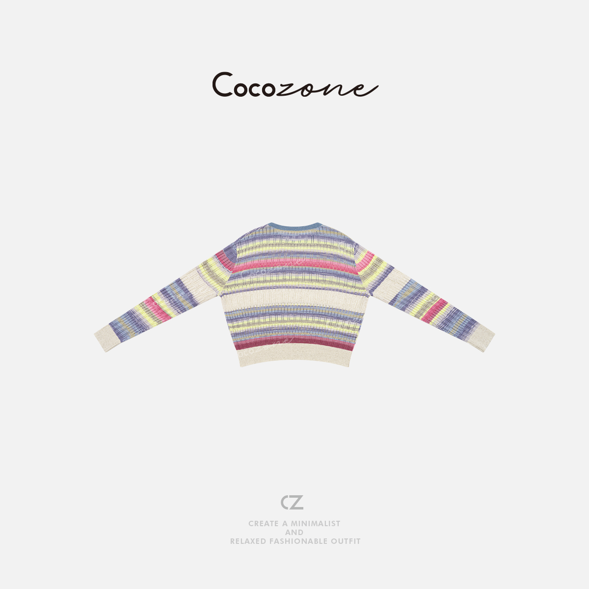 COCO ZONE 刘一一 定制晕染条纹清爽透气落肩毛针织衫CD1A0717