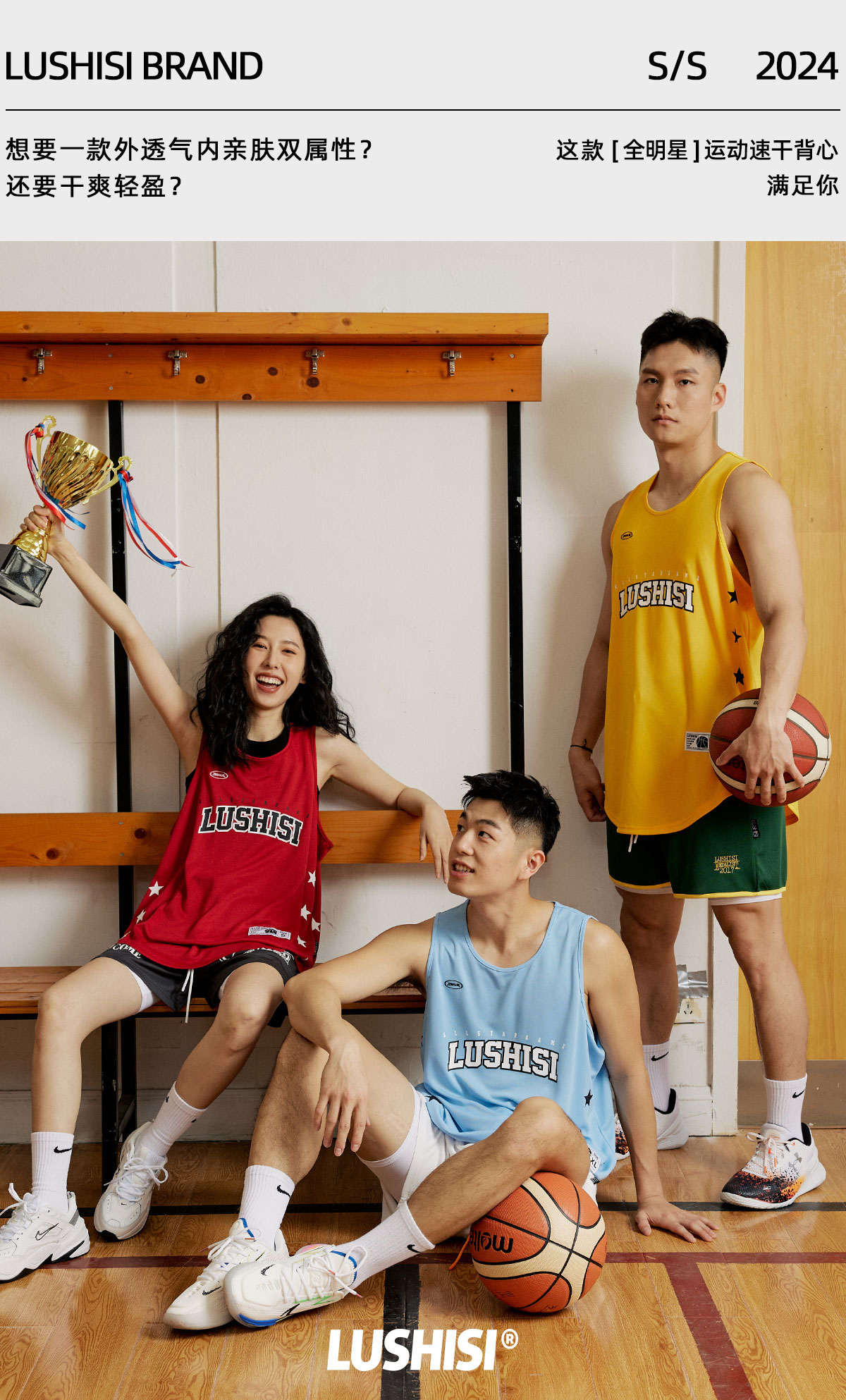 LUSHISI2024[全明星]系列美式街头篮球运动速干背心t恤宽松潮球衣