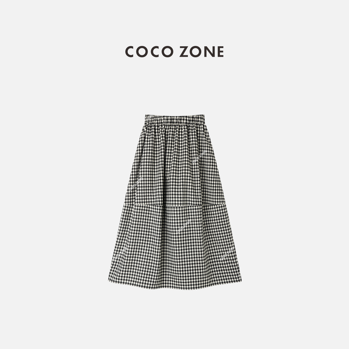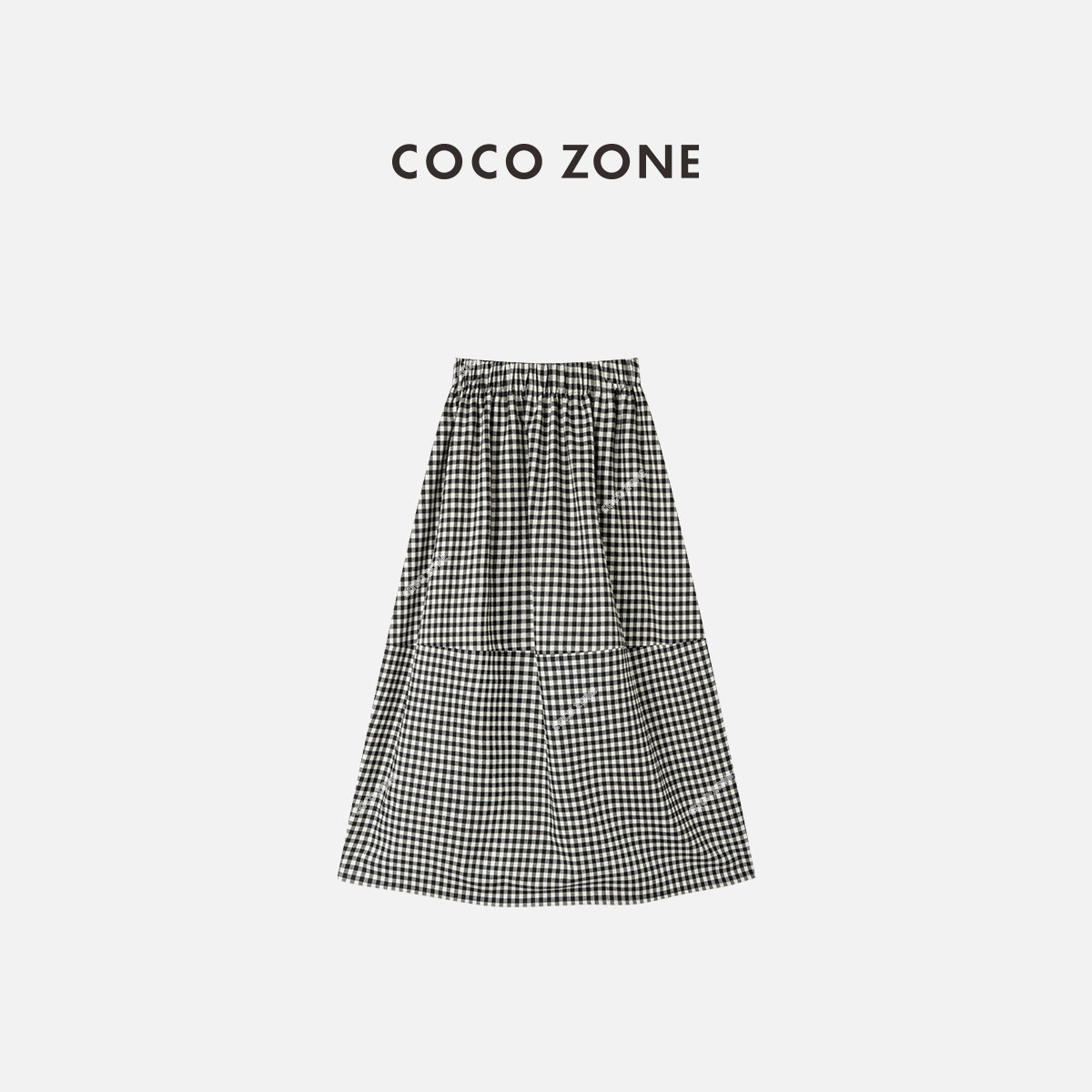 COCO ZONE 设计感格纹时尚半身裙松紧腰中长裙CC1D2372