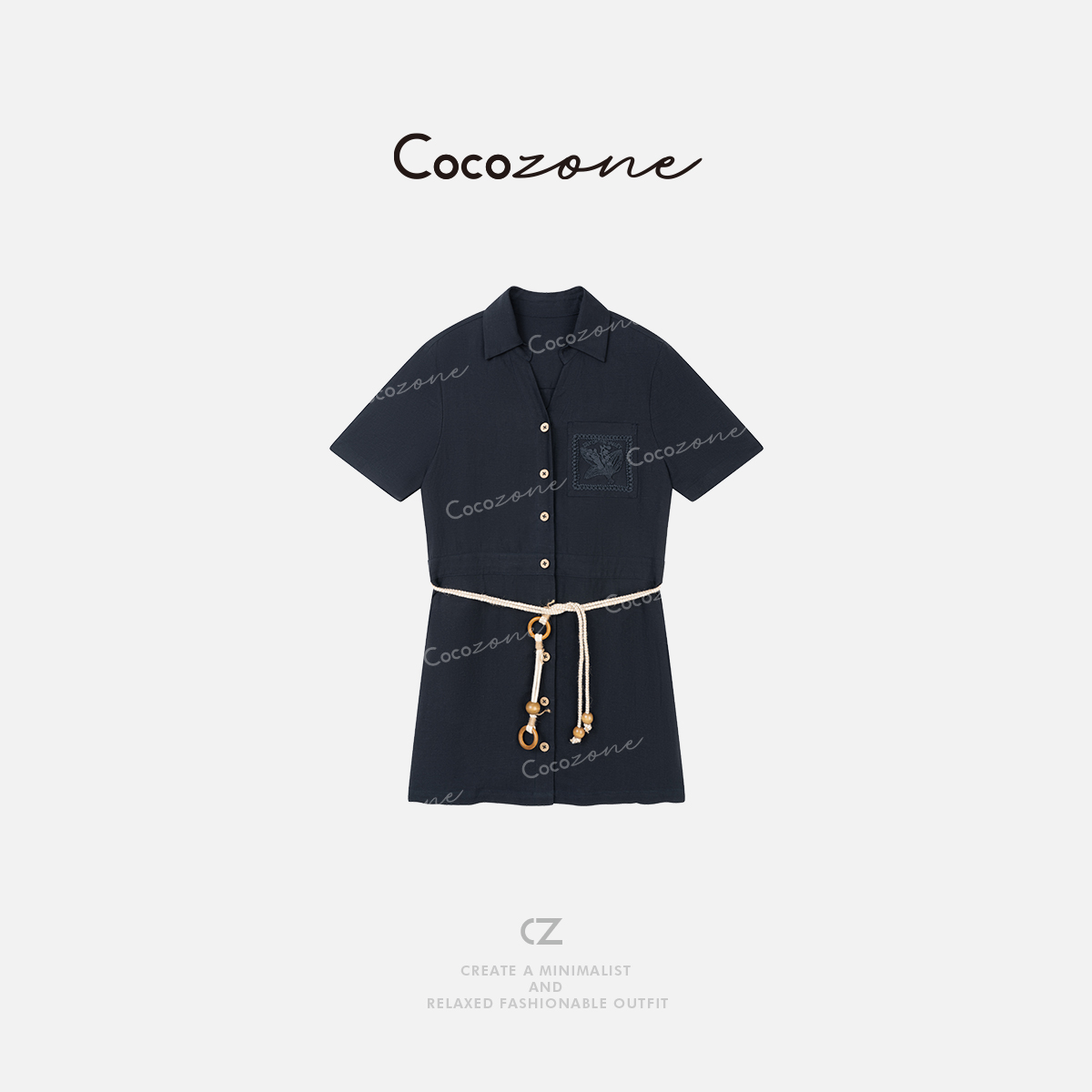 COCO ZONE 刘一一 【莱赛尔亚麻混纺】单排扣修身连衣裙CD1A0884