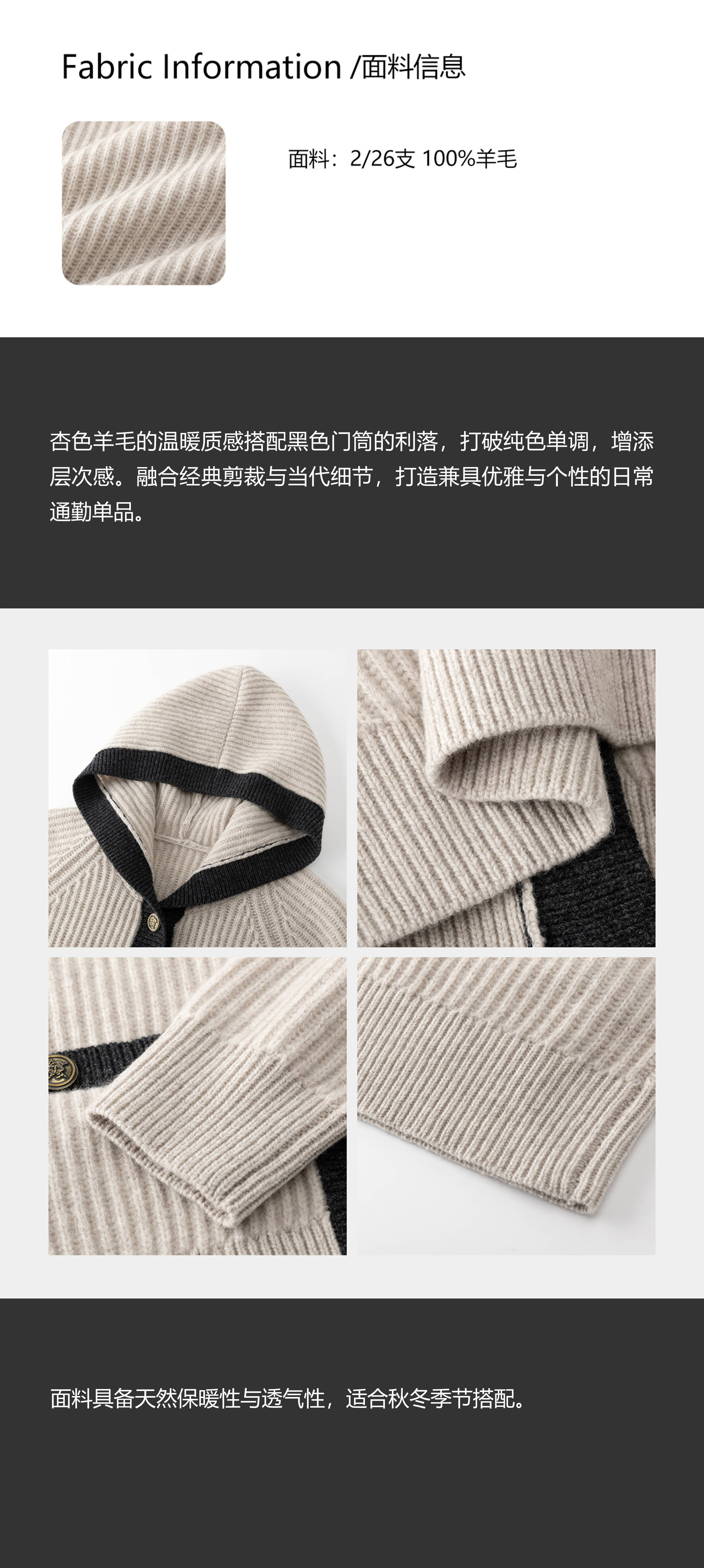 COCO ZONE 刘一一 “BC美学毛衣”绵羊毛混纺连帽外套 CD1A1171