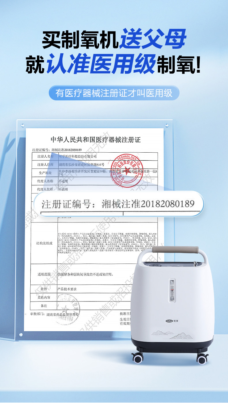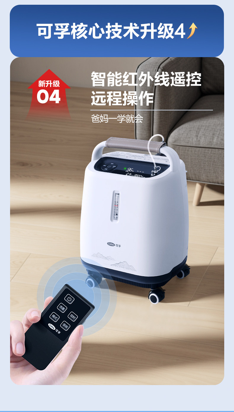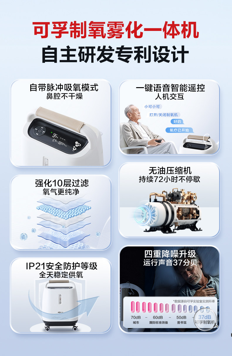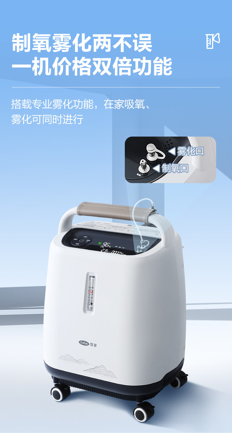 可孚制氧机家用吸氧机老人慢阻肺医用级氧气5L雾化一体机静音KF08