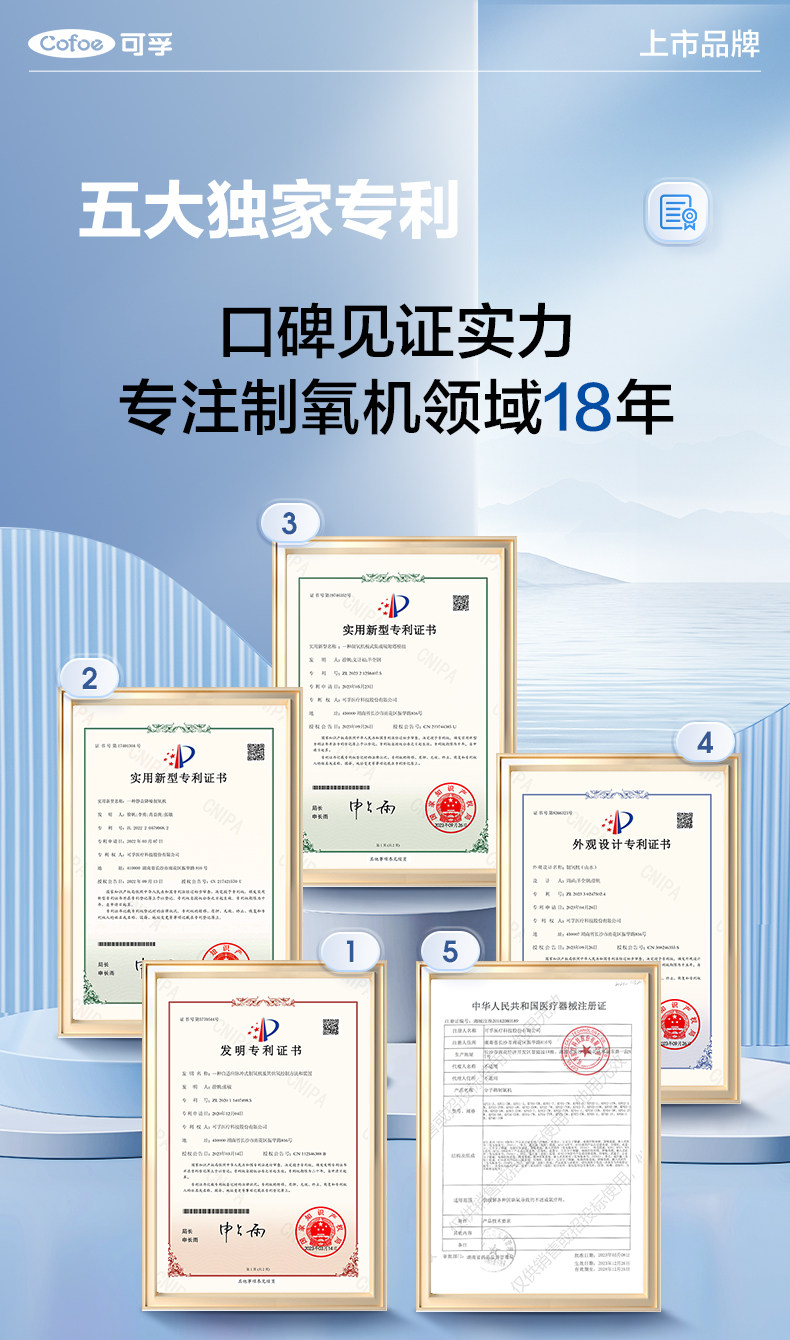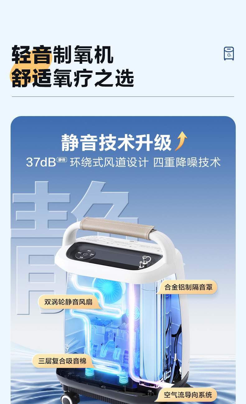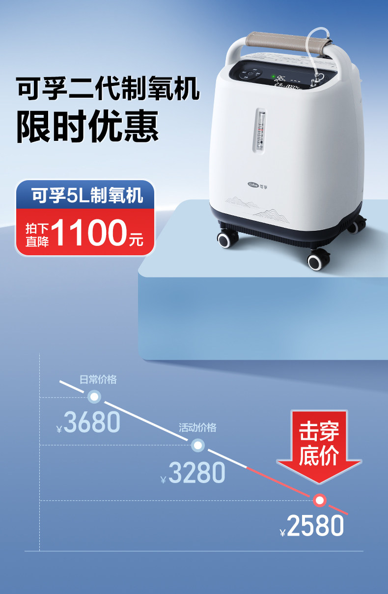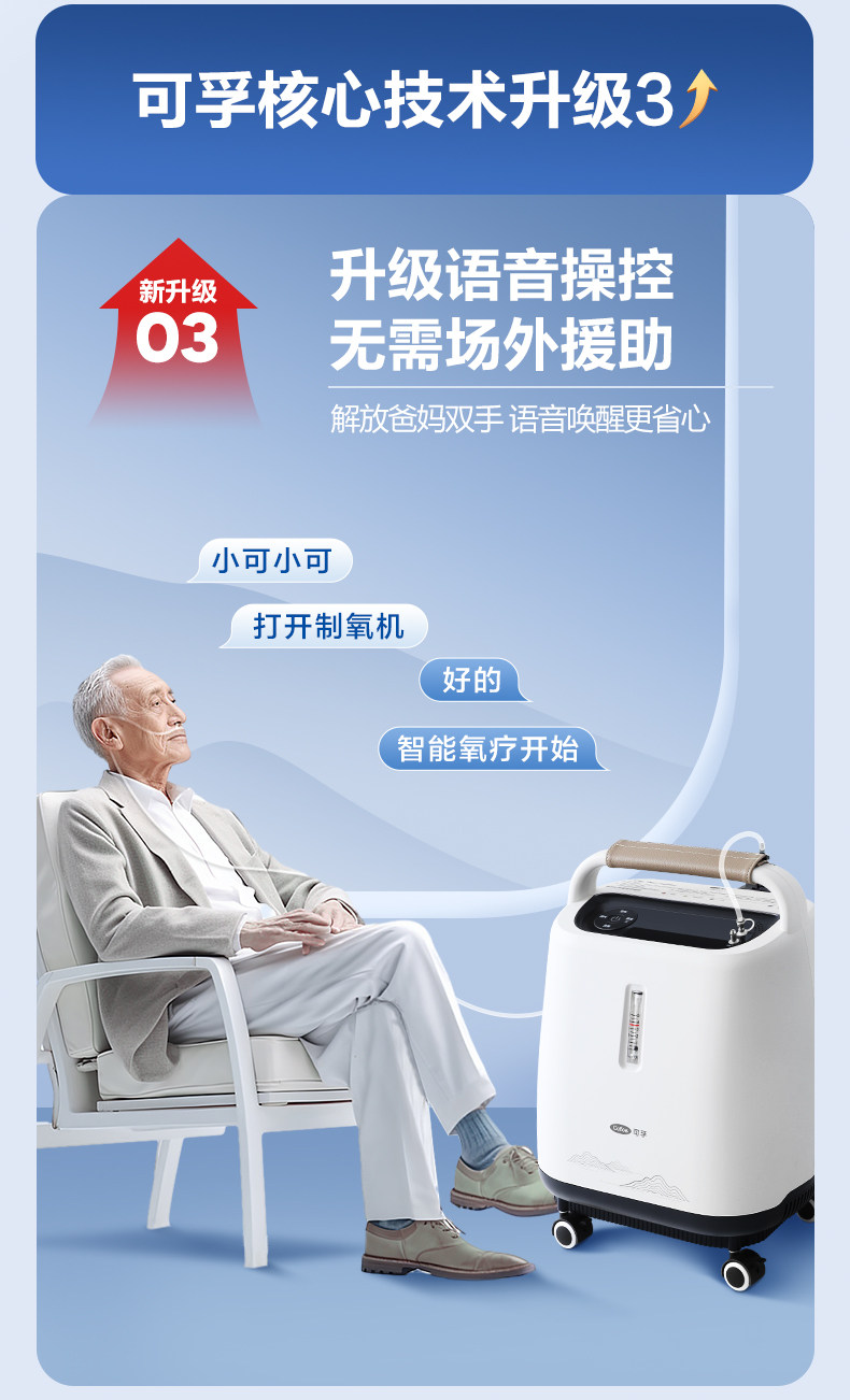 可孚制氧机家用吸氧机老人慢阻肺医用级氧气5L雾化一体机静音KF08