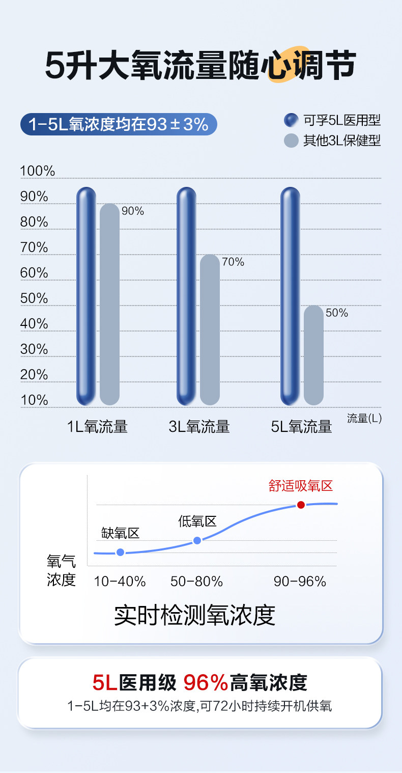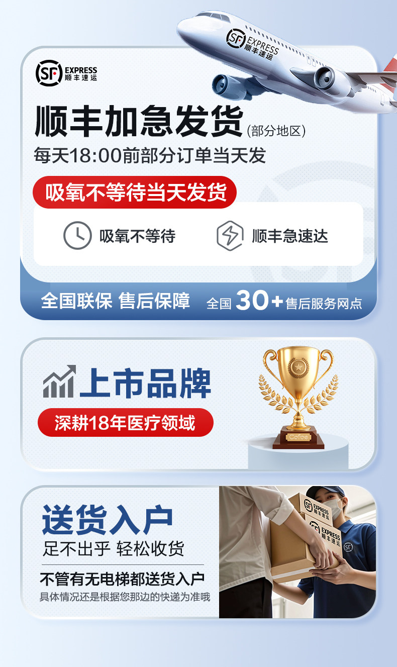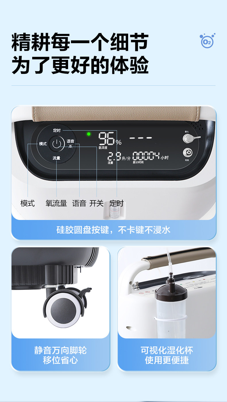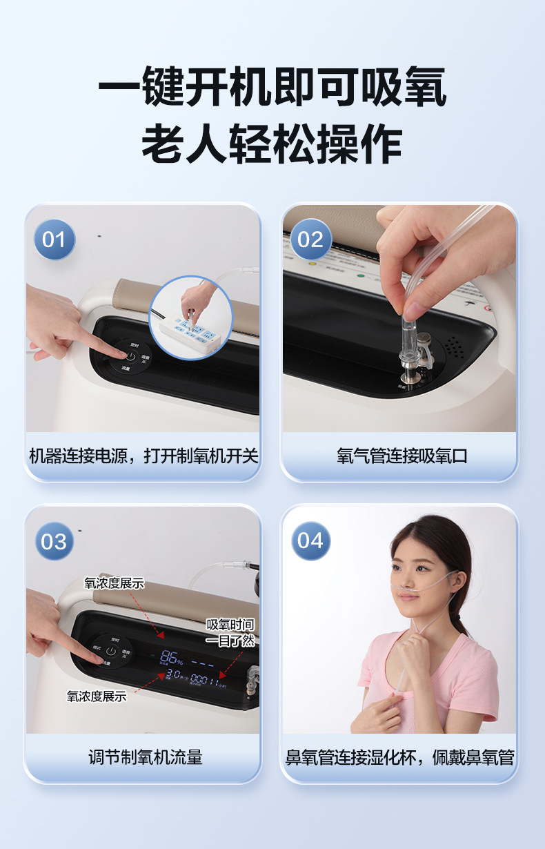可孚制氧机家用吸氧机老人慢阻肺医用级氧气5L雾化一体机静音KF08