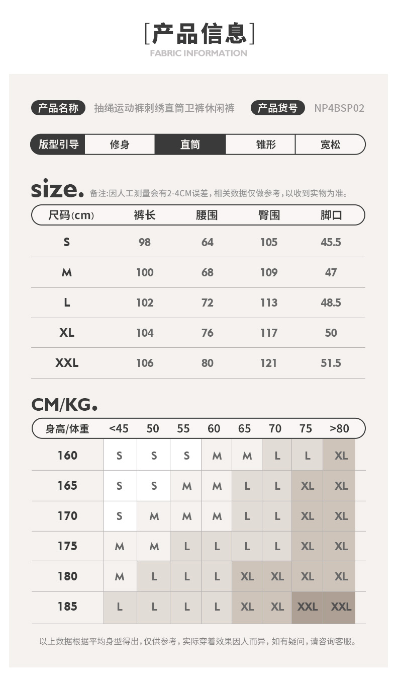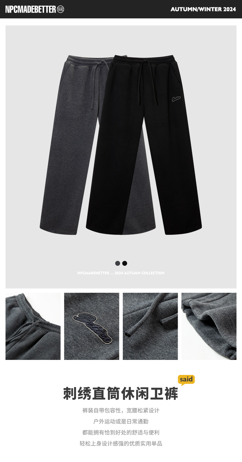 NPC潮牌字母刺绣抽绳直筒运动休闲裤男卫裤潮流松紧腰NP4BSP02