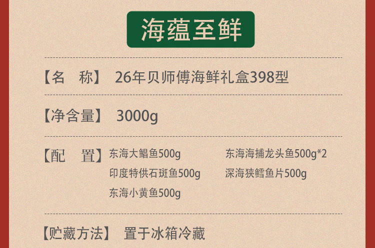 26年贝师傅海鲜礼盒398型-海蕴至鲜(注:冷链生鲜类商品不退,质量问题只换)