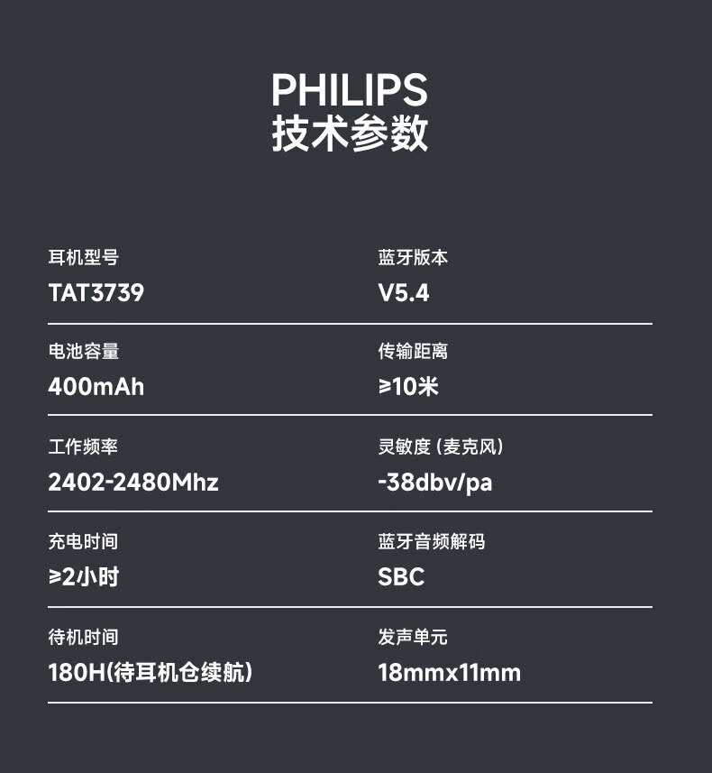 飞利浦 飞利浦(PHILIPS)舒适圈挂耳式蓝牙耳机TAT3739
