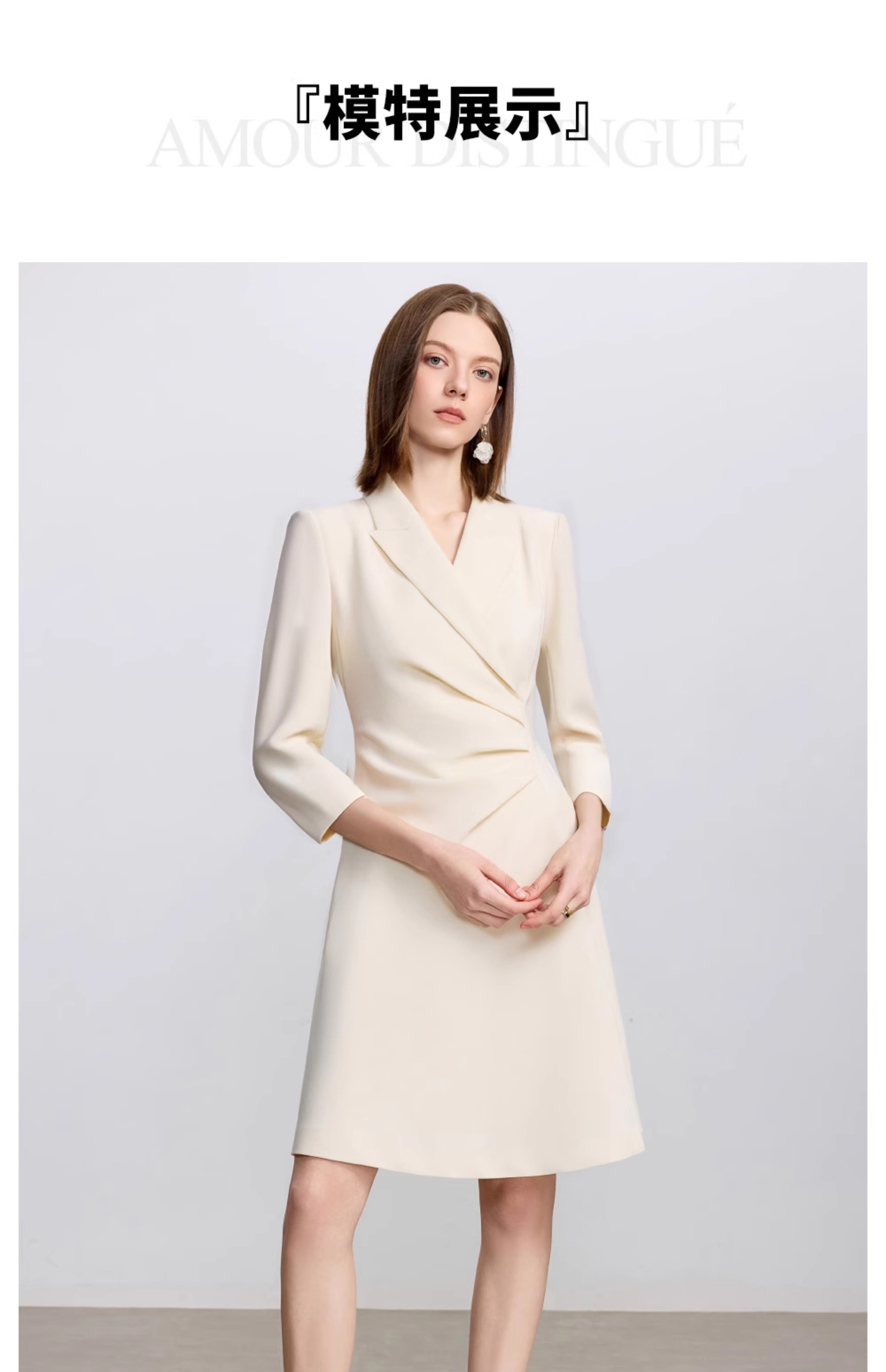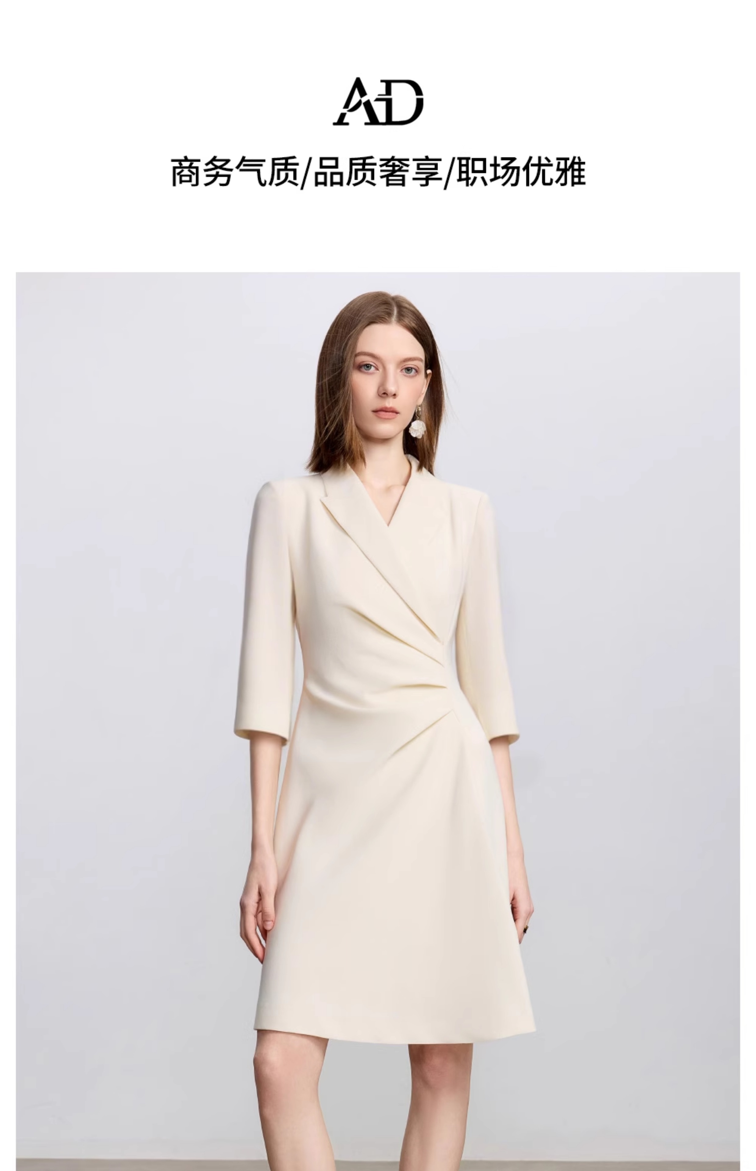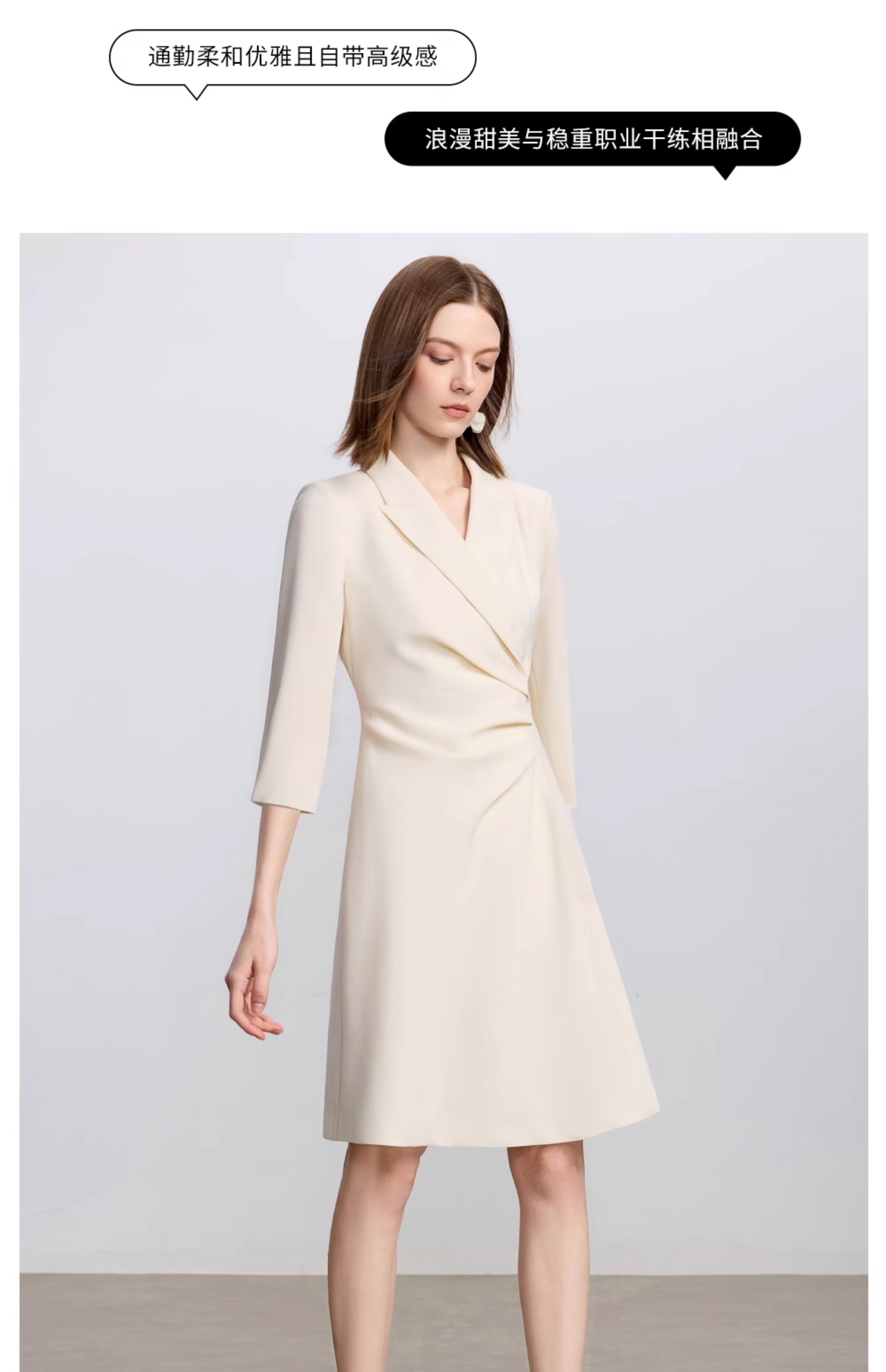 AD戗驳领优雅干练西装连衣裙女2025新款通勤裙子女七分袖职业装