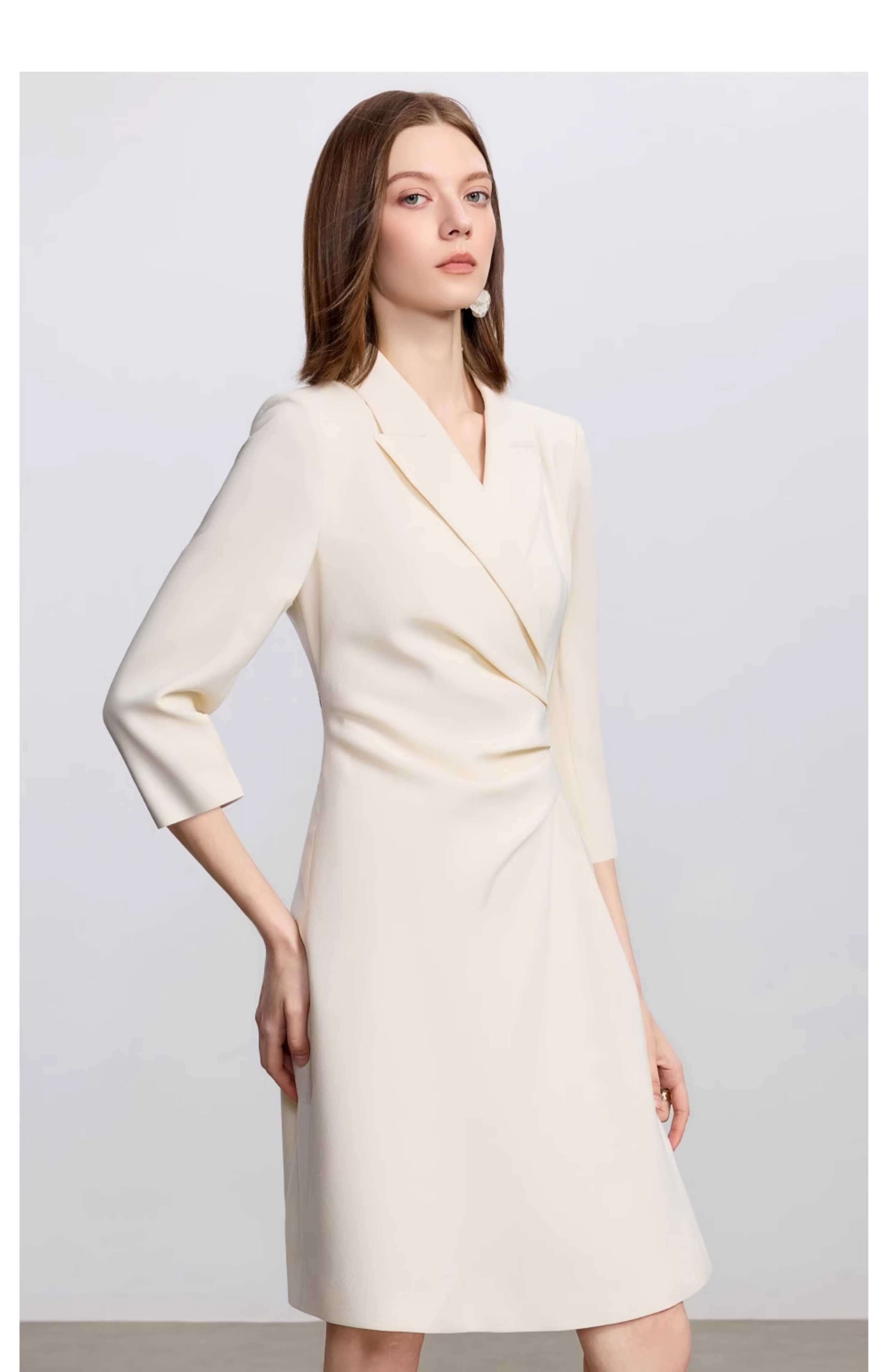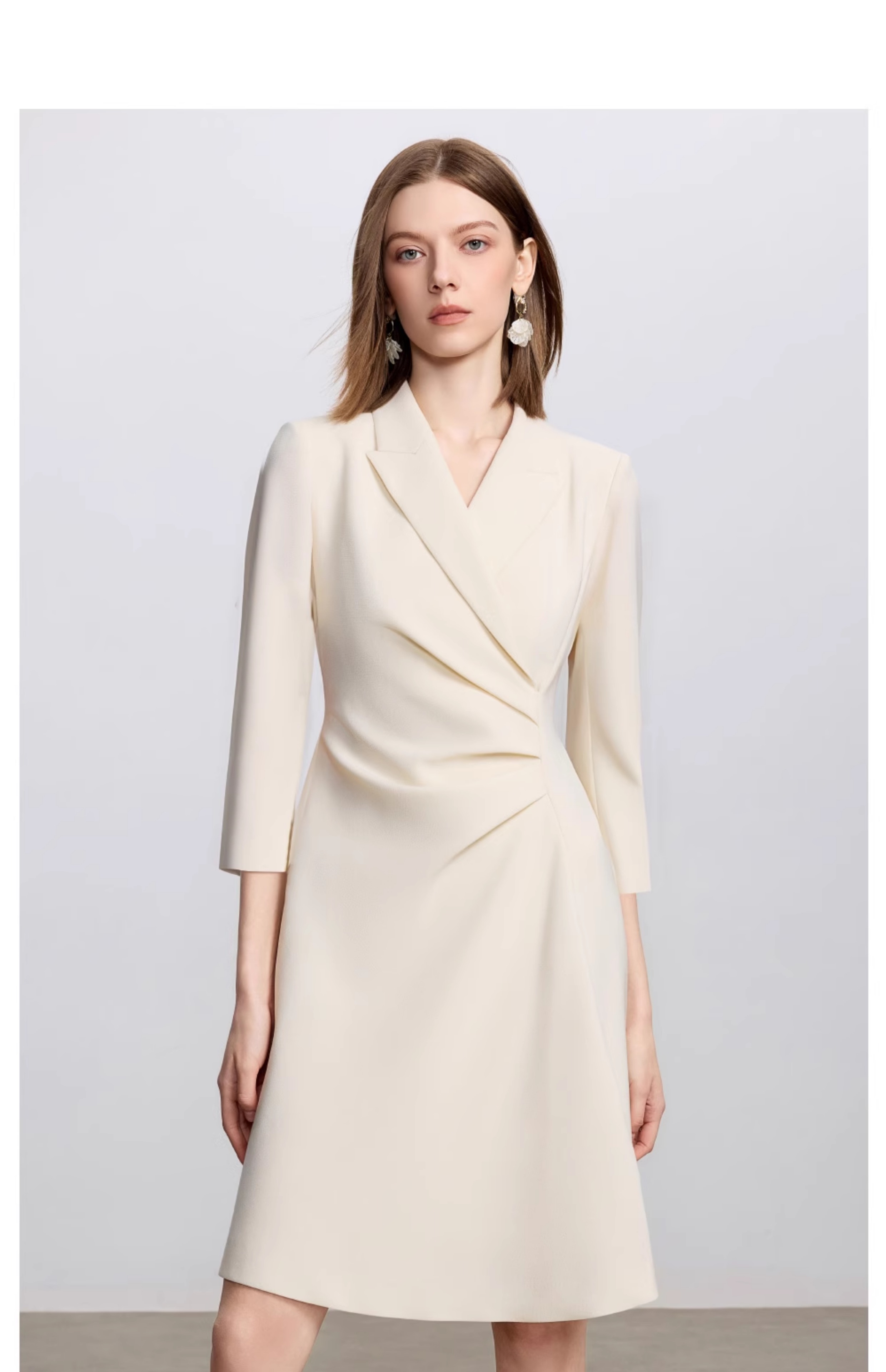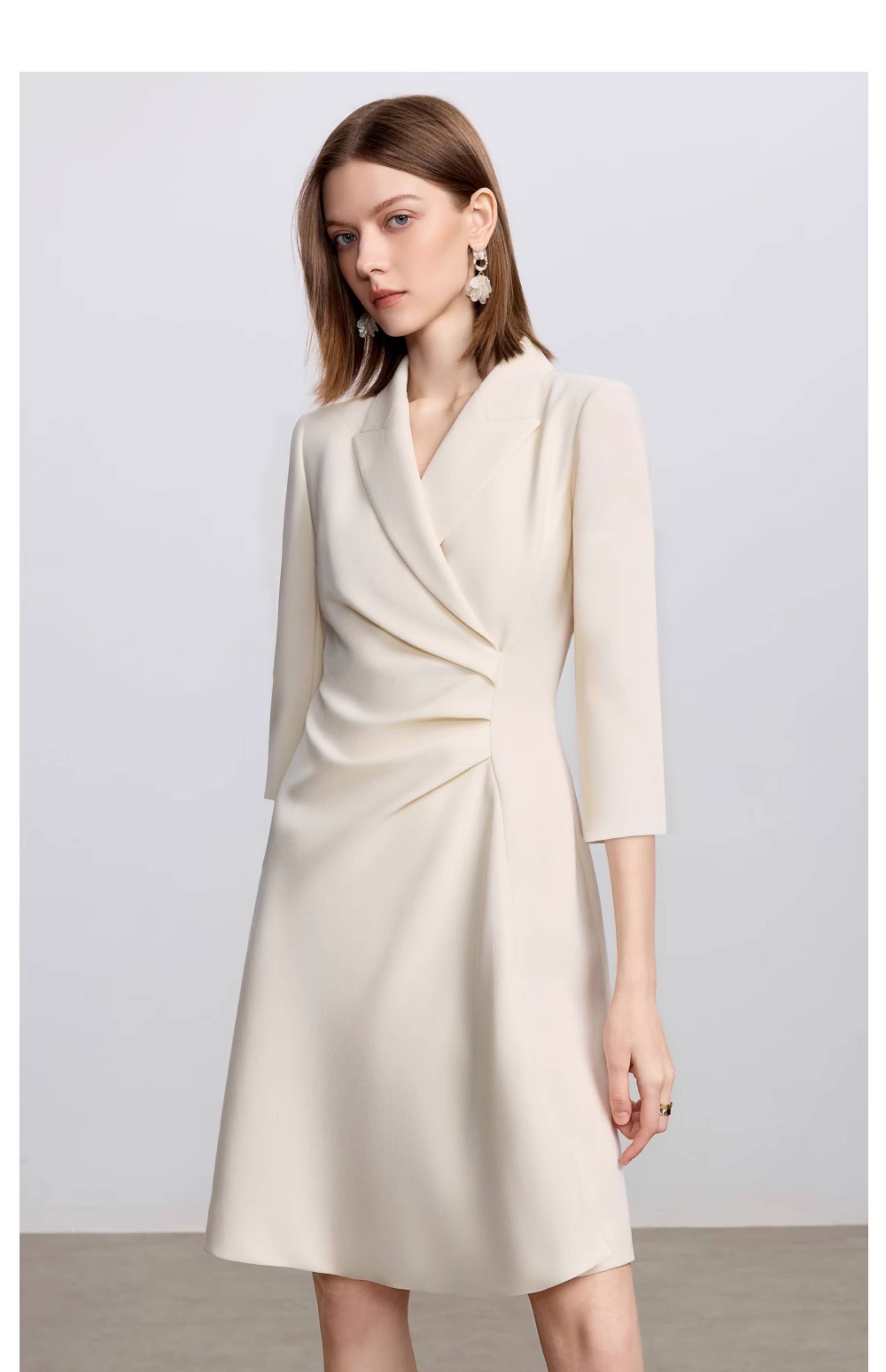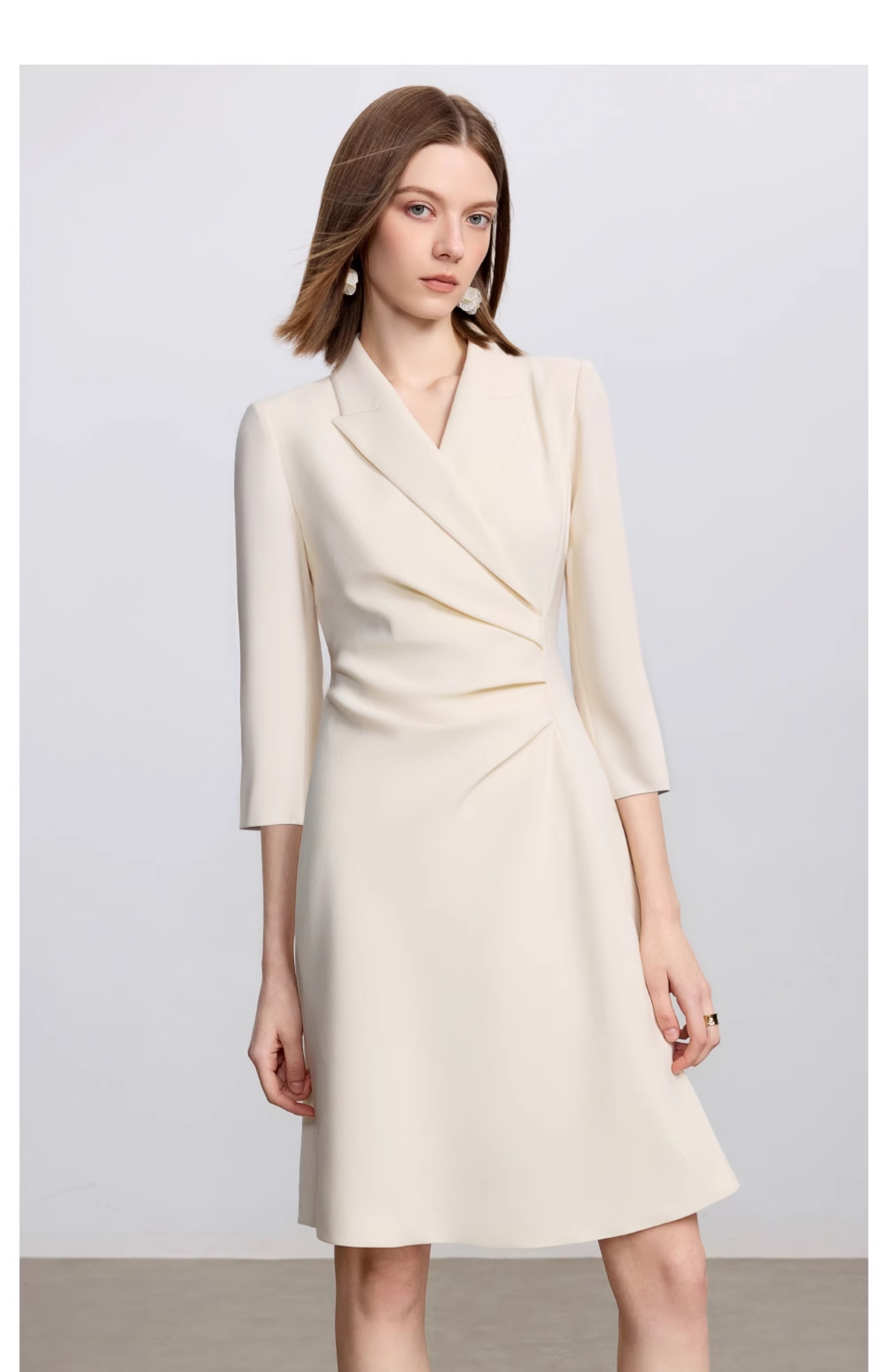 AD戗驳领优雅干练西装连衣裙女2025新款通勤裙子女七分袖职业装