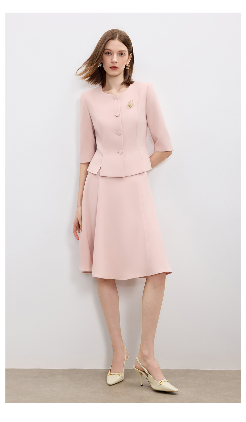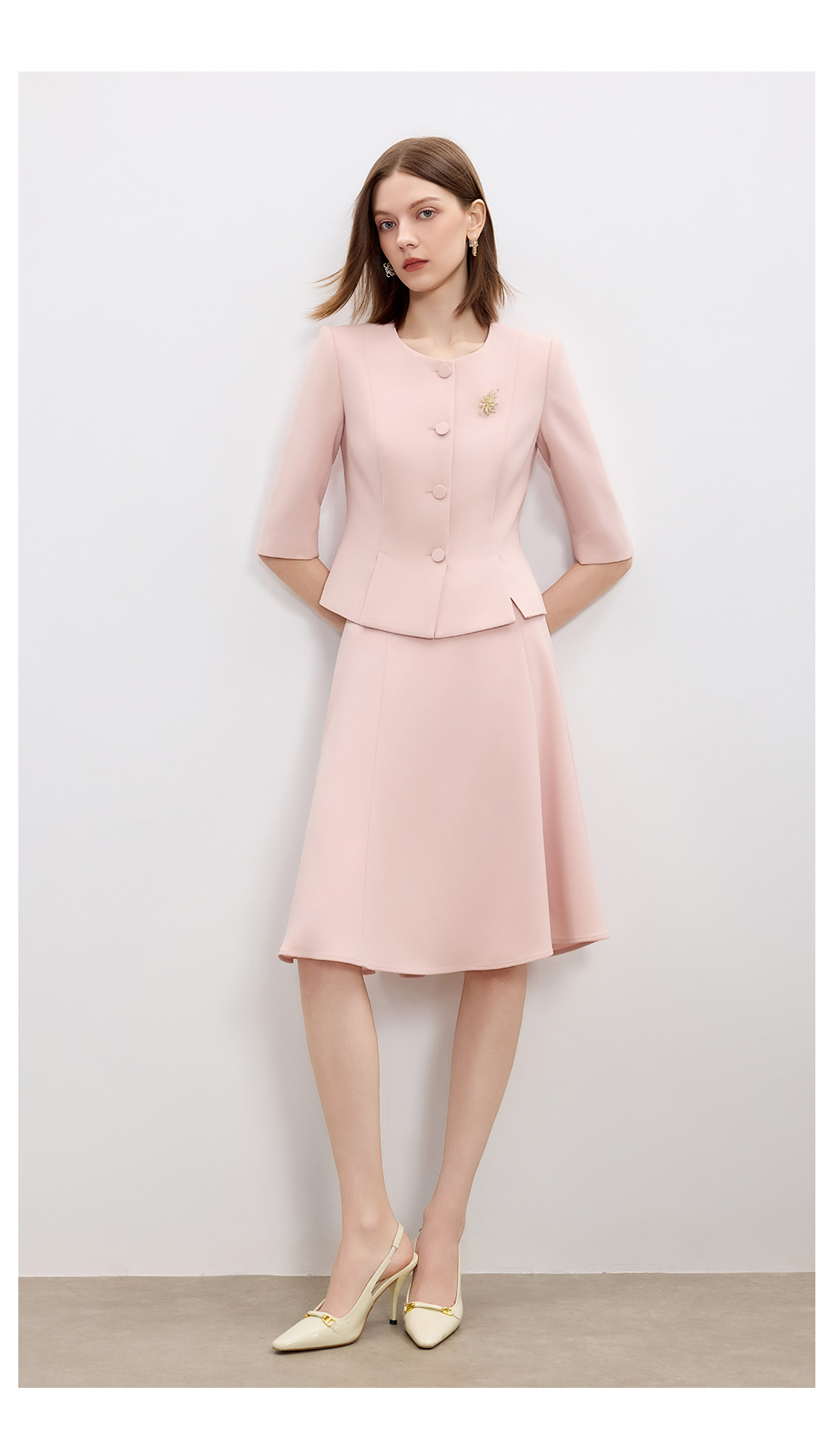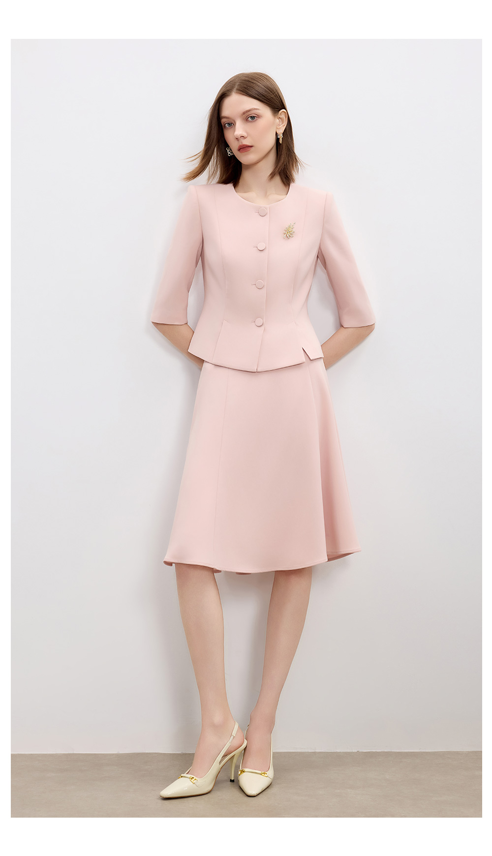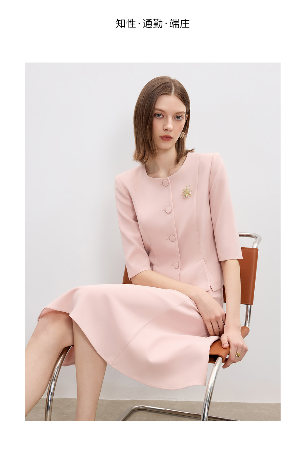 AD高级感醋酸西装两件套2025新款粉色职业装气质女神范伞裙套装
