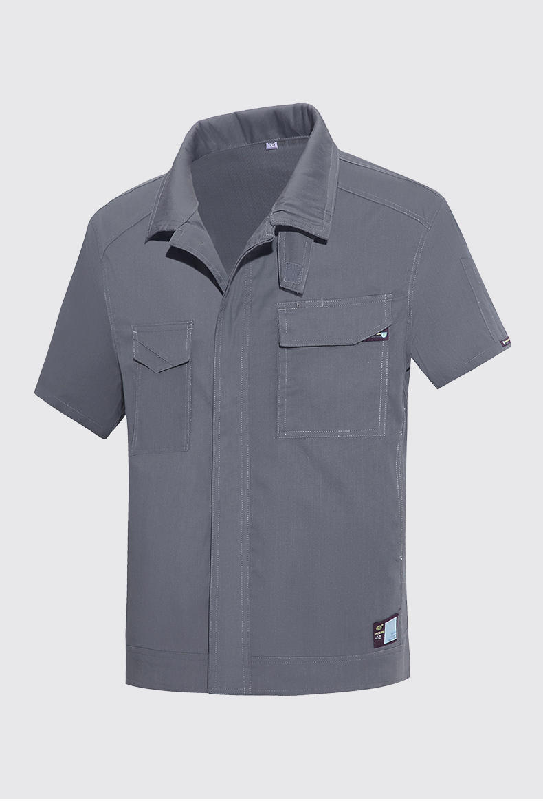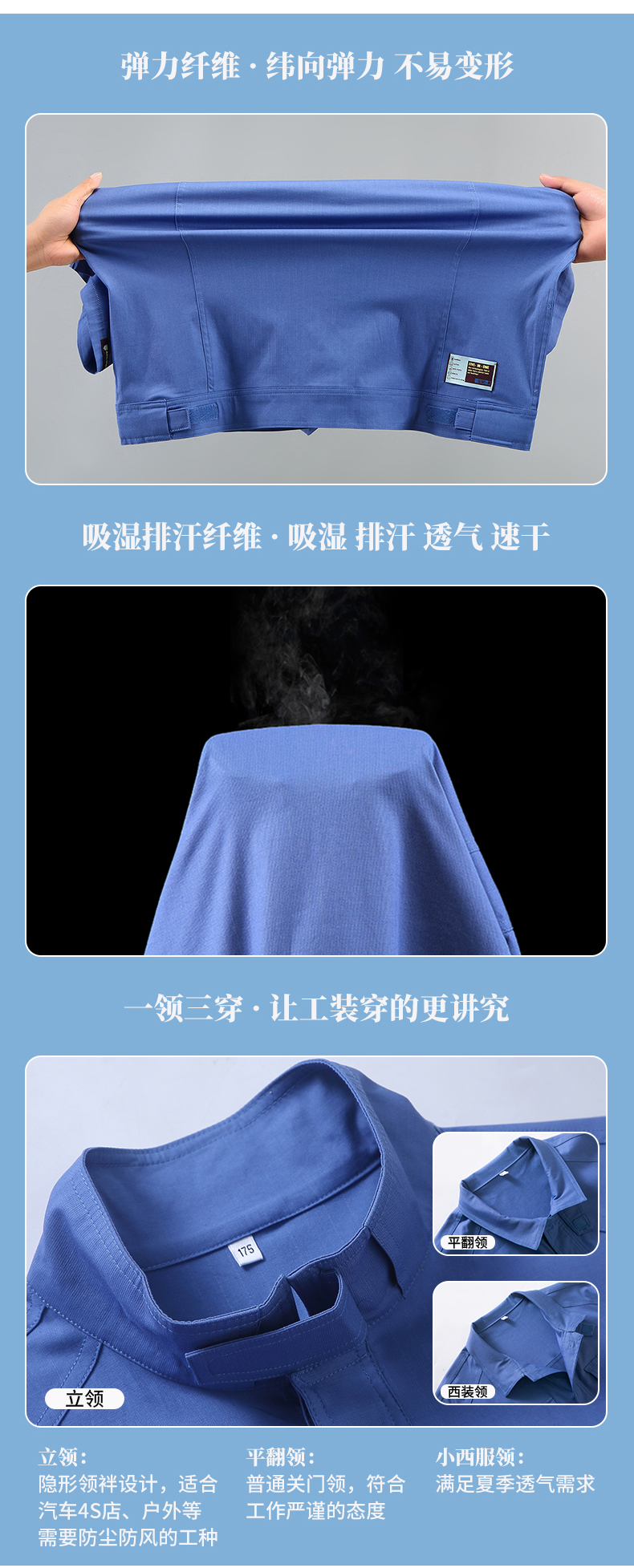高端夏季工作服男短袖套装薄款透气汽修厂服防静电工程服工装定制