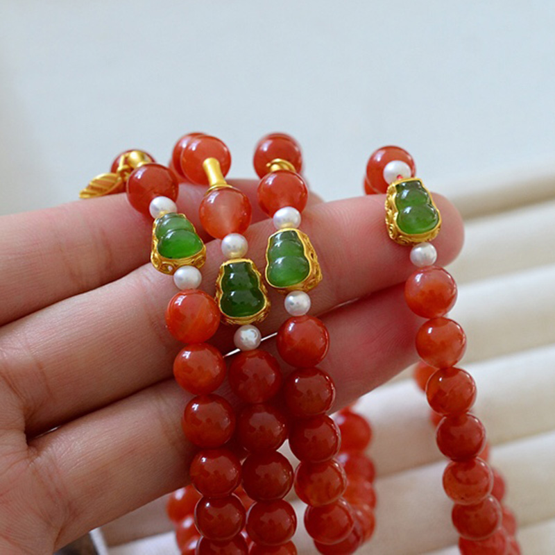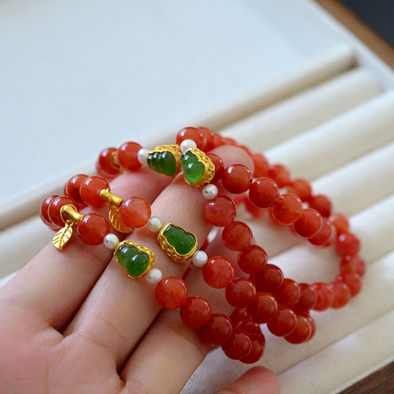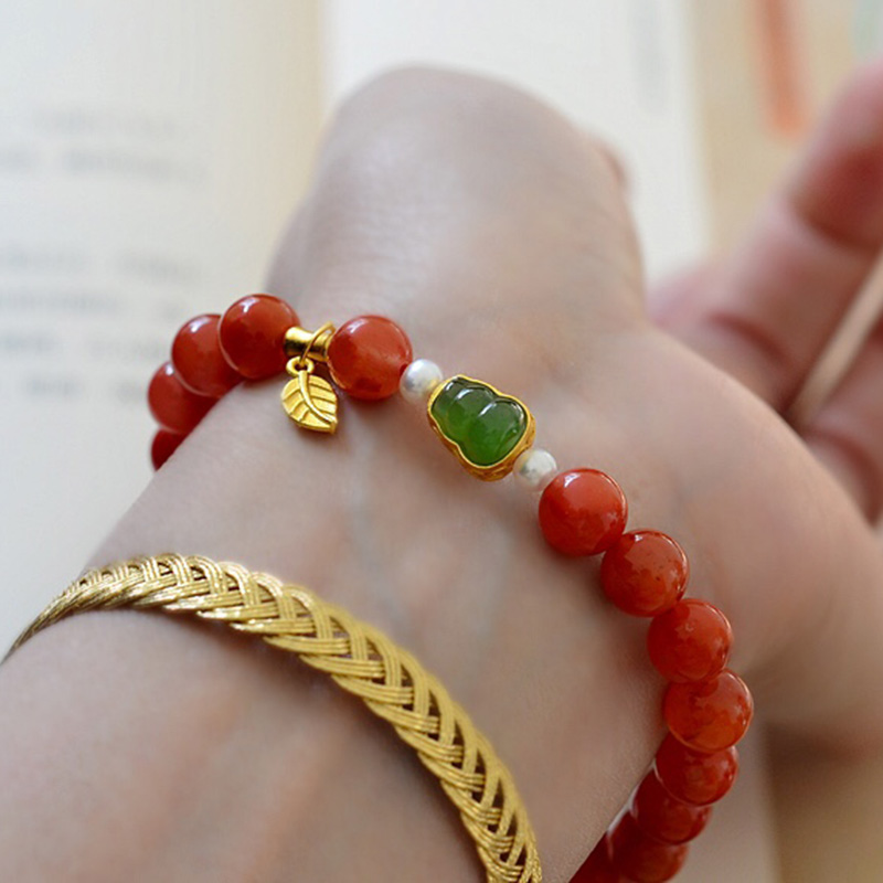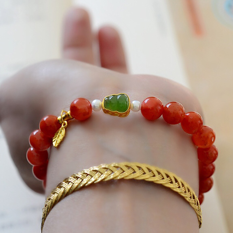 【九运离火,南红大行其道,旺运旺财旺贵人】:天然南红,碧玉鎏金镶嵌