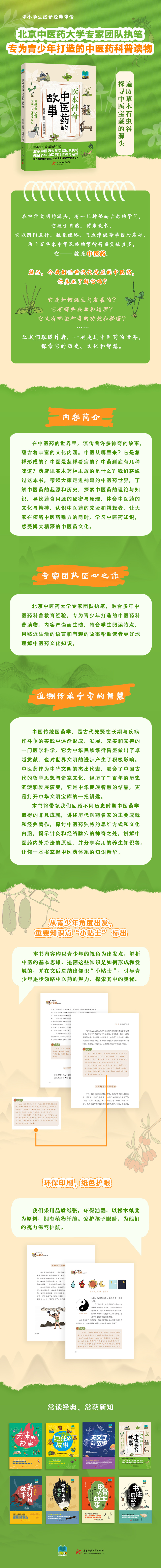 北京中医药大学专家团队执笔,融合多年中医药科普教育经验,专为青少年打造的中医药科普读物。内容严谨而生动,符合学生阅读特点,用贴近生活的语言和有趣的故事帮助读者更好地理解中医药文化知识。