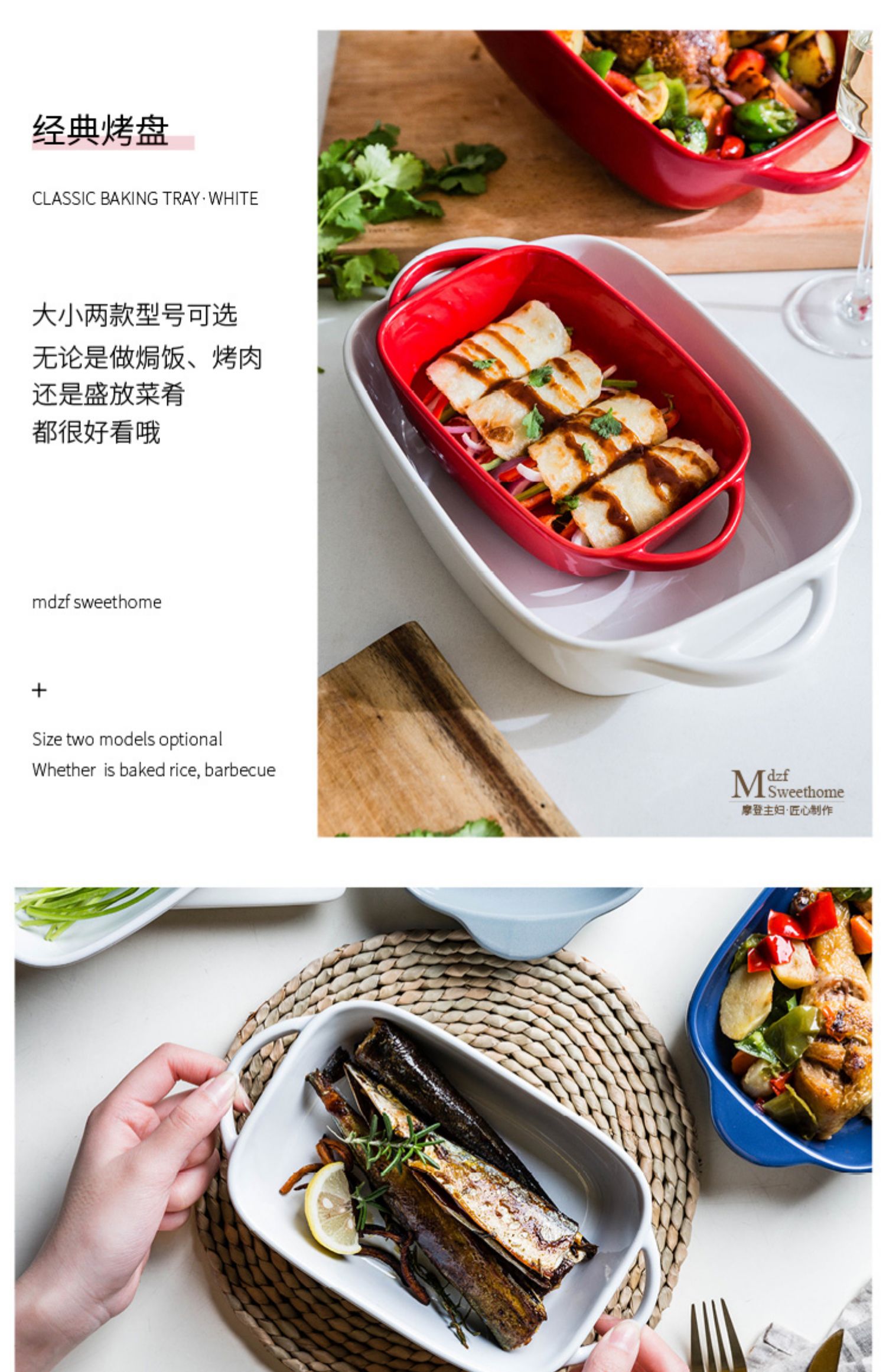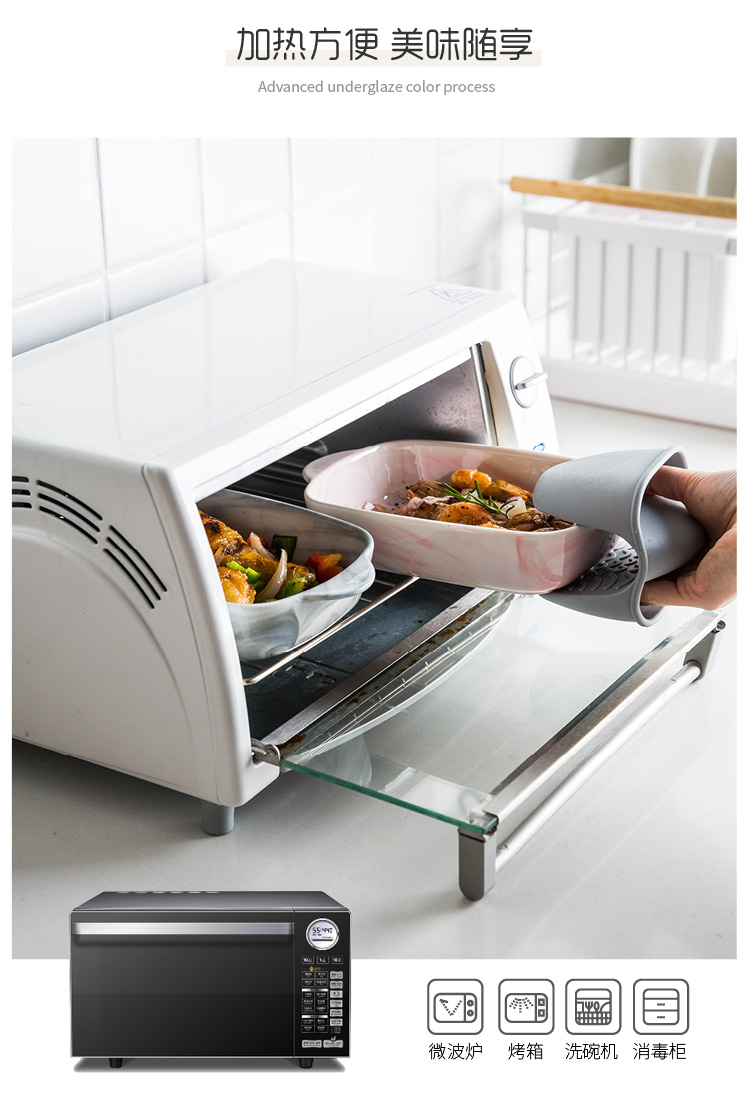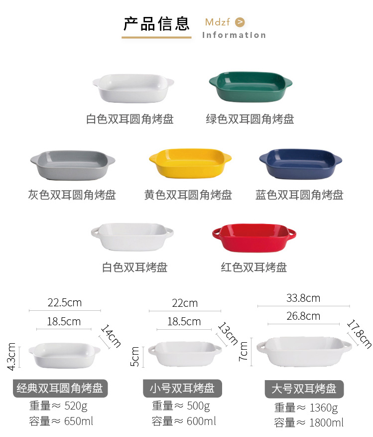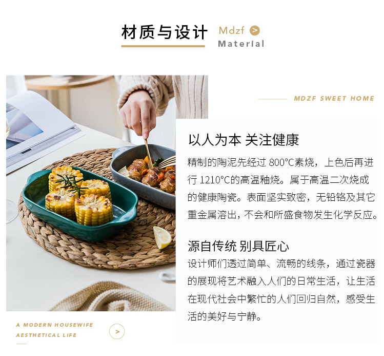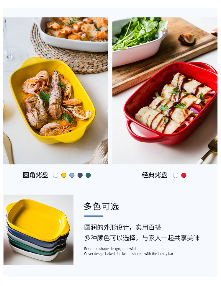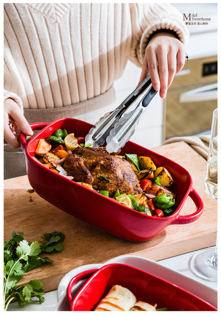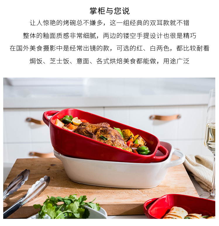 摩登主妇长方形陶瓷烤碗双耳焗饭盘家用西餐盘微波炉烘焙烤盘菜盘