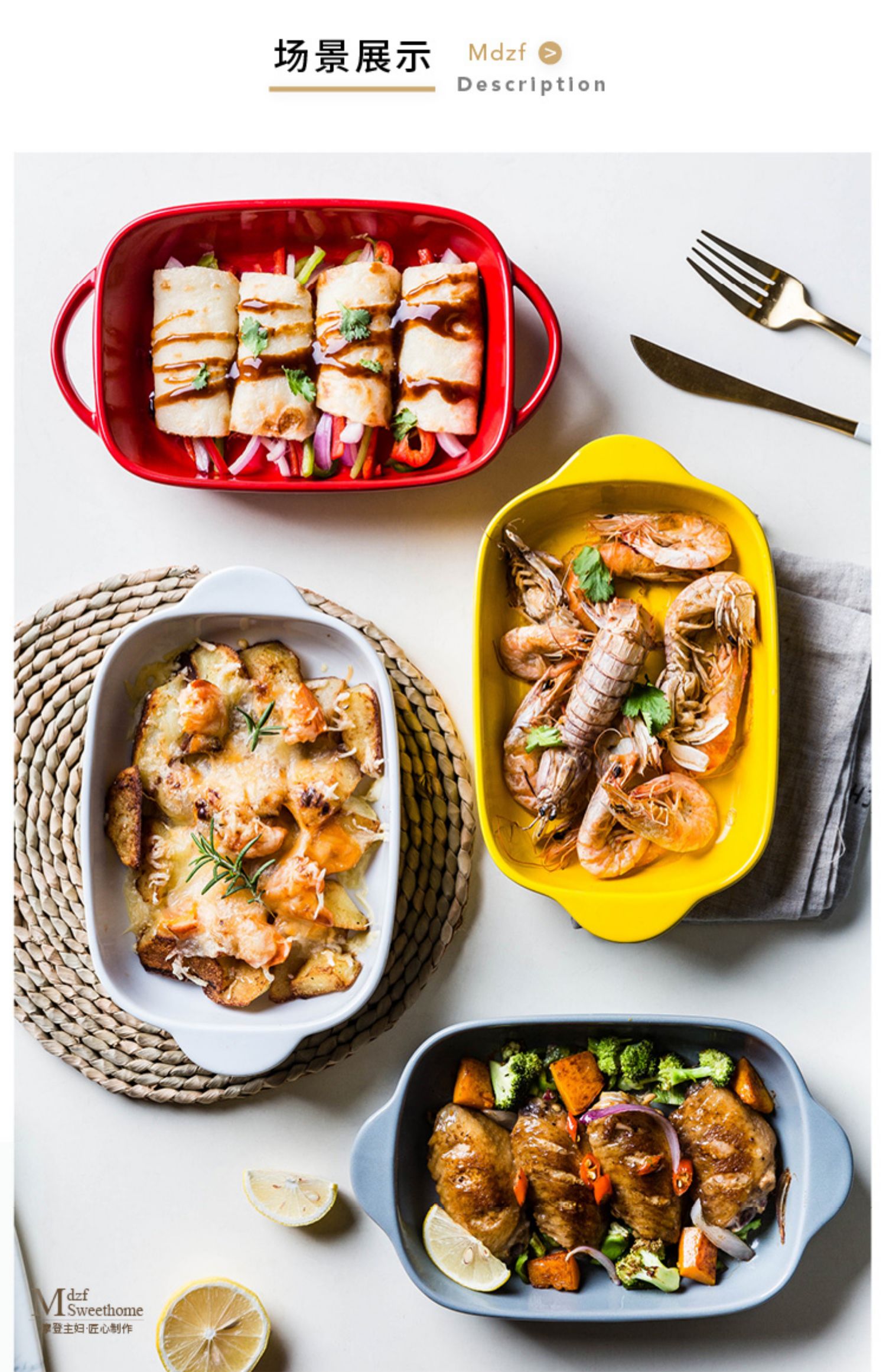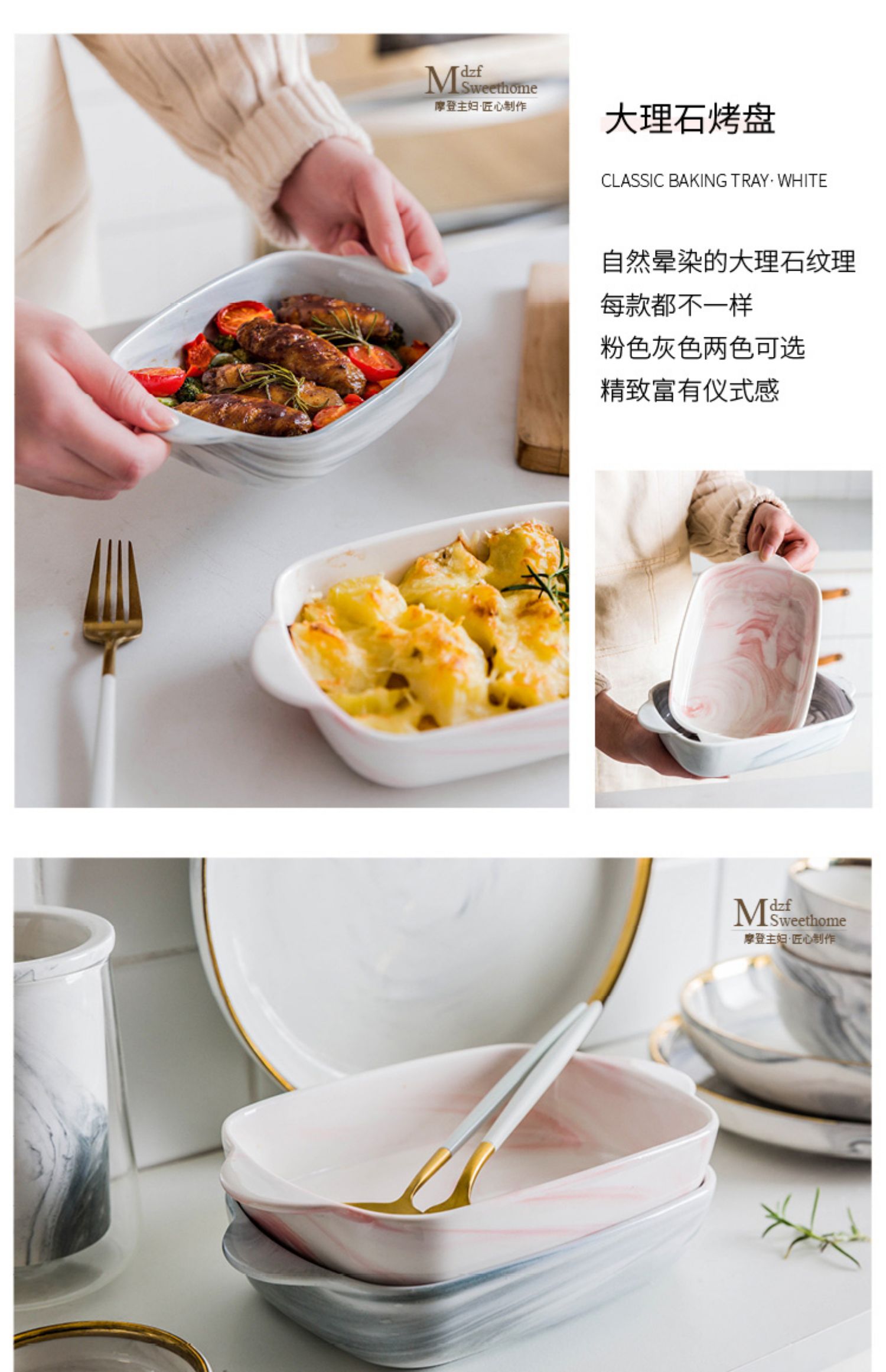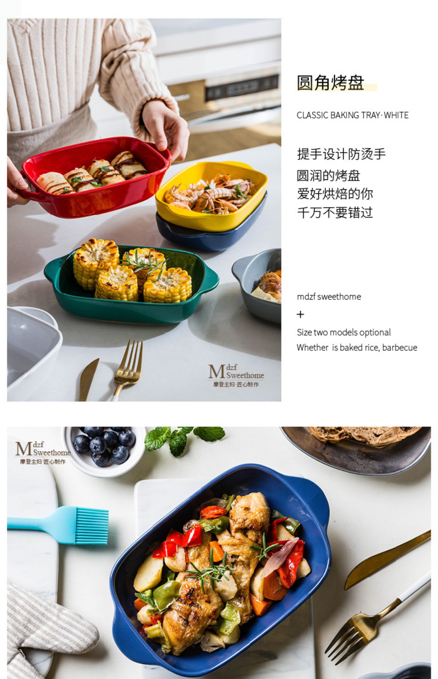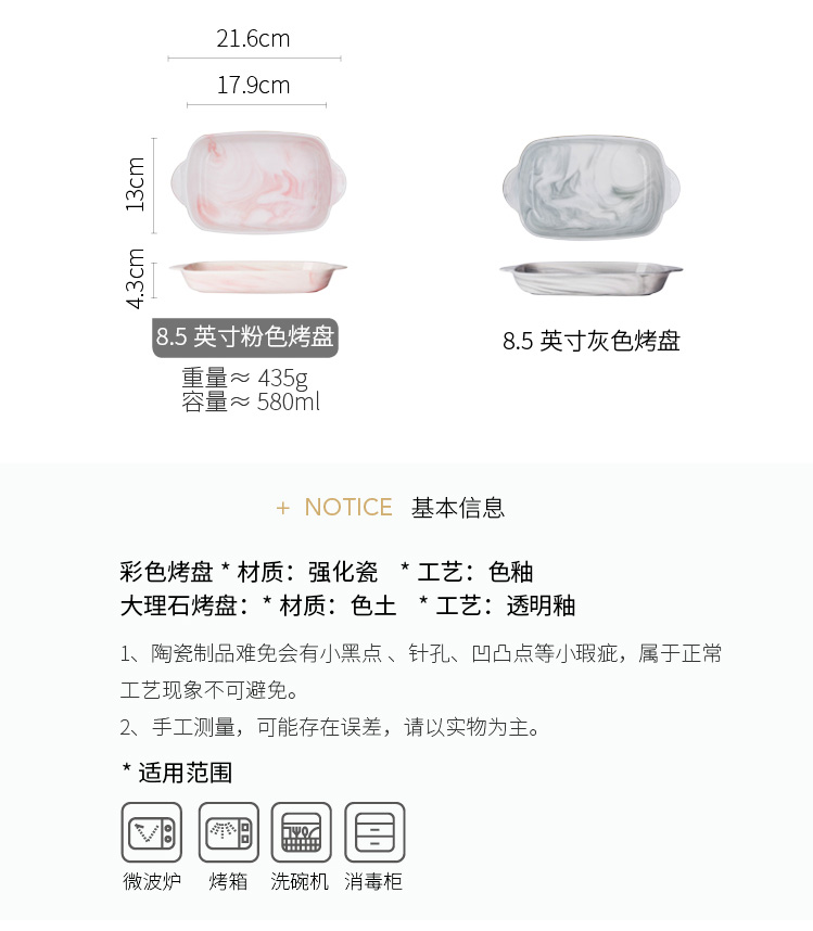 摩登主妇长方形陶瓷烤碗双耳焗饭盘家用西餐盘微波炉烘焙烤盘菜盘