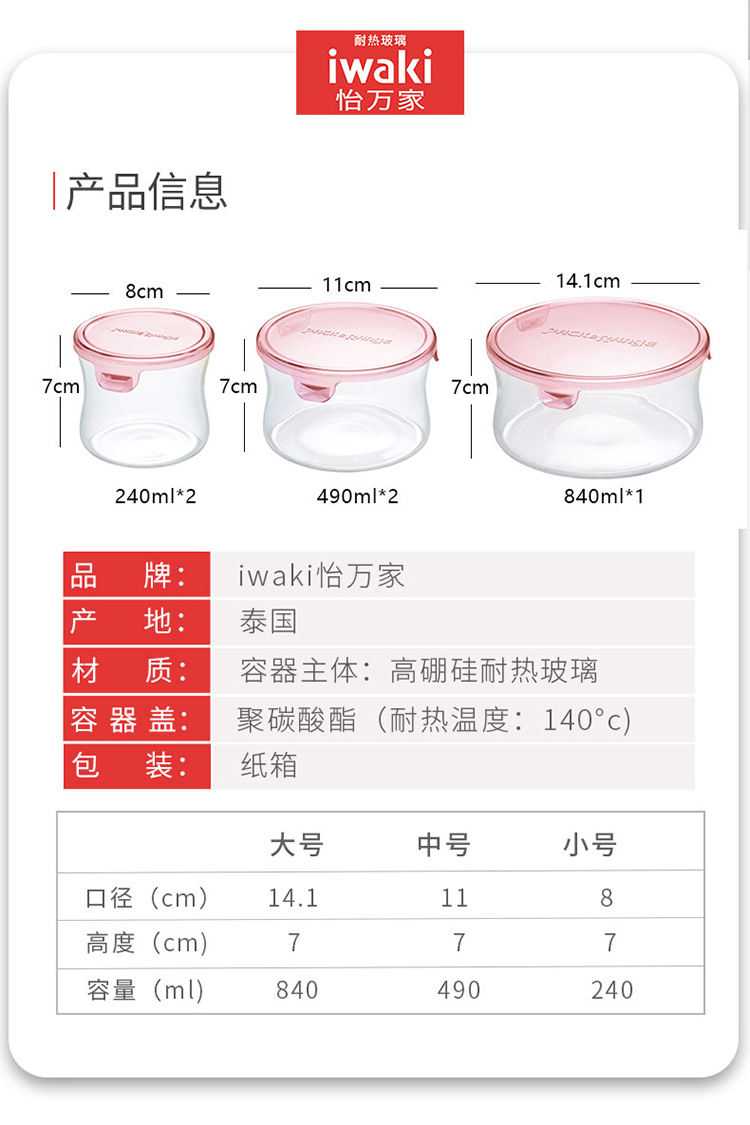 【春上新】10楼 怡万家 怡万家玻璃保鲜盒C-PRN-P25 吊牌价310元 活动价199元