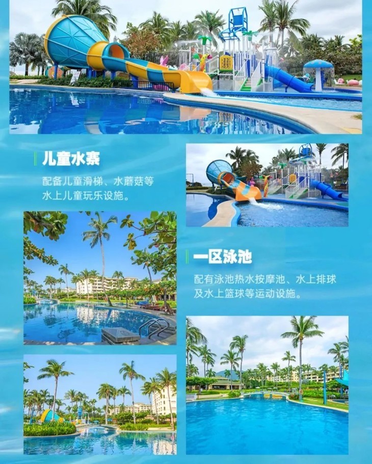 3、畅玩酒店6大水域项目(恒温泳池、林荫滑道、无边泳池、一二区儿童水寨乐园等);