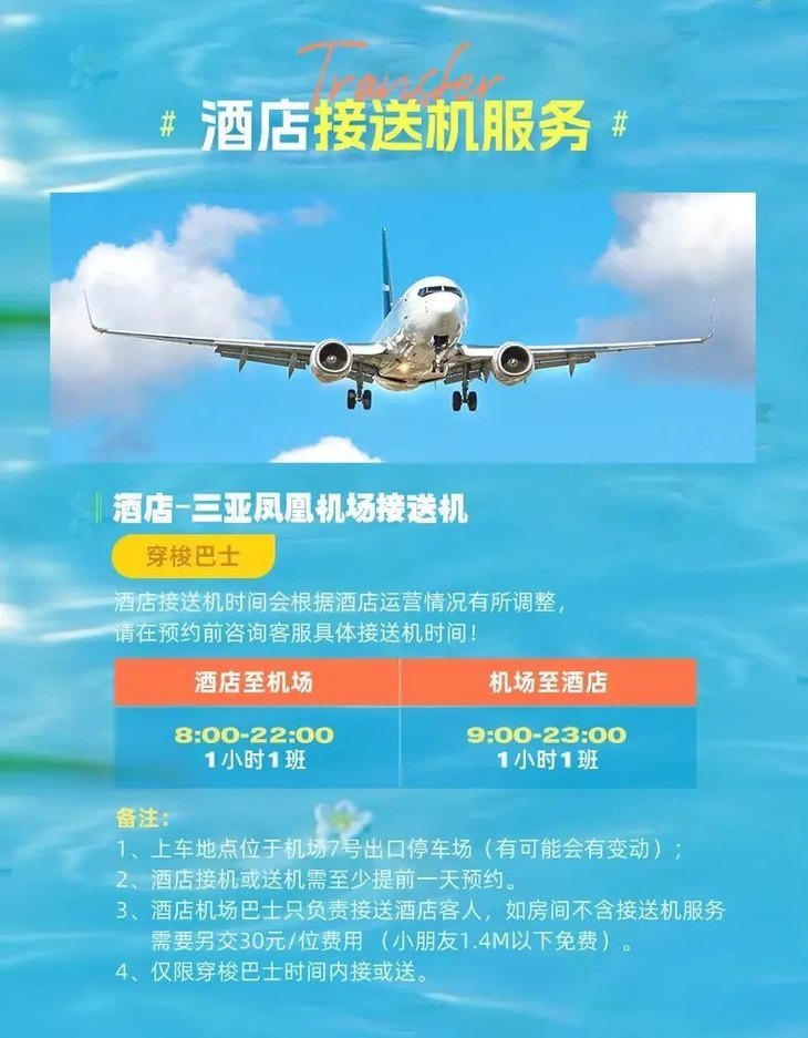 2、含凤凰机场至酒店穿梭巴士接机+送机各一次(人数与房间含早数相同);