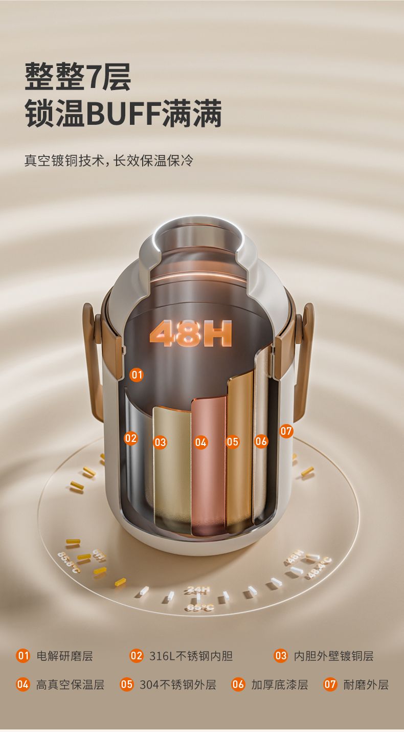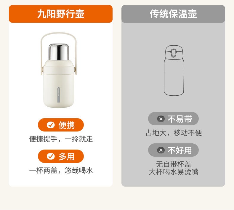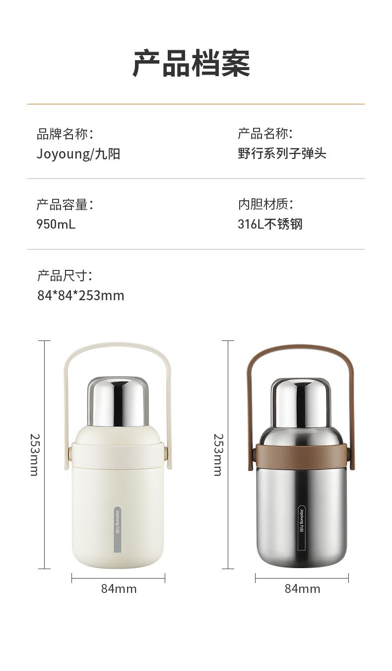 九阳保温杯316L不锈钢大容量保温学生水杯户外旅行壶车载暖水壶