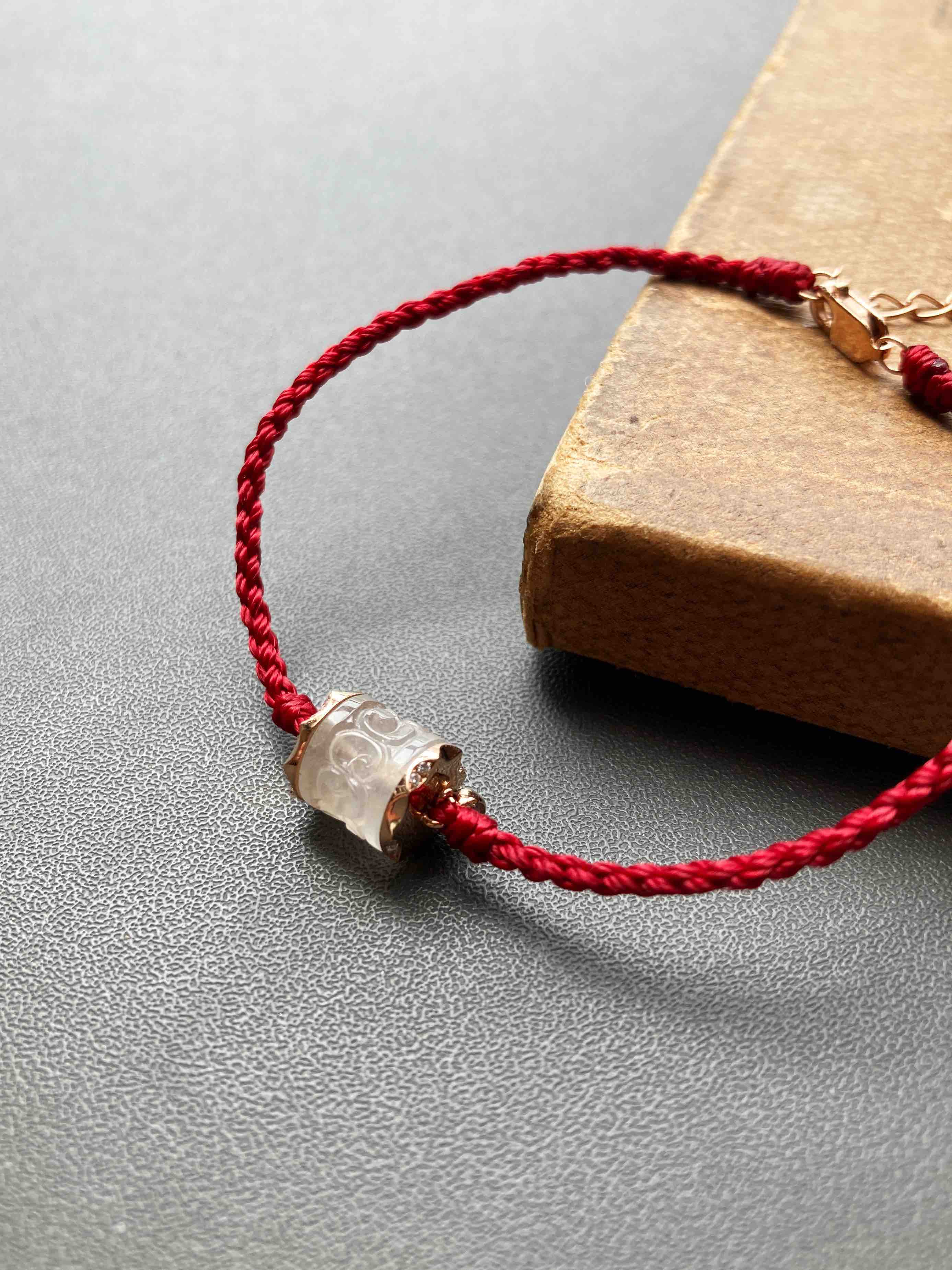 冰种翡翠路路通手绳18k玫瑰金钻石镶嵌