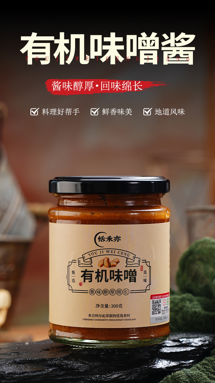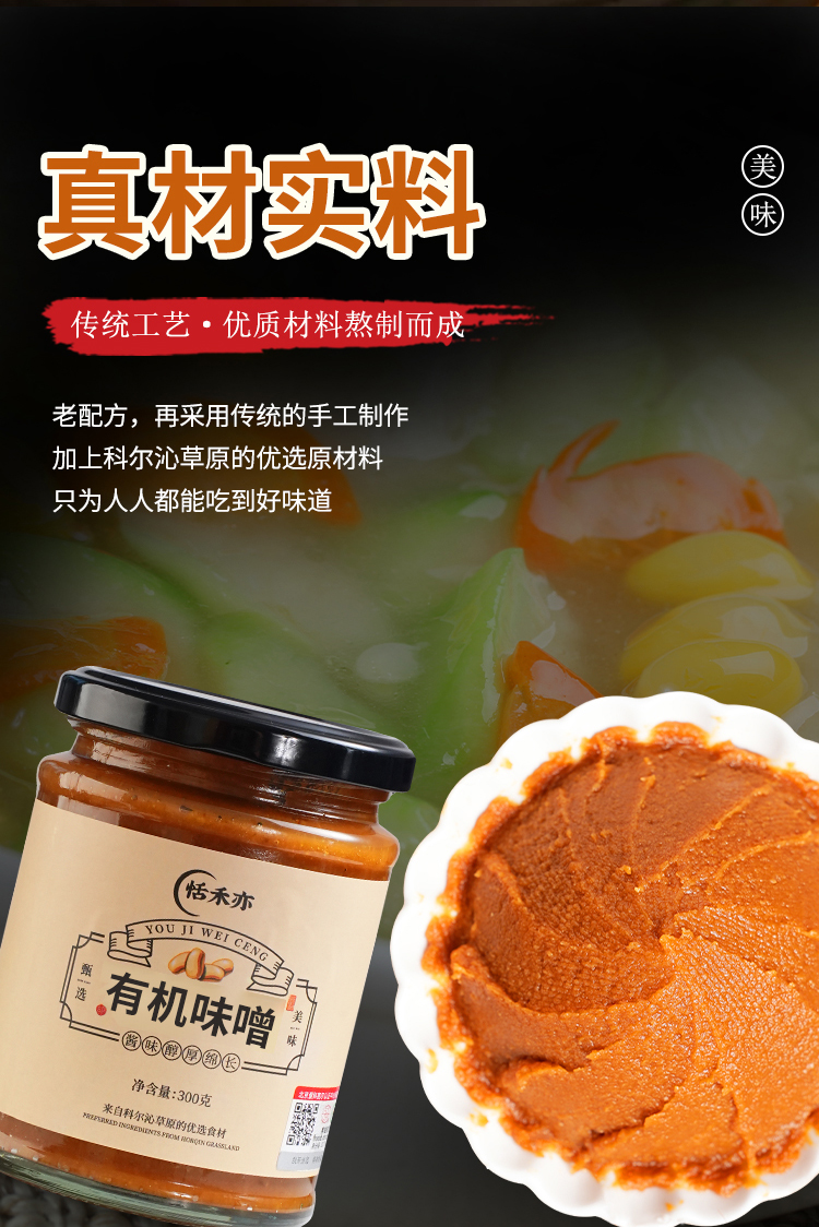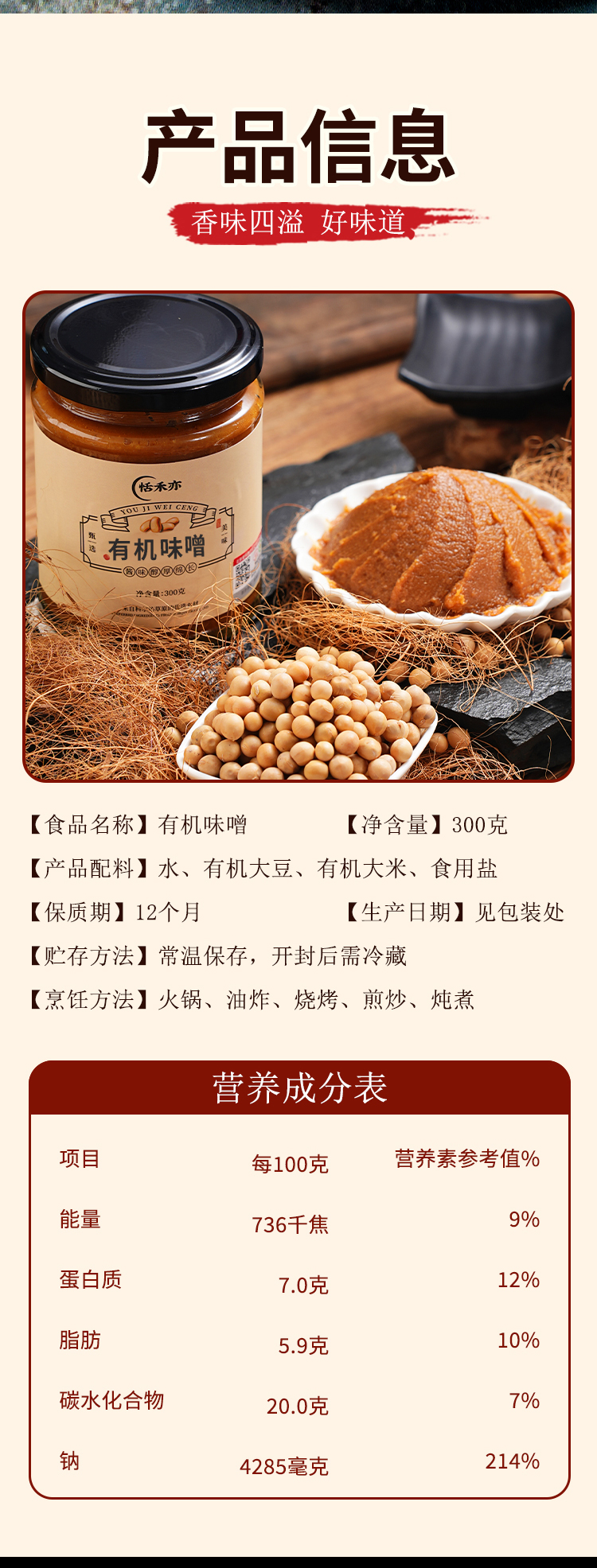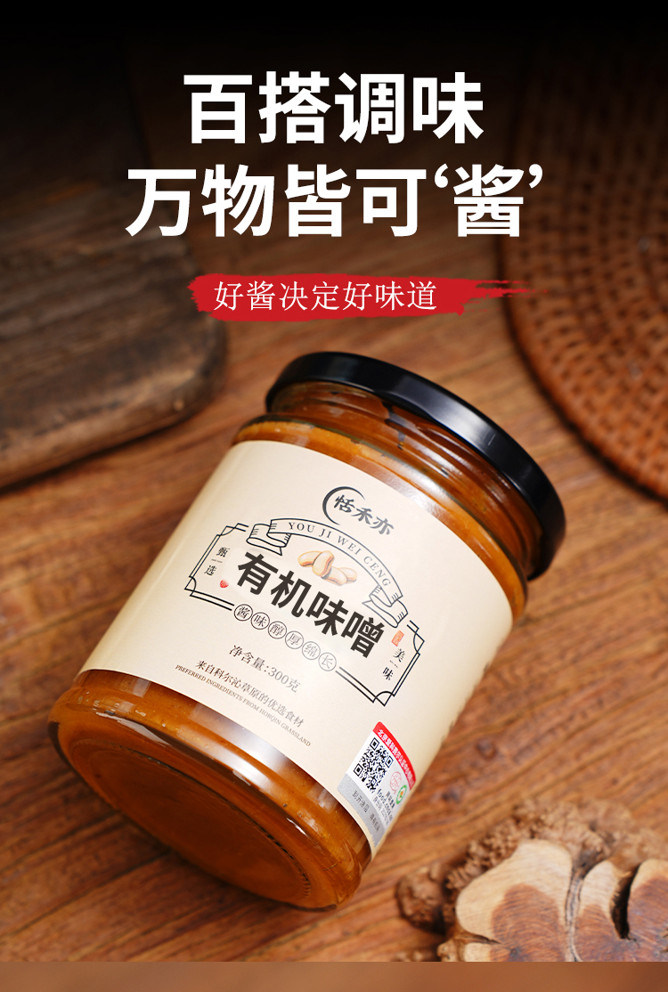 有机味噌酱300g/瓶 火锅烧烤做菜炖煮配酱 有机大豆有机大米