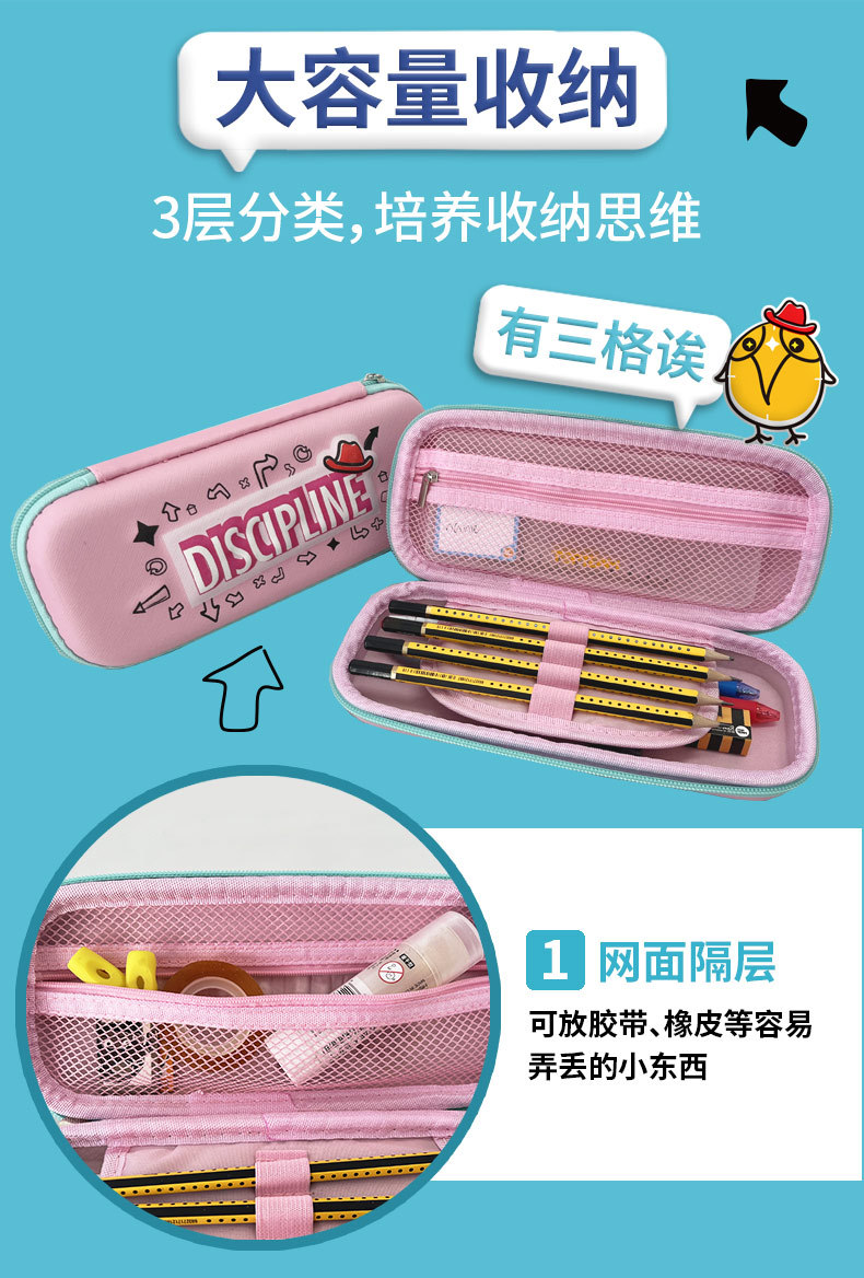 千千圈 多功能三层卡通双色学生专用笔袋大容量收纳袋耐脏文具袋