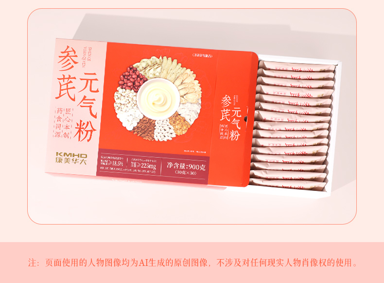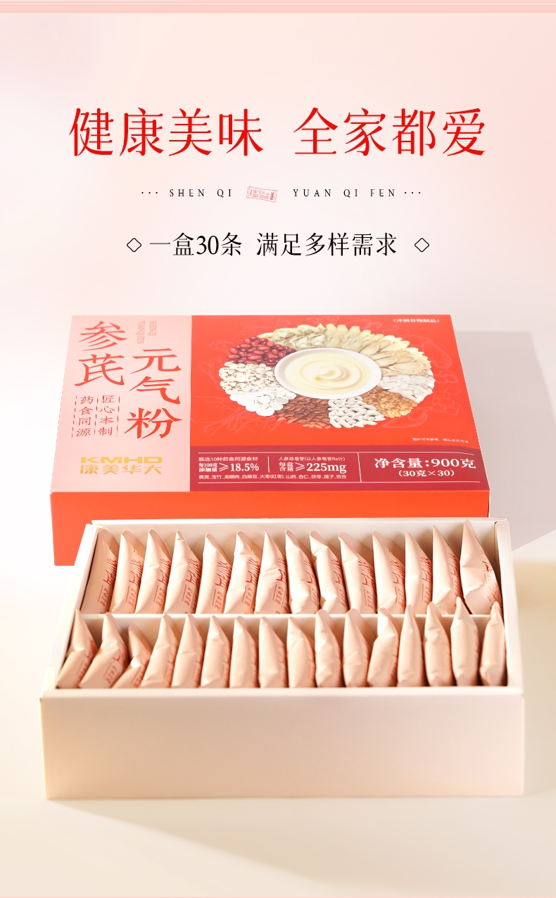 康美参芪元气粉900克(30袋) 代餐粉食养药食同源冲调谷物日常冲调粥年货礼盒
