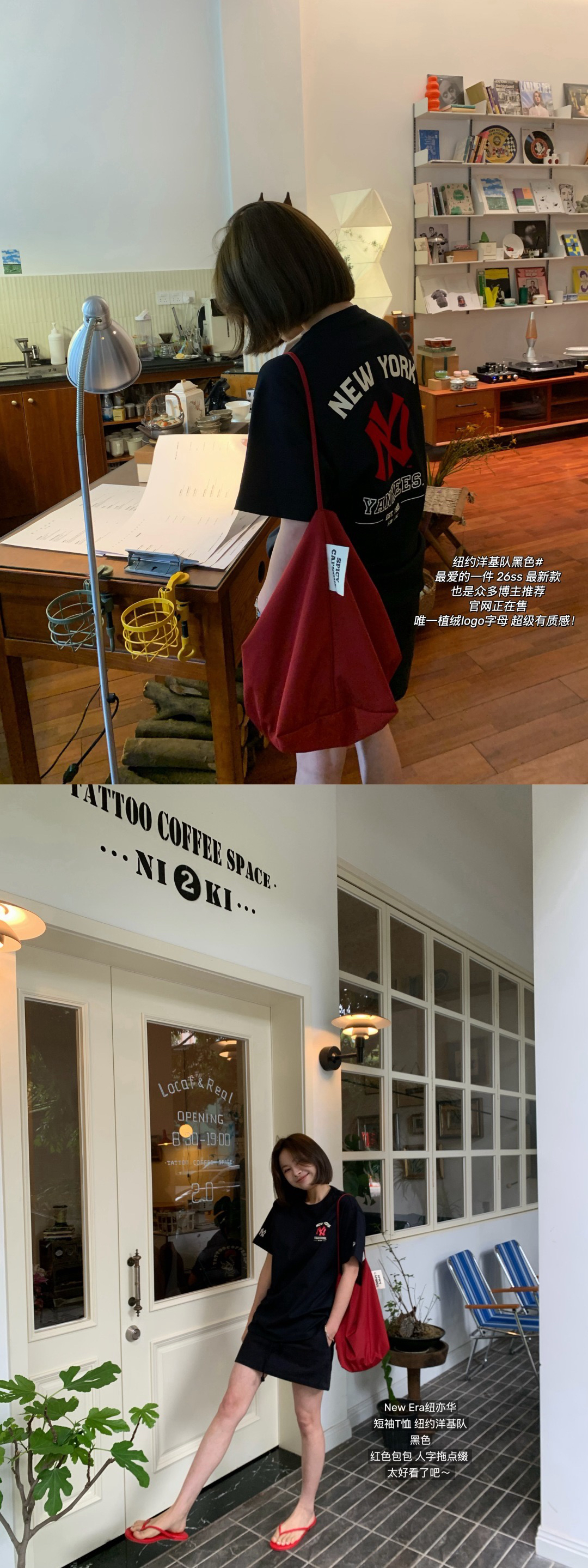 女生上身袖子挽一点点我觉得更加好看,男生直接搭配就行了