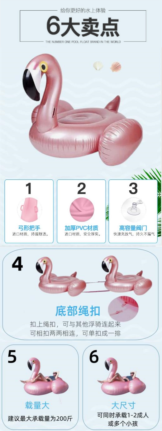 【包邮直发】幸运火烈鸟大浮排 可串联 最大承重100kg 优质PVC原材料,不含双酚A,厚实柔软耐用,不易渗漏,无毒环保安全