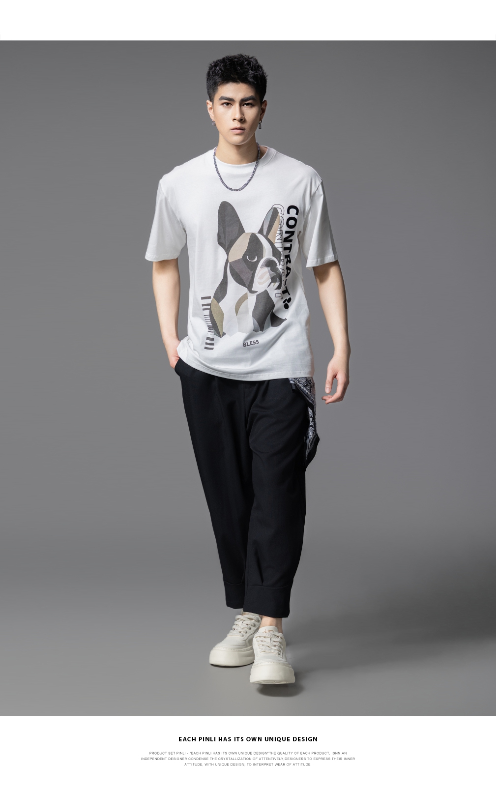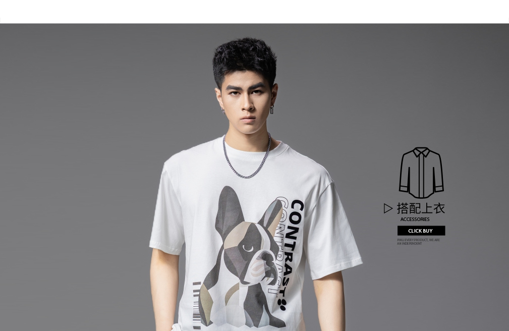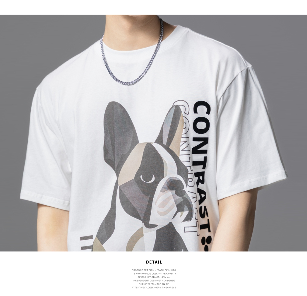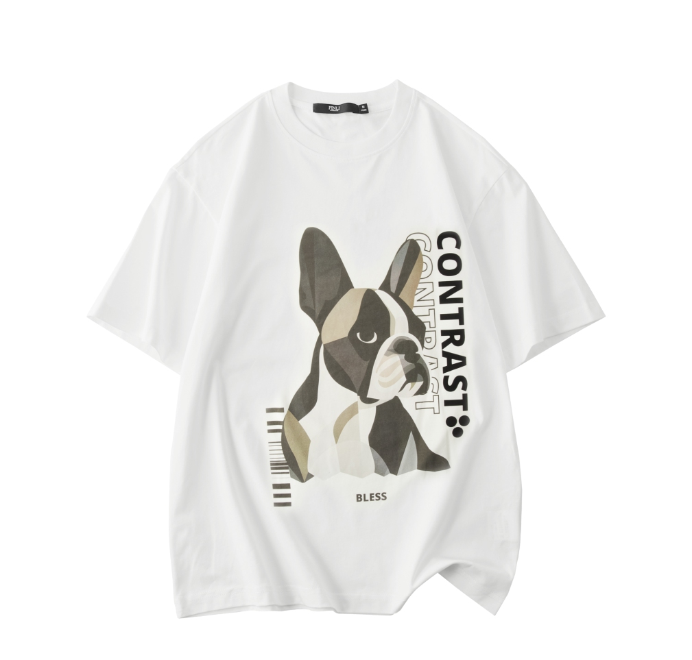 PINLI品立2025夏季新款小狗印花短袖T恤男潮牌休闲圆领体恤衫上衣BG252111018