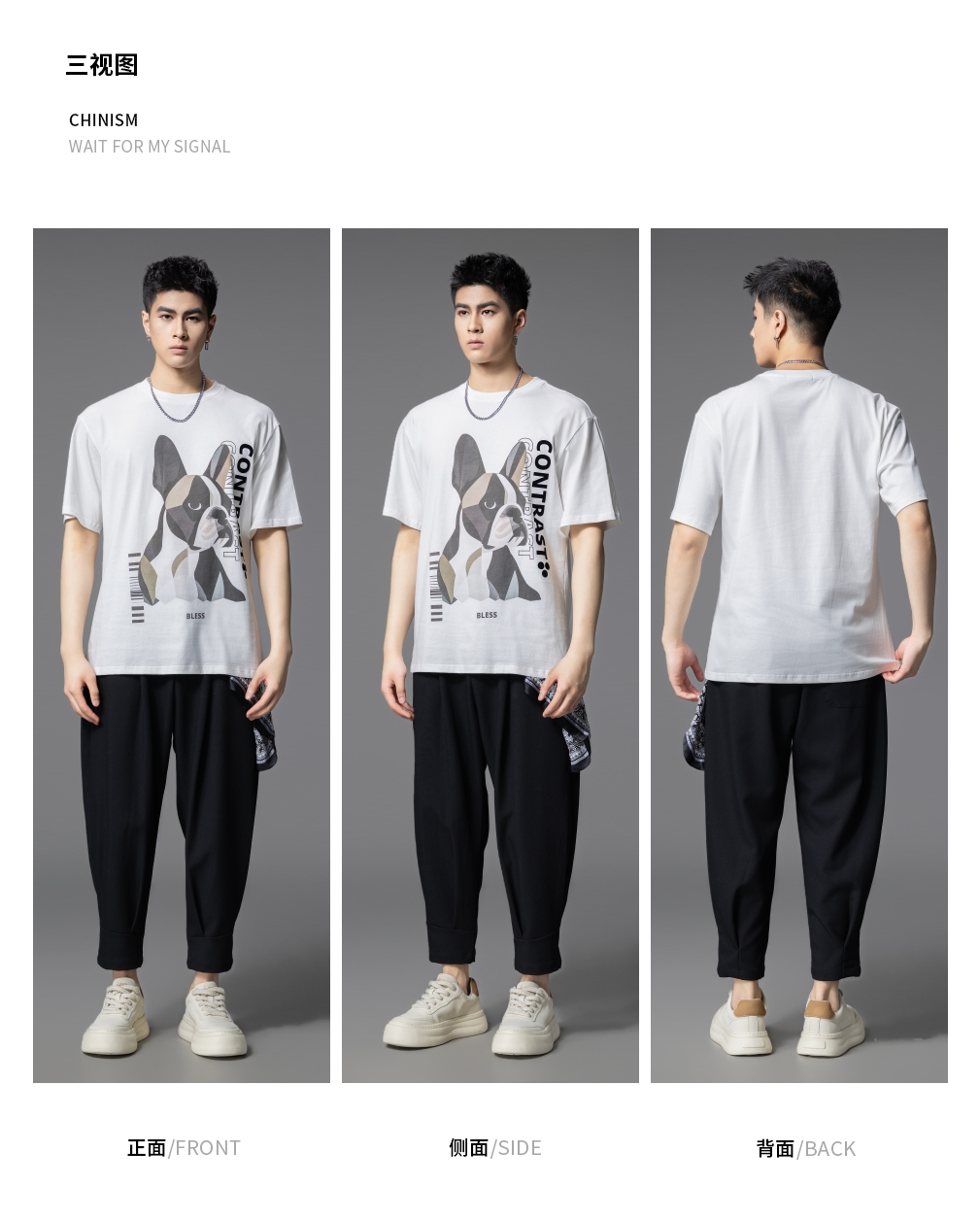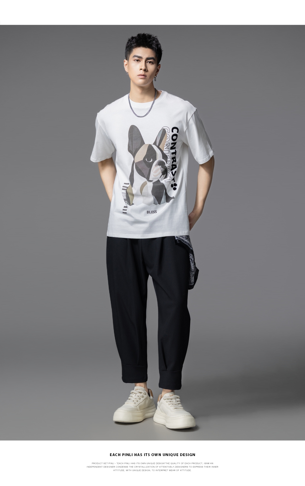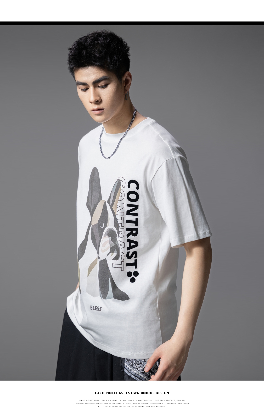 PINLI品立2025夏季新款小狗印花短袖T恤男潮牌休闲圆领体恤衫上衣BG252111018