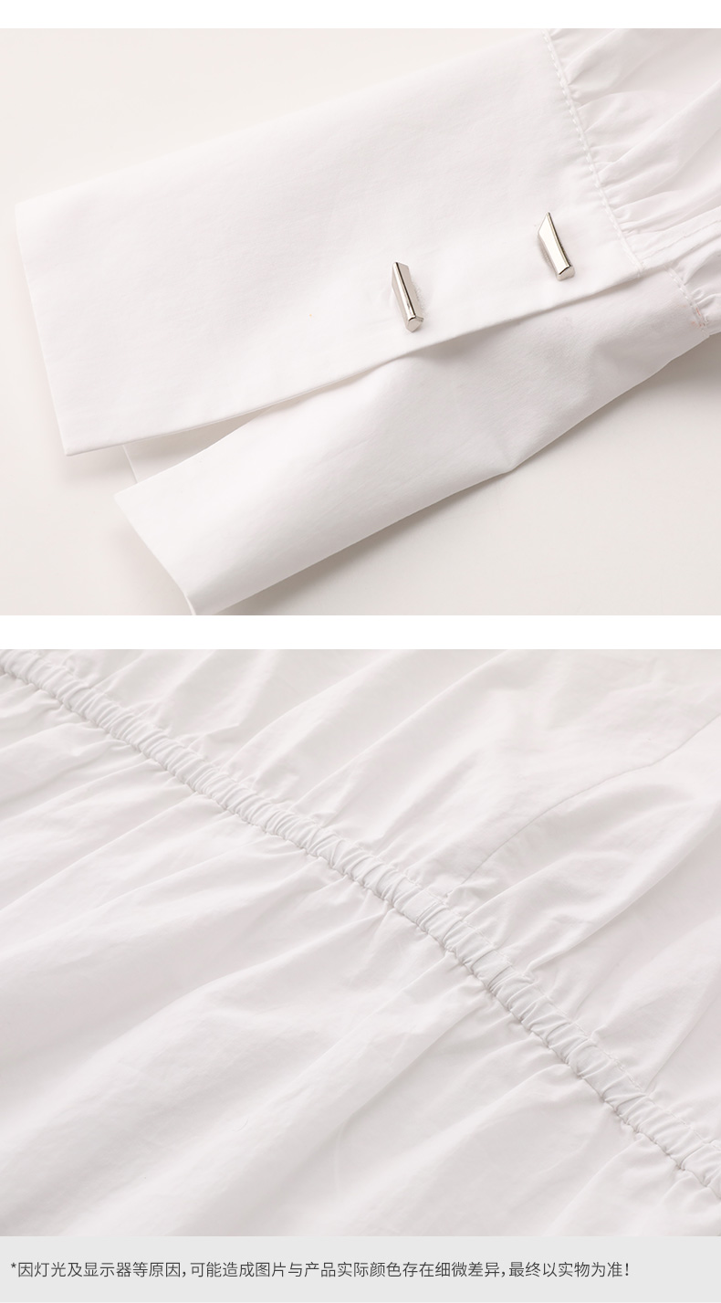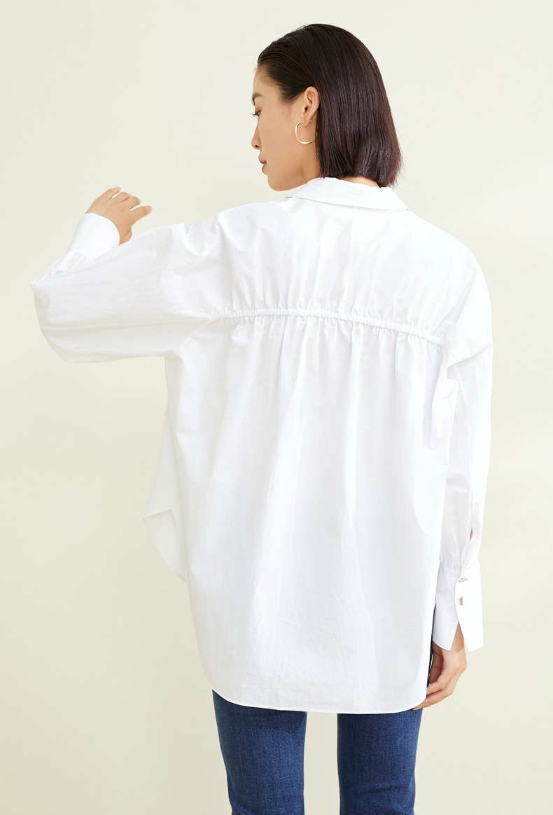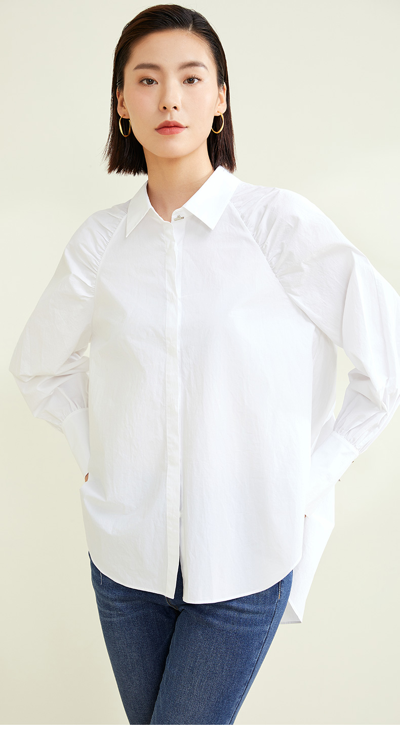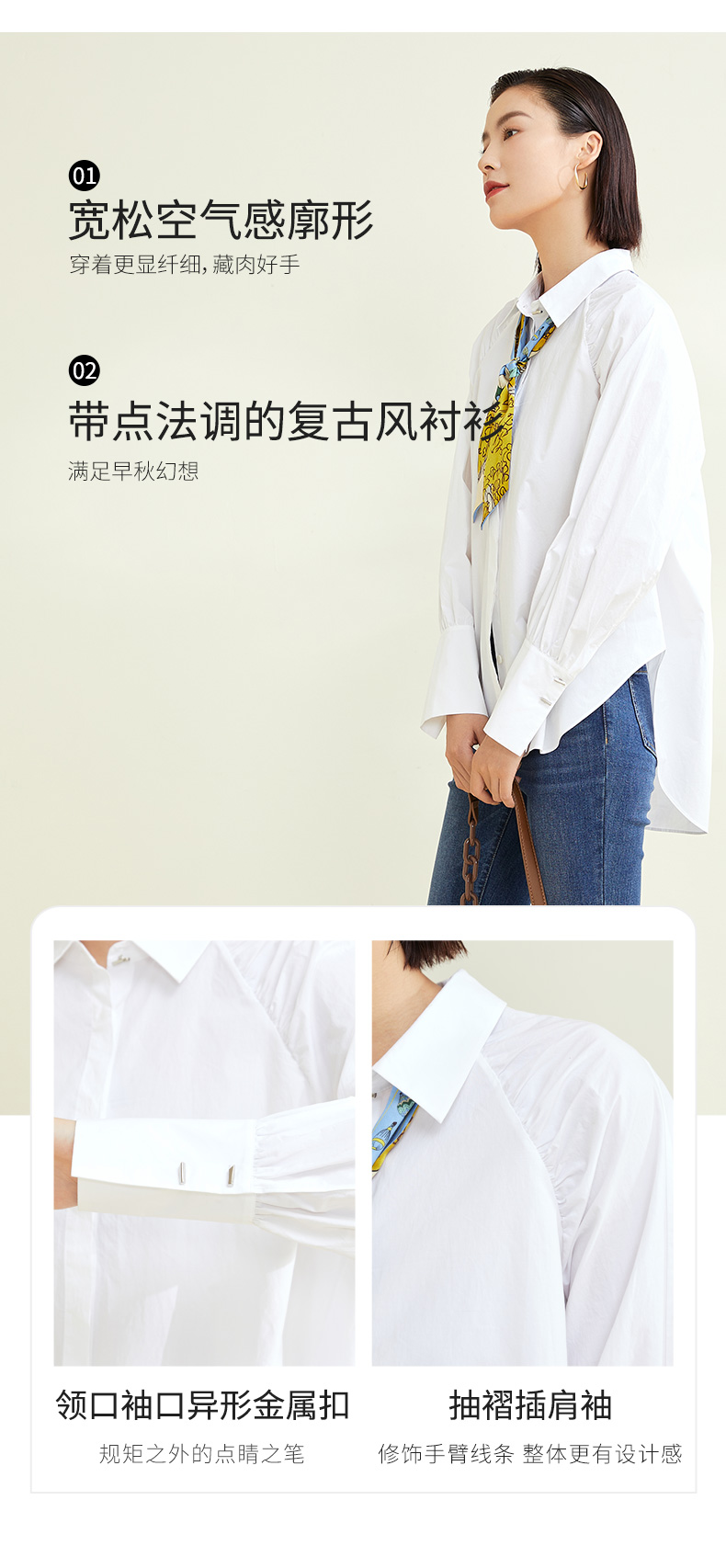 玳莎水洗平纹棉布110G慵懒风插肩长袖衬衫宽松休闲抽褶设计感法式上衣女 CC31301