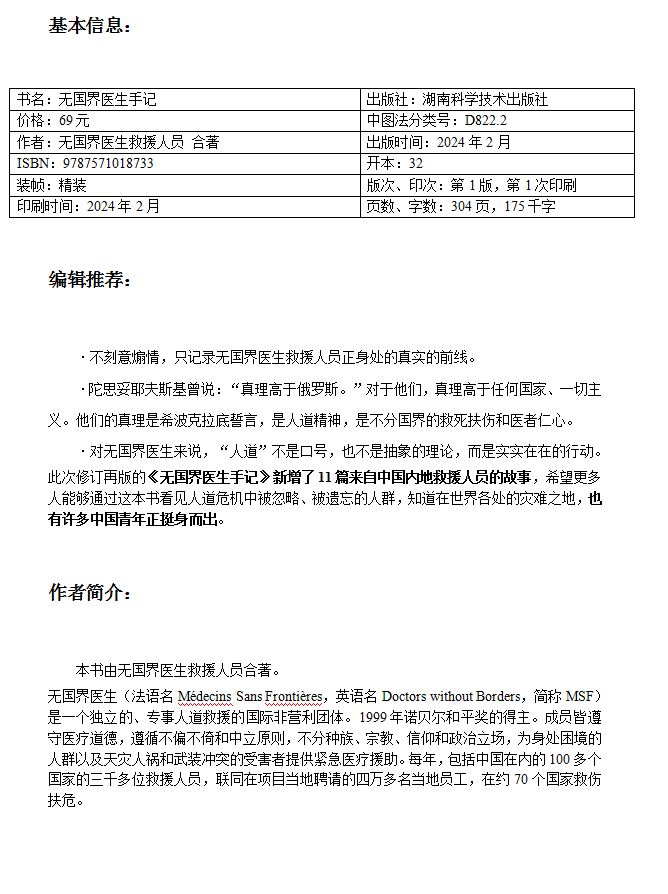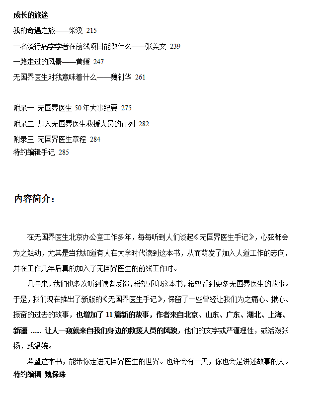 无国界医生手记 真理 值得他们穿越千山万水 值得他们走进本不属于他们的天灾人祸