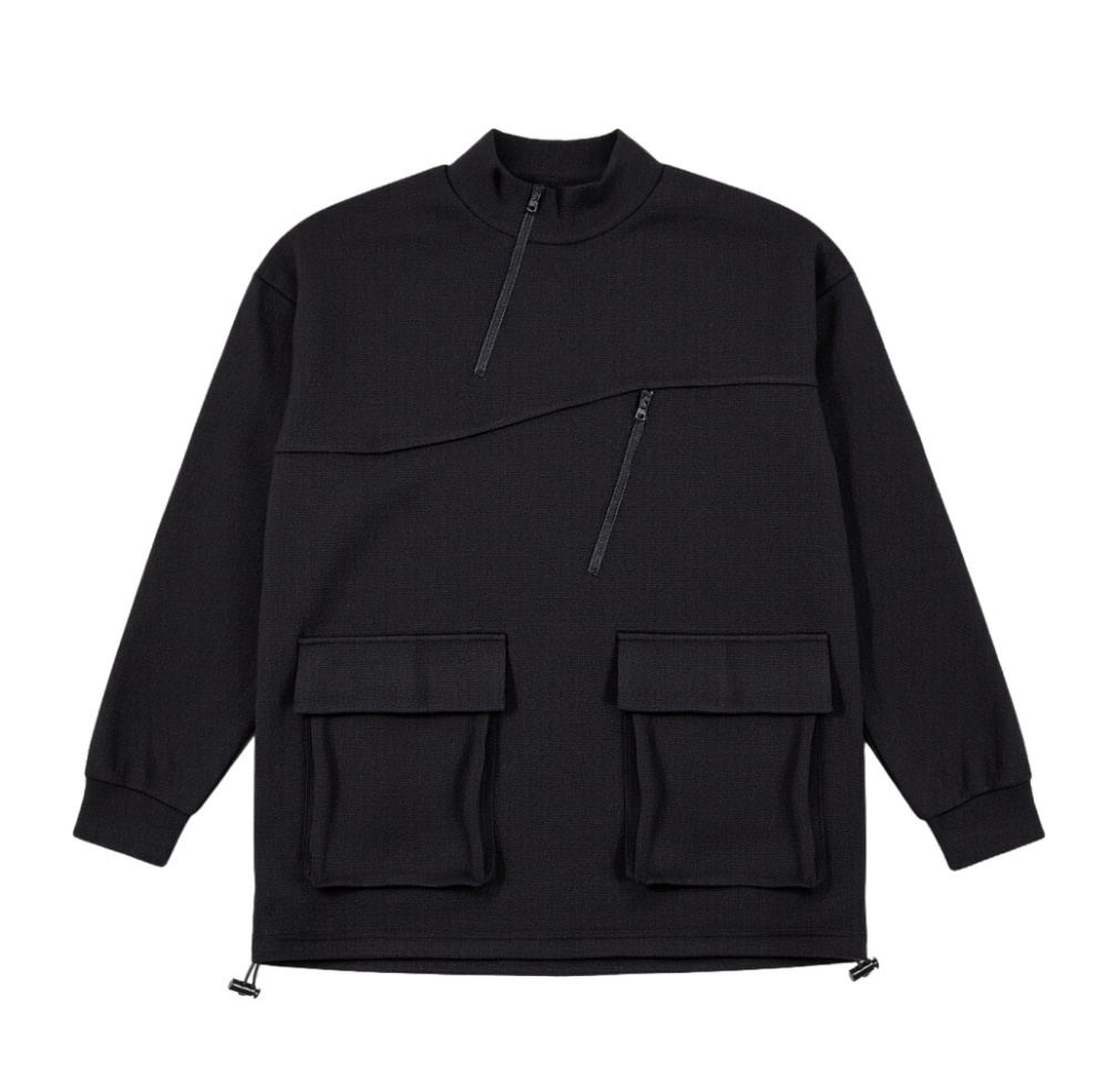 PINLI品立2025秋季新款宽松立领套头纯色卫衣可收缩下摆上衣男潮B253109097