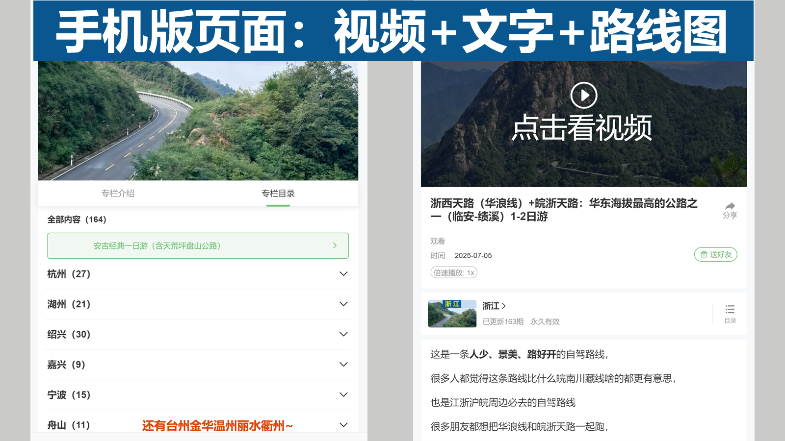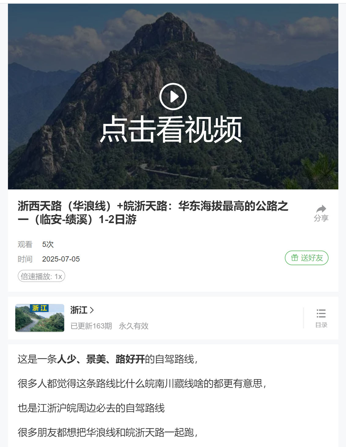 3 全方位:每条路线都有文字+视频+路线图,可以全方位了解这条路线的基本情况,参考性非常强。