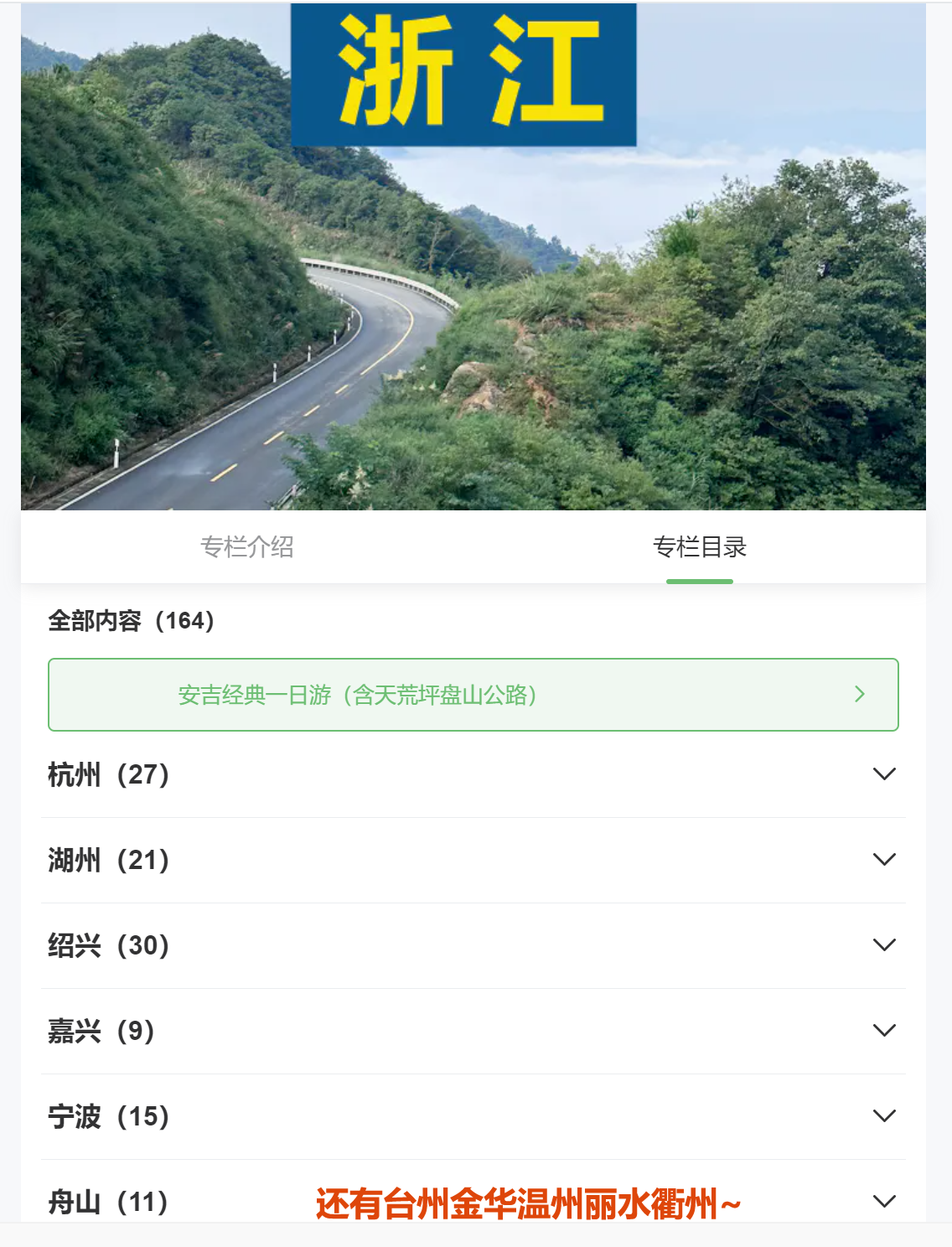 2 按照省份点开,路线较多的省份,一般按照城市或区域进行归类,方便大家查找。