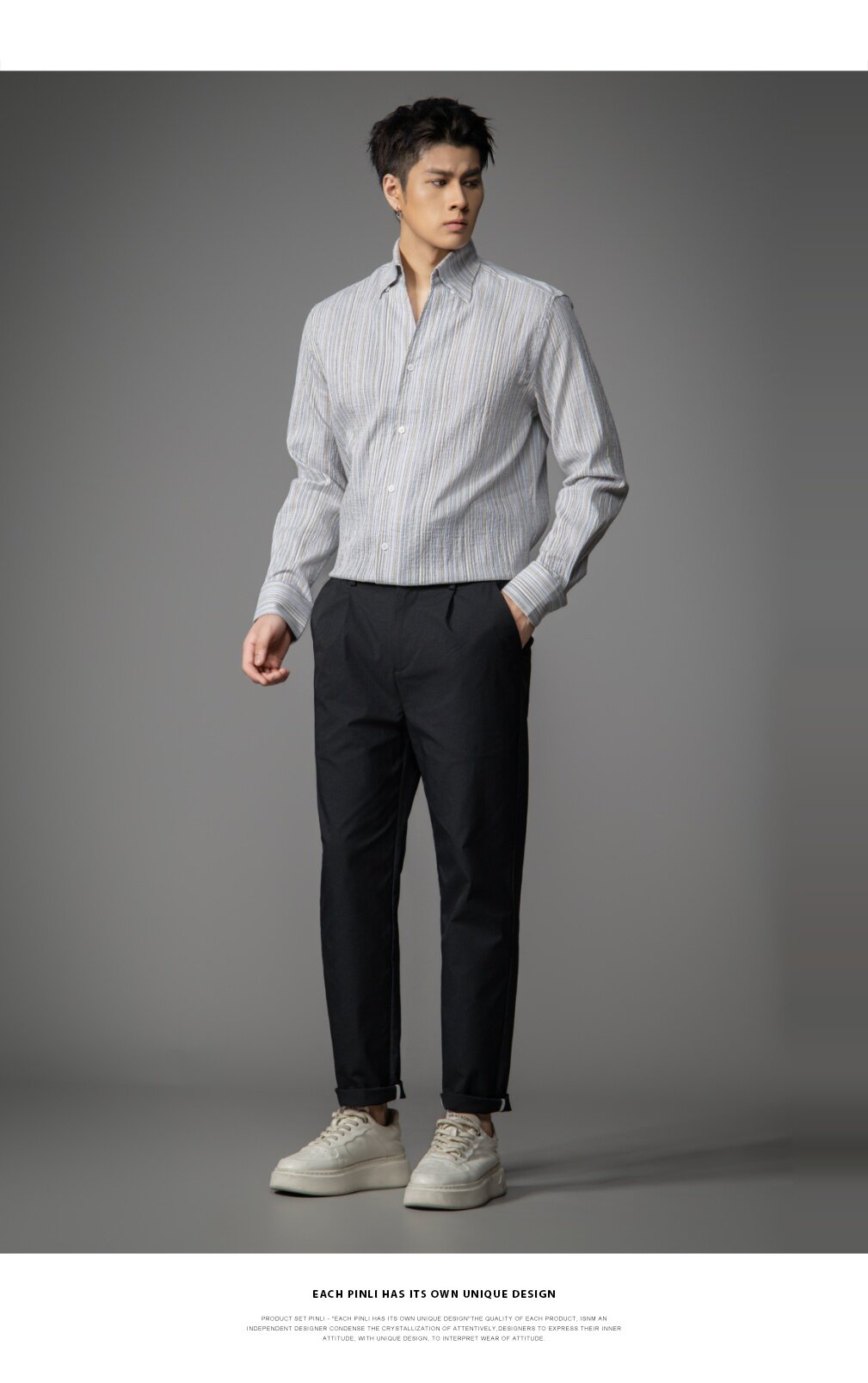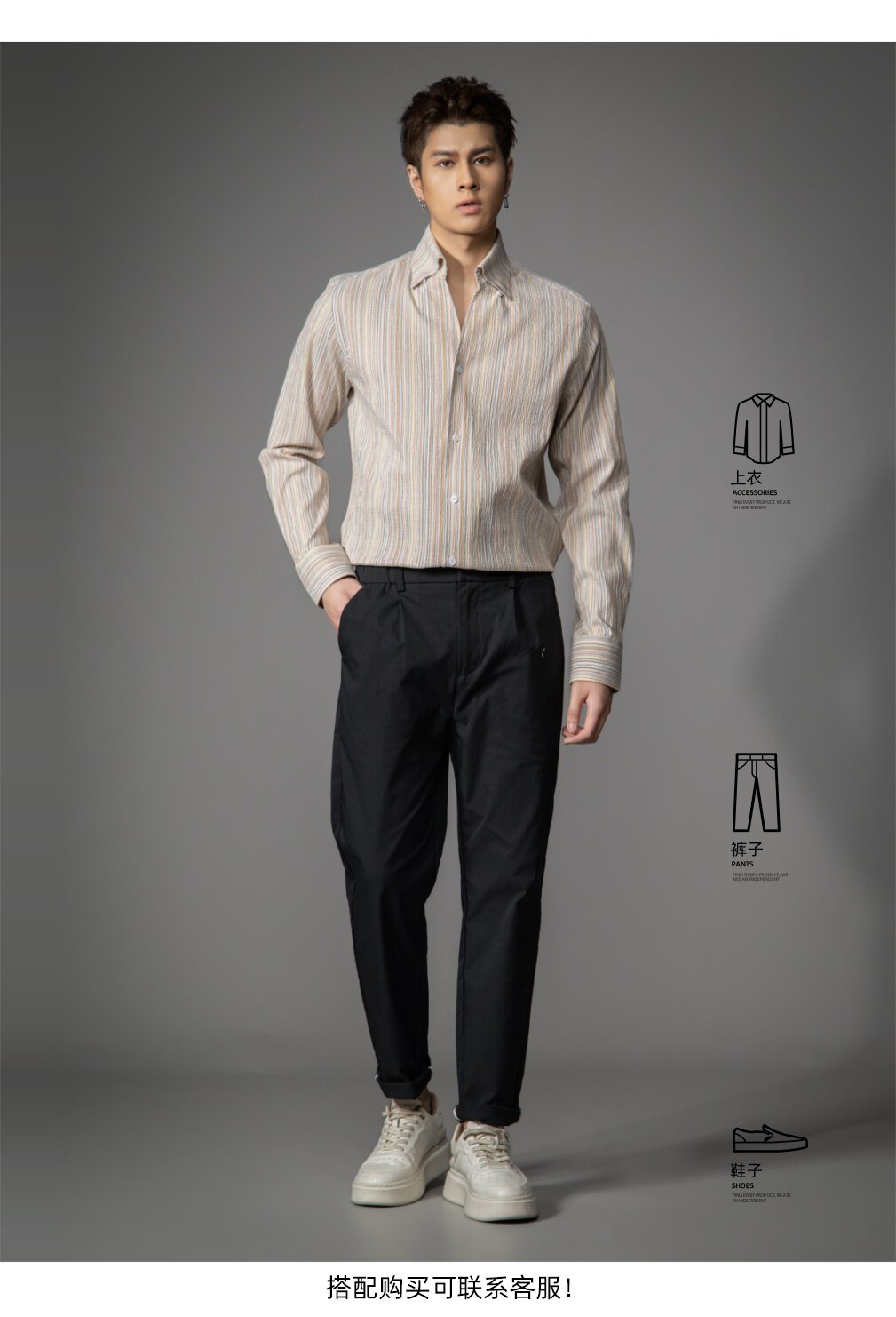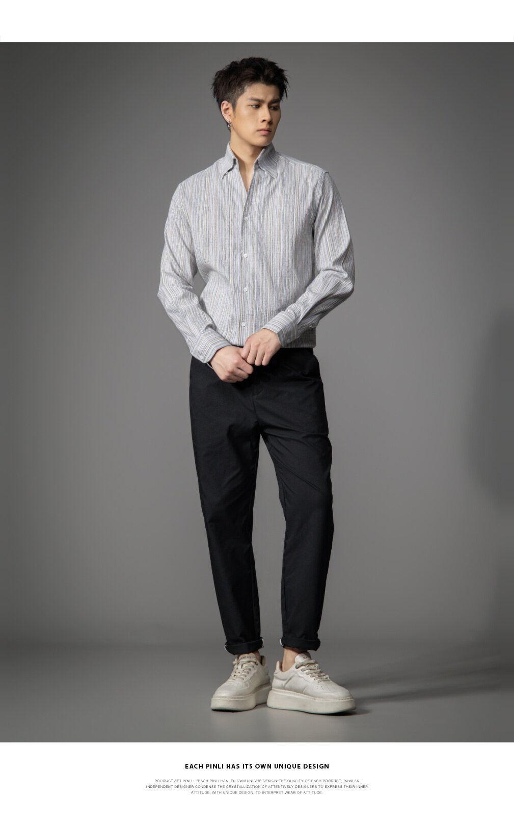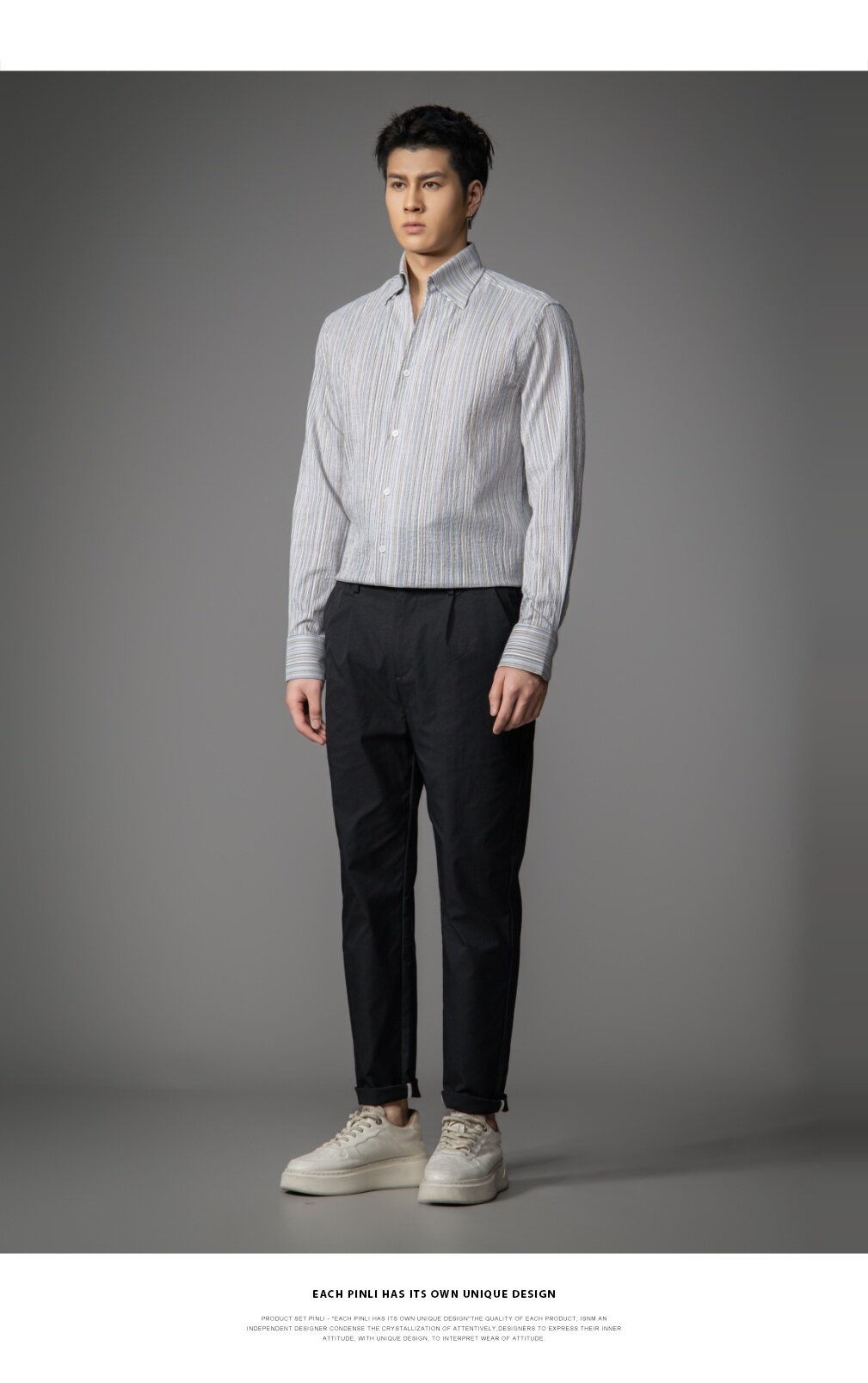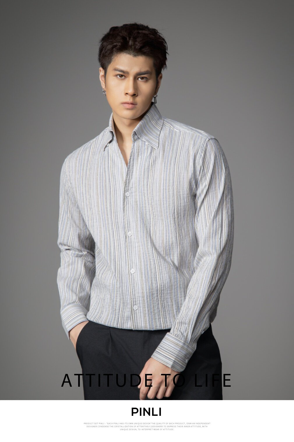 PINLI品立2026春季新款商务男士尖领条纹修身长袖衬衫打底衬衣潮GD262113004