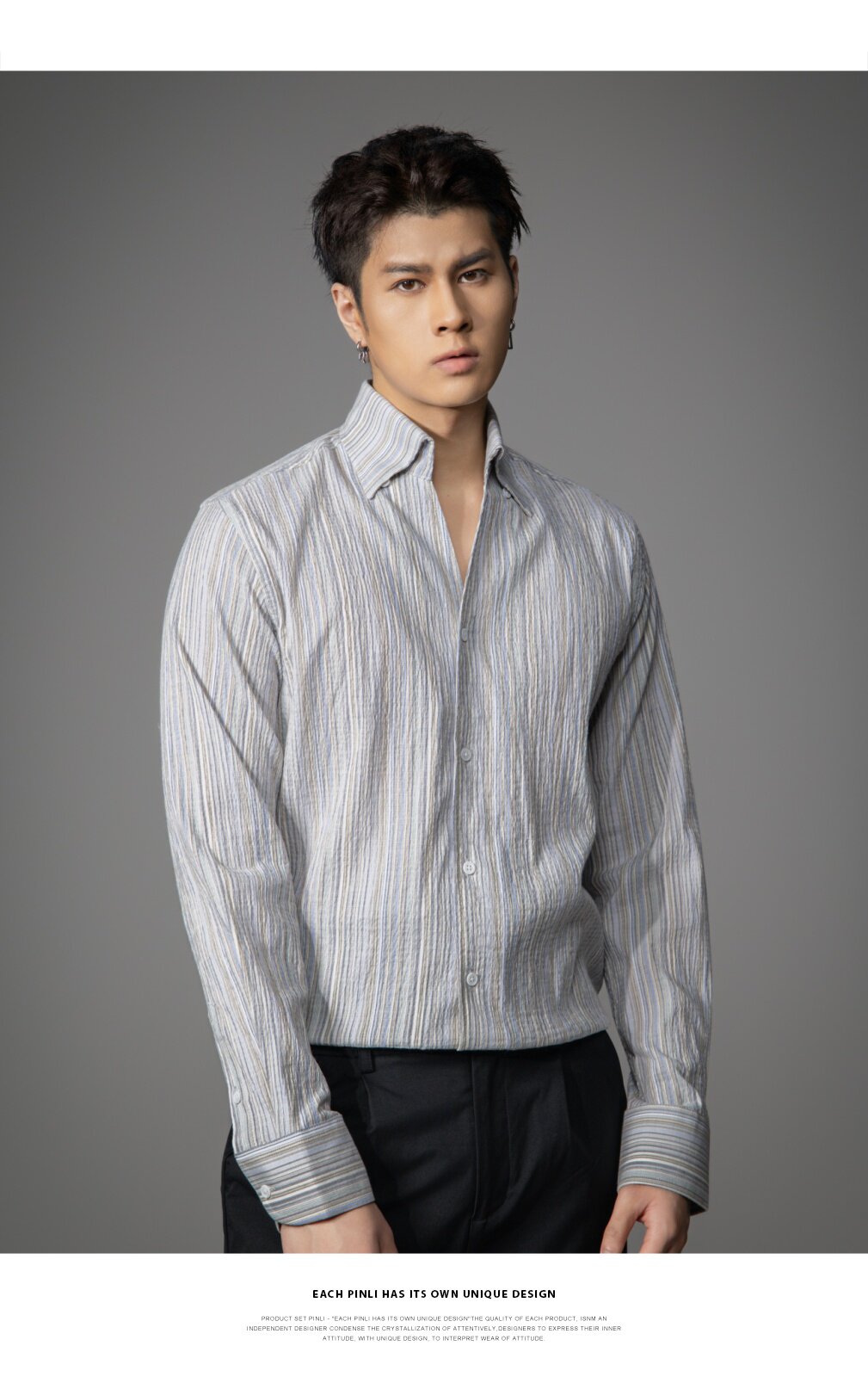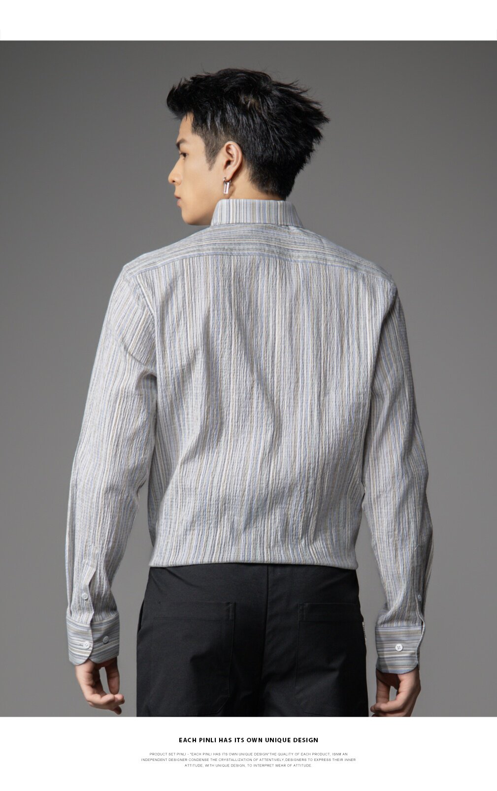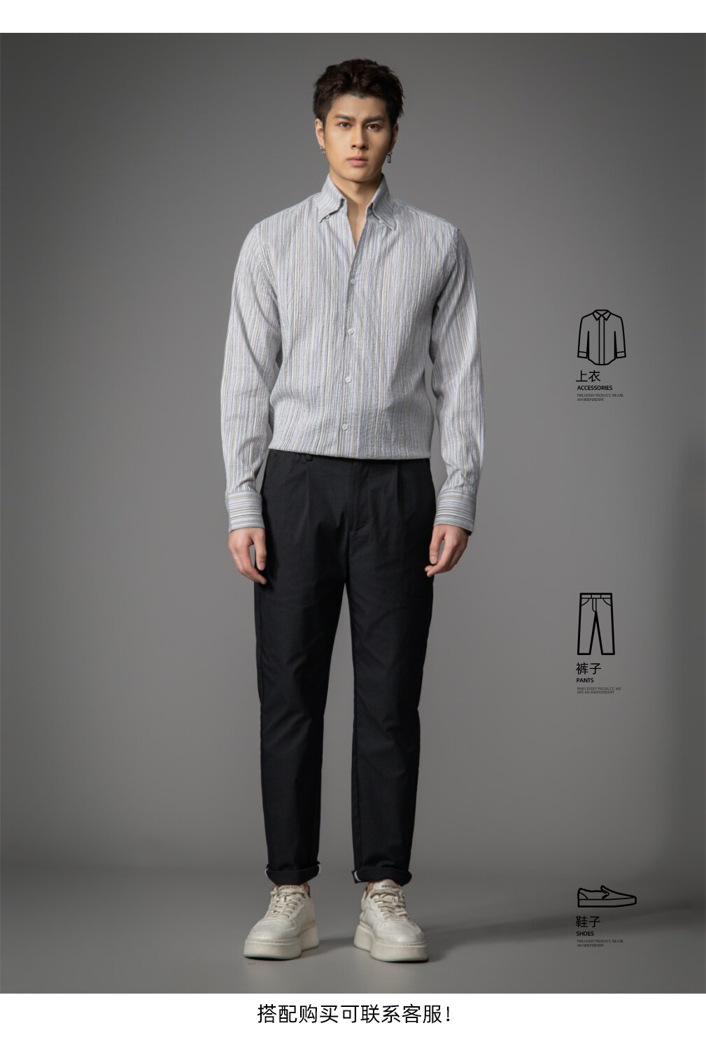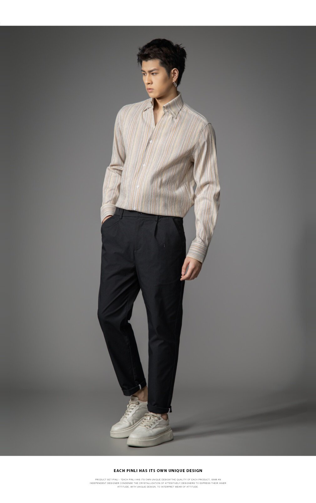 PINLI品立2026春季新款商务男士尖领条纹修身长袖衬衫打底衬衣潮GD262113004