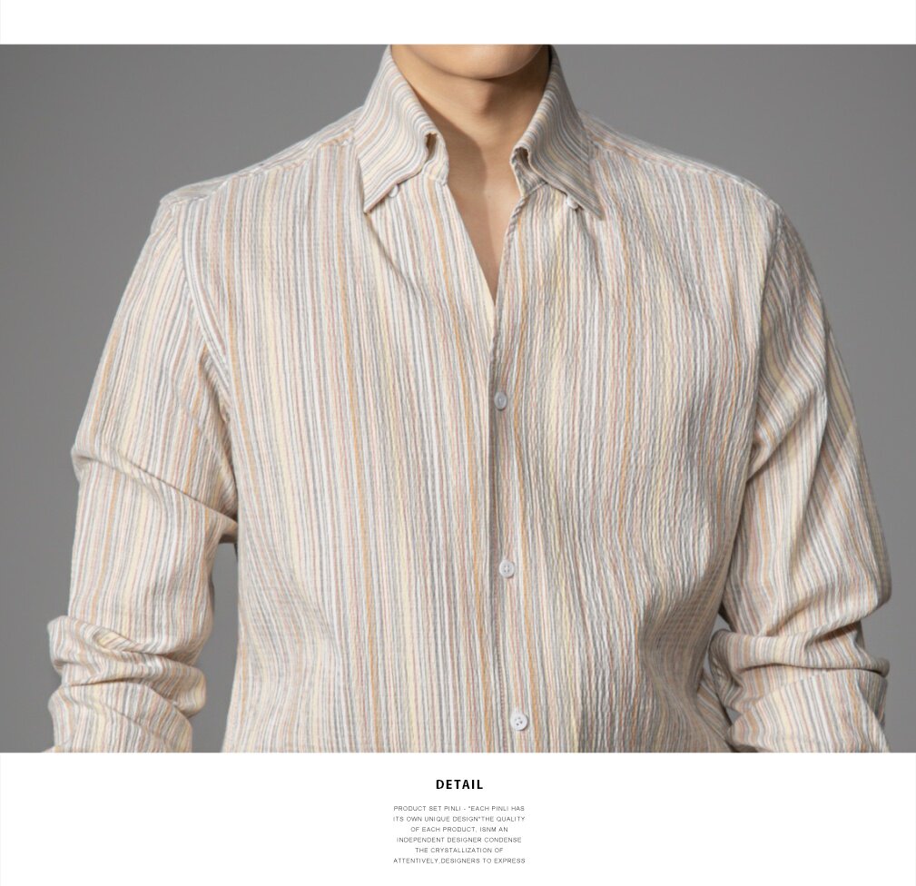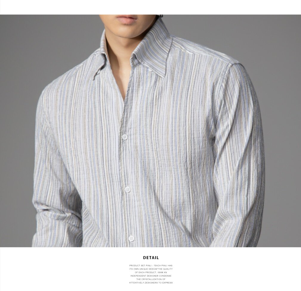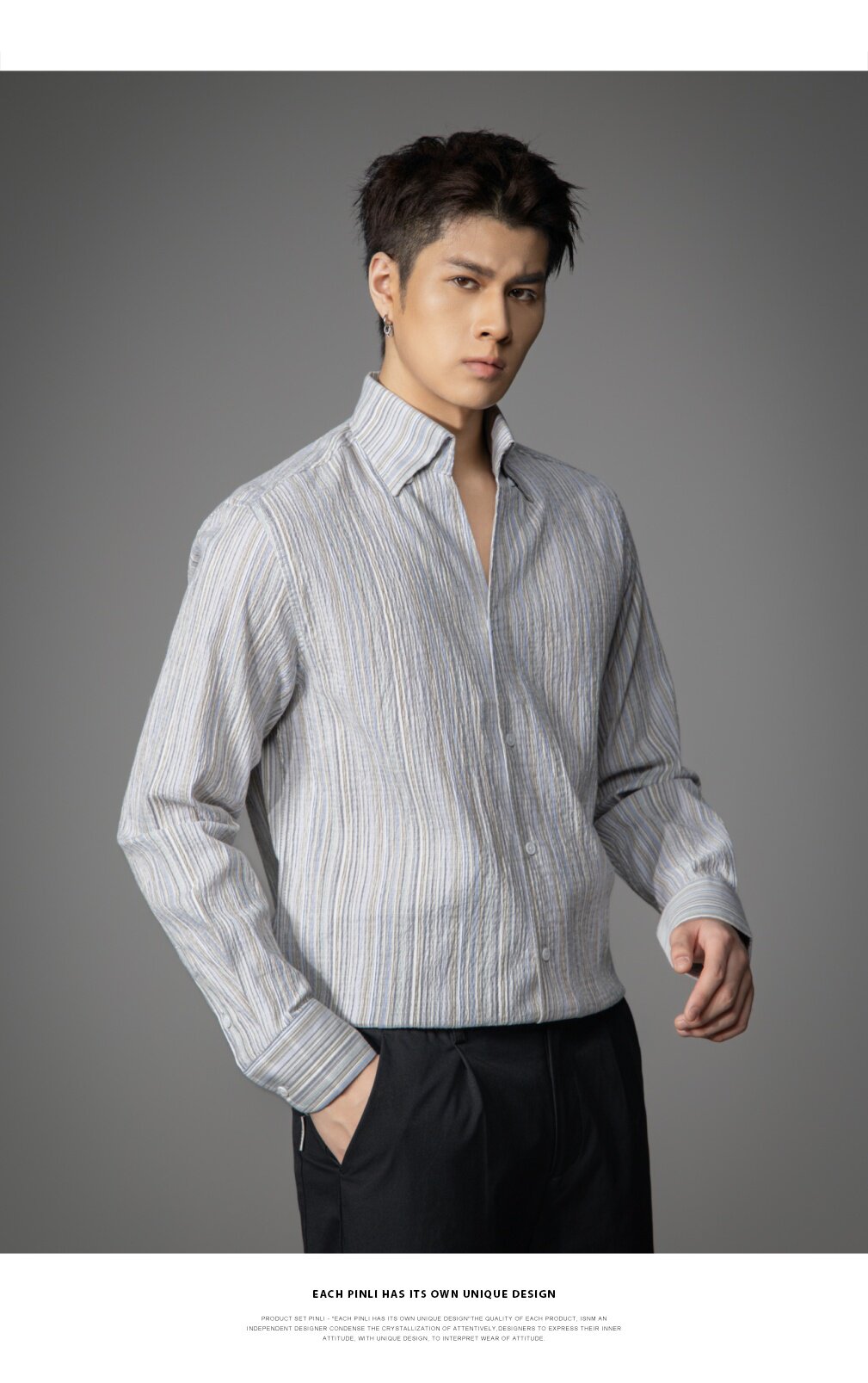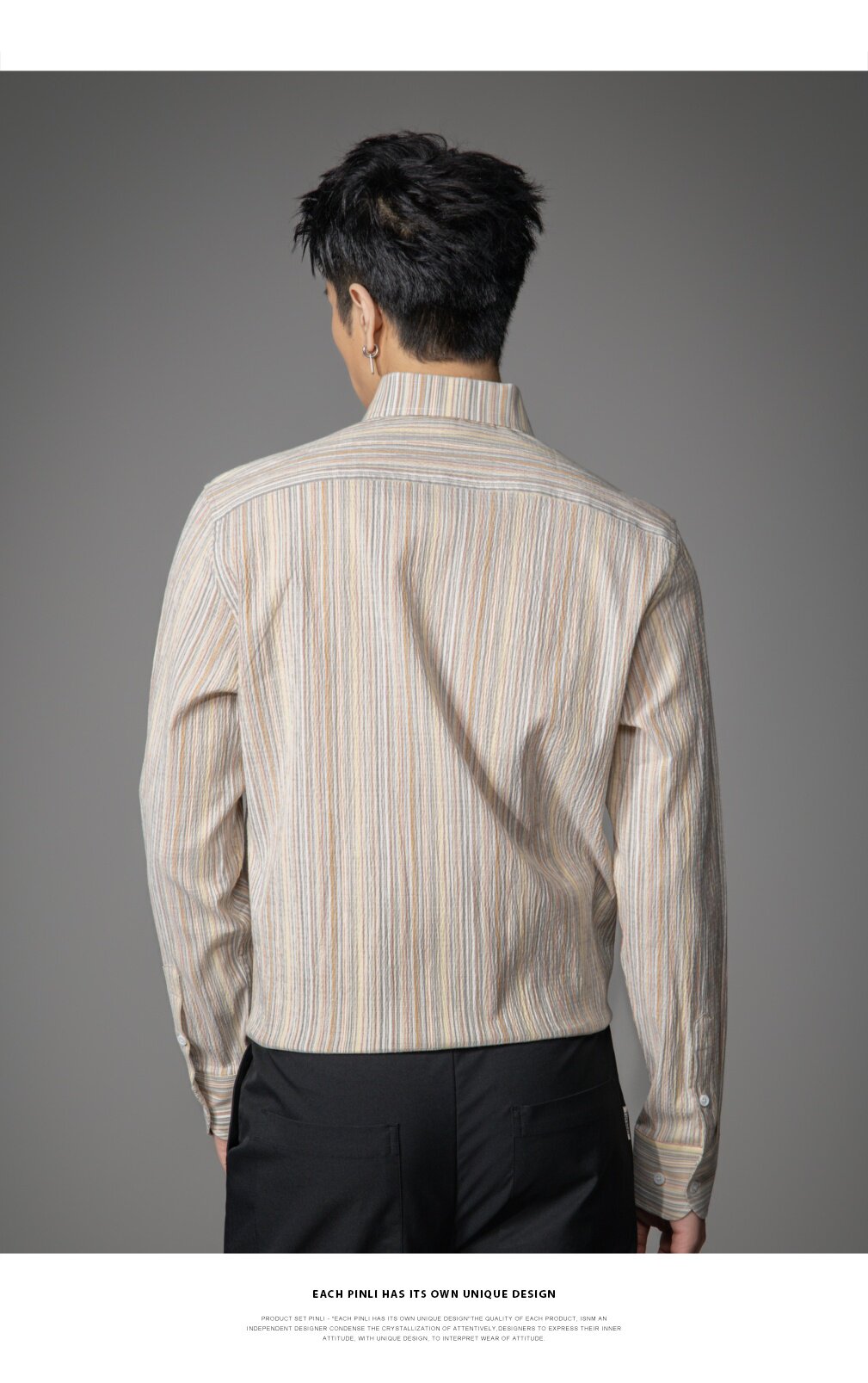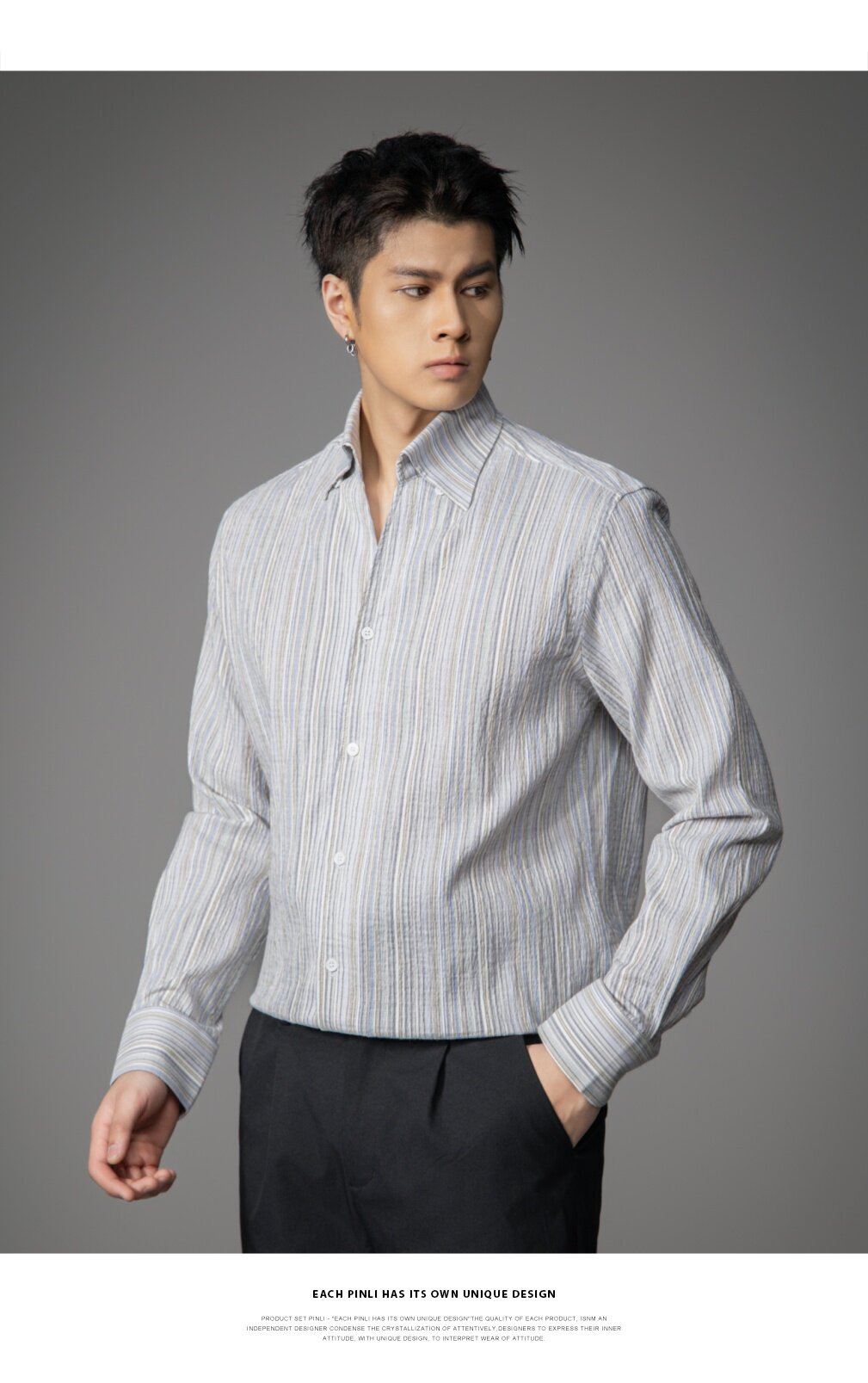 PINLI品立2026春季新款商务男士尖领条纹修身长袖衬衫打底衬衣潮GD262113004