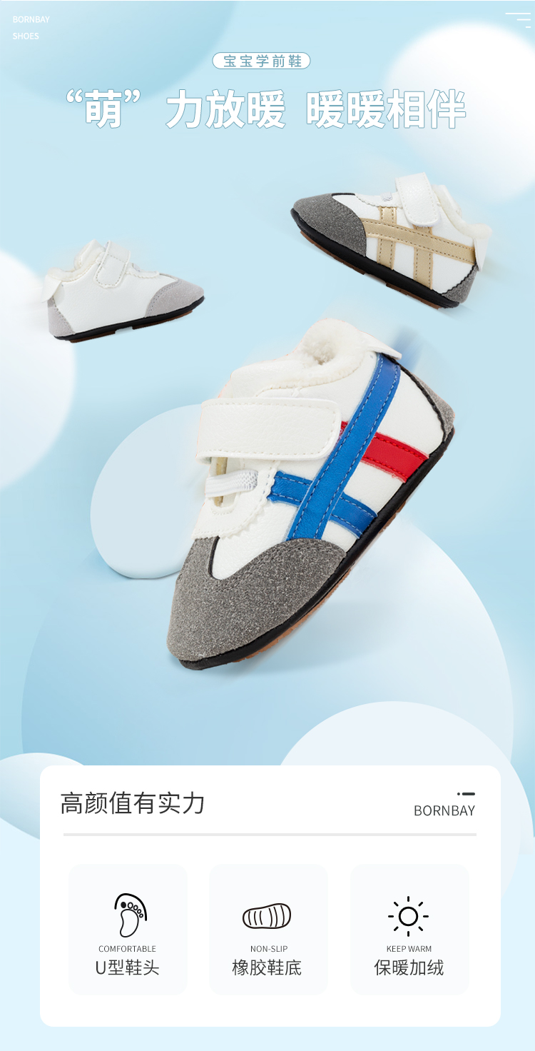 贝贝怡童鞋秋冬新款婴幼儿加绒学步鞋可爱宝宝鞋子224X425