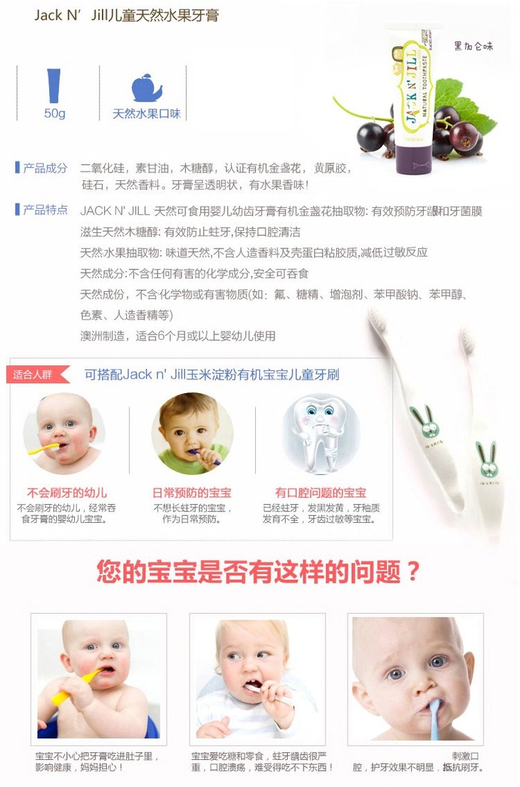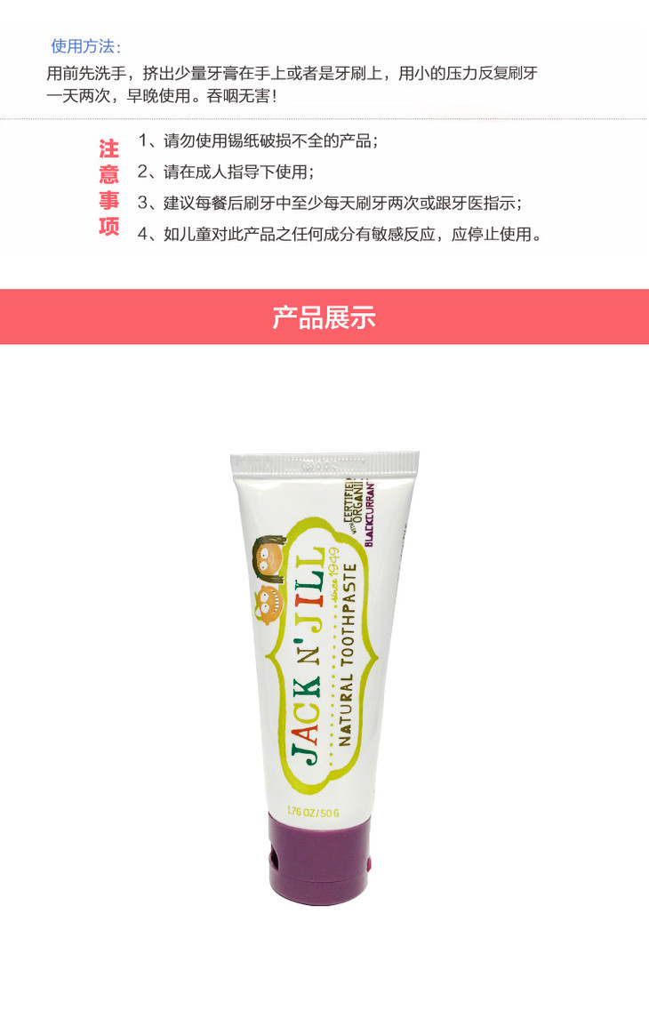 (永久下架)澳洲Jack n' Jill 可吞食无氟纯天然有机儿童牙膏 黑加仑味50g