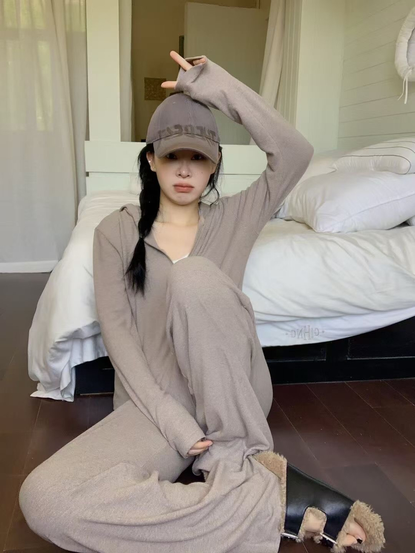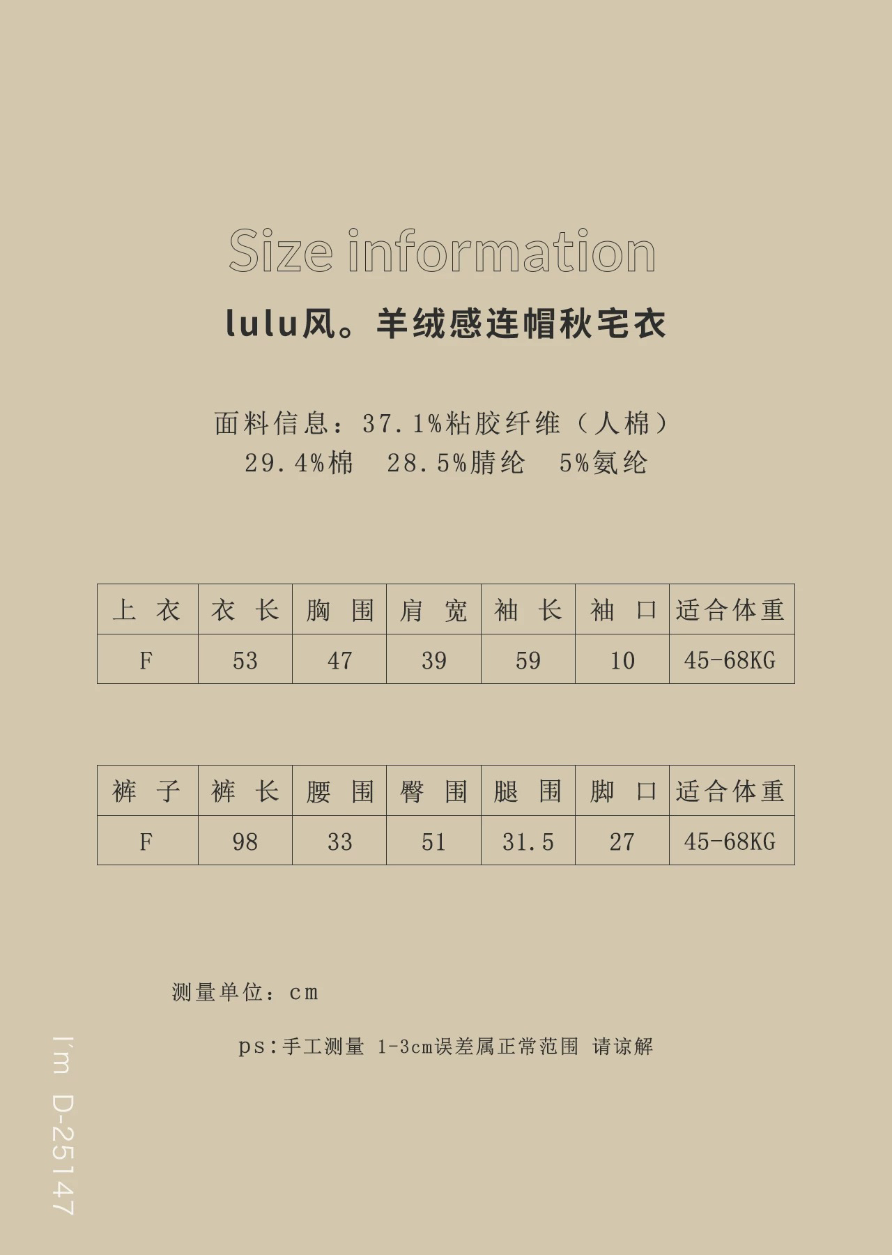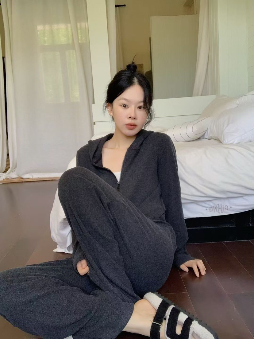 lulu风~羊绒质感连帽家居服套装 可外穿秋季休闲遛弯套装长袖长裤睡衣懒人两件套