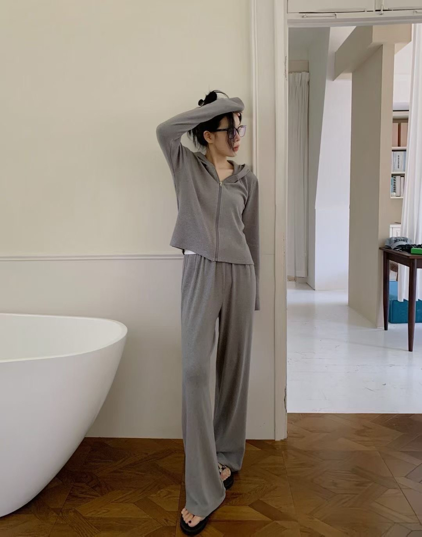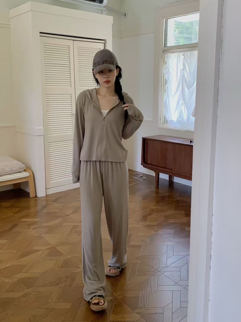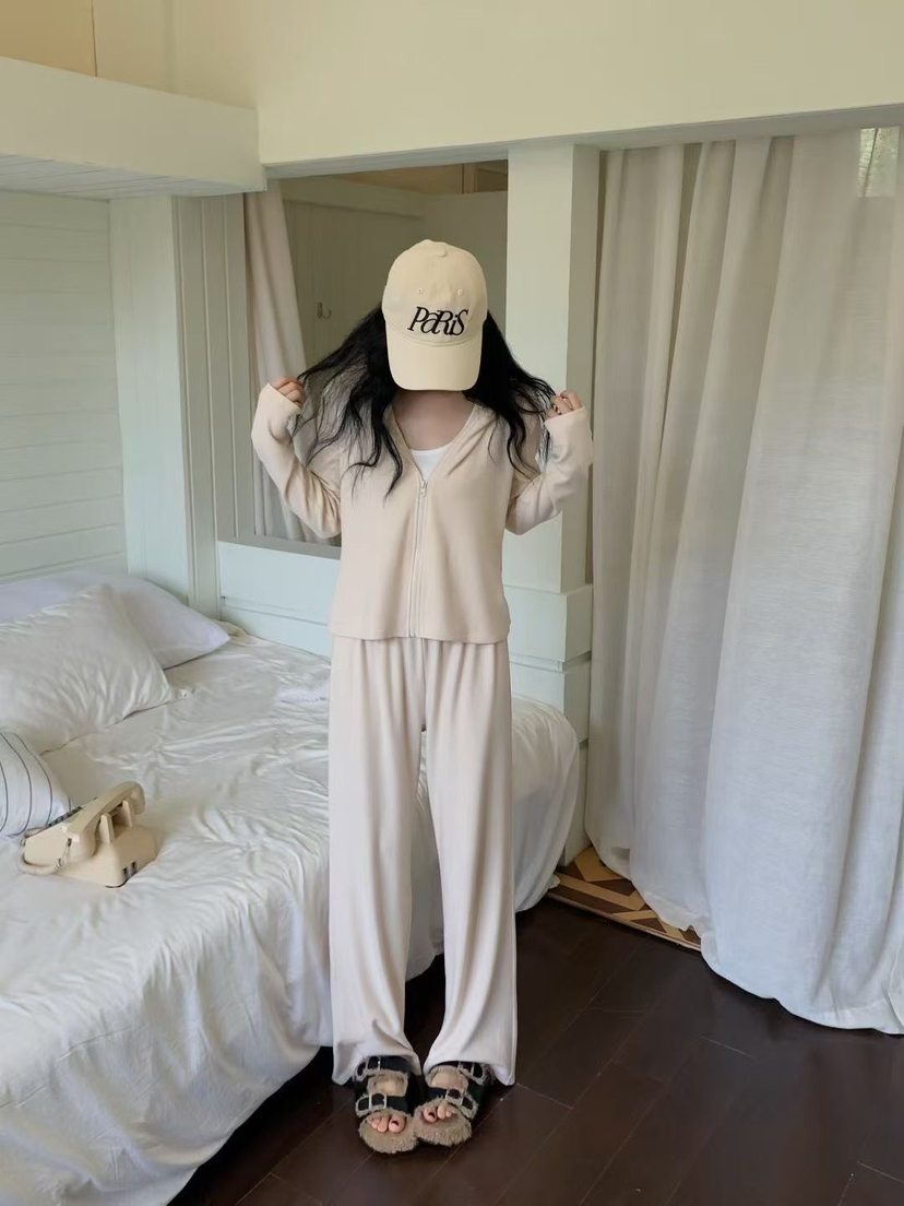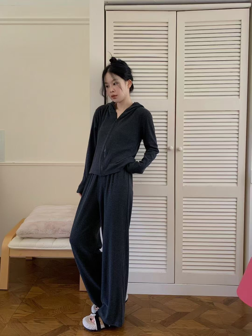lulu风~羊绒质感连帽家居服套装 可外穿秋季休闲遛弯套装长袖长裤睡衣懒人两件套