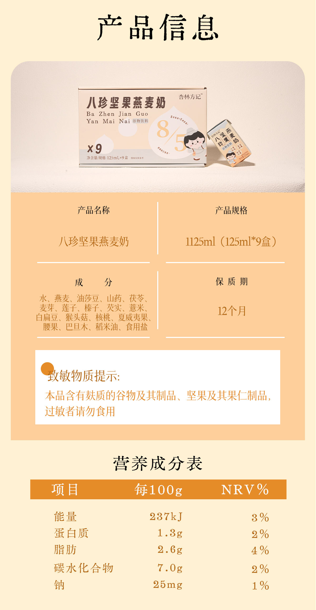 【杏林方记】八珍坚果燕麦奶0乳糖