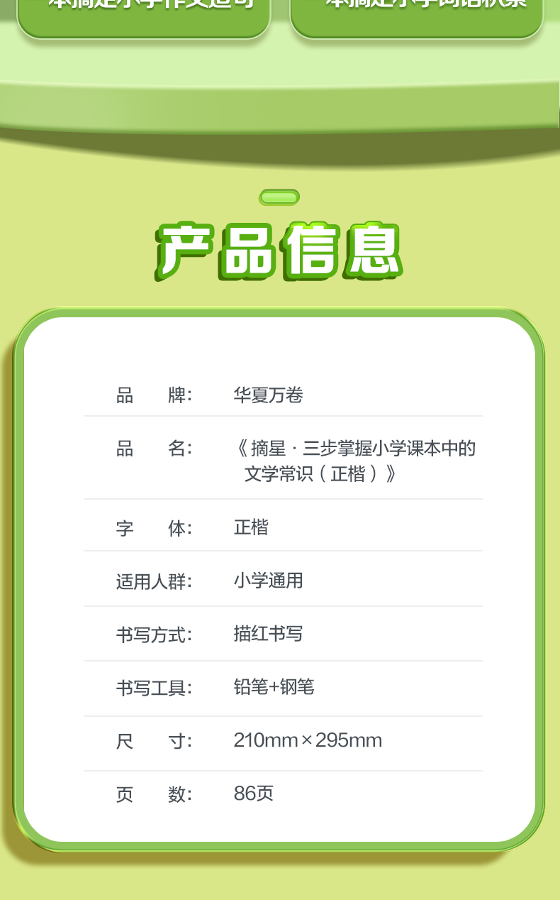 华夏万卷 小学生文学常识字帖同步小学语文教材一二三四五六年级字帖古诗文练习译文注释 周培纳手写体规范楷书字帖(华夏万卷(编)周培纳(书))