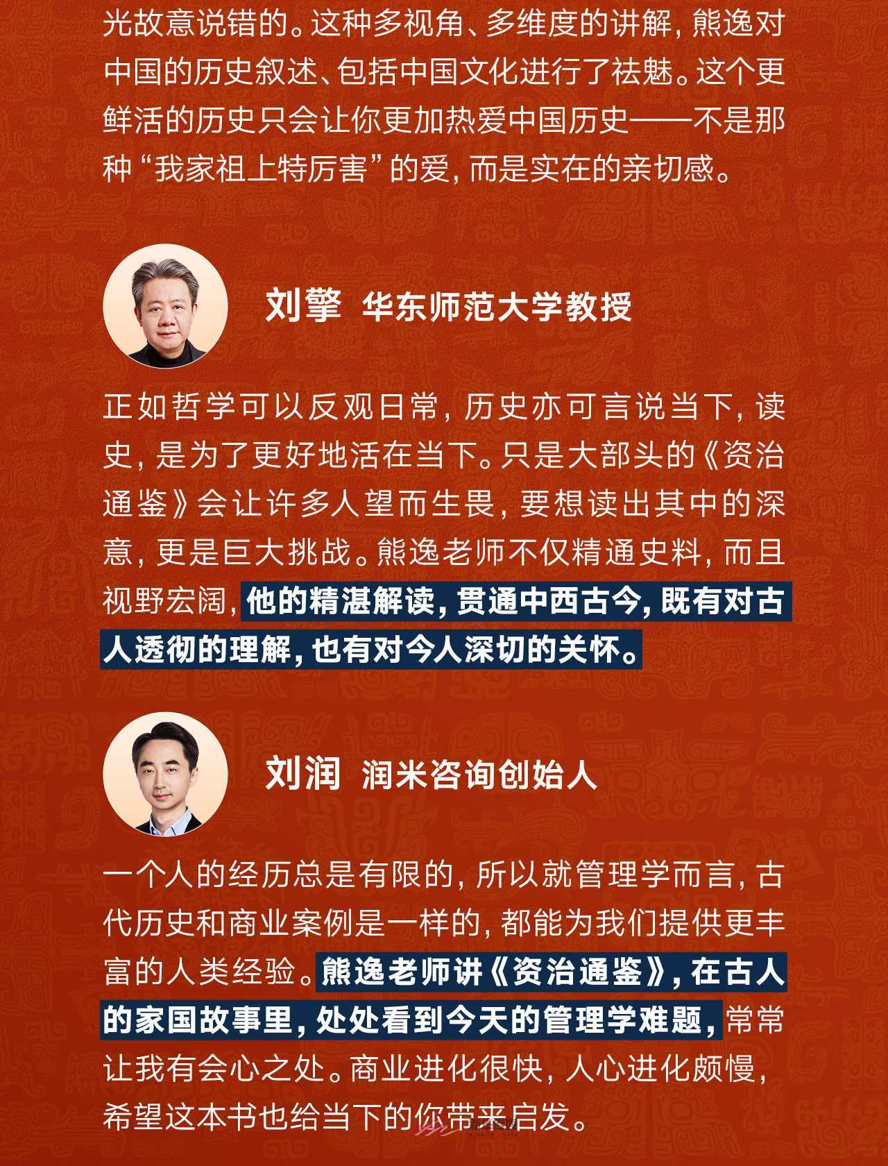 对于《资治通鉴》这样一部影响深远的史学经典,我们该以何种方式读懂它?《资治通鉴熊逸版》给出了答案。这是一项跨越数年的;读史大工程,作者熊逸用;串讲的方式,为读者逐字逐句解读《资治通鉴》。他的解读并不局限于历史本身,而是从中生发出对社会、文化等多维度、立体化的剖析,力求解读出现代人的大历史观。