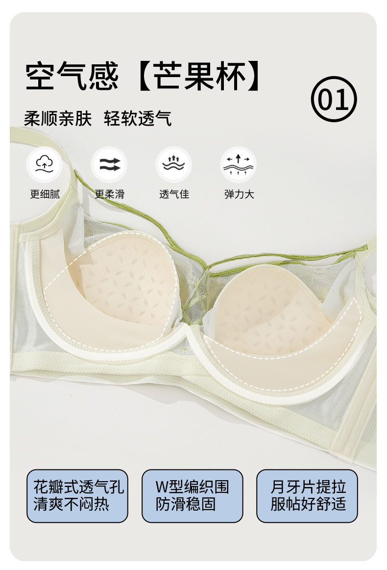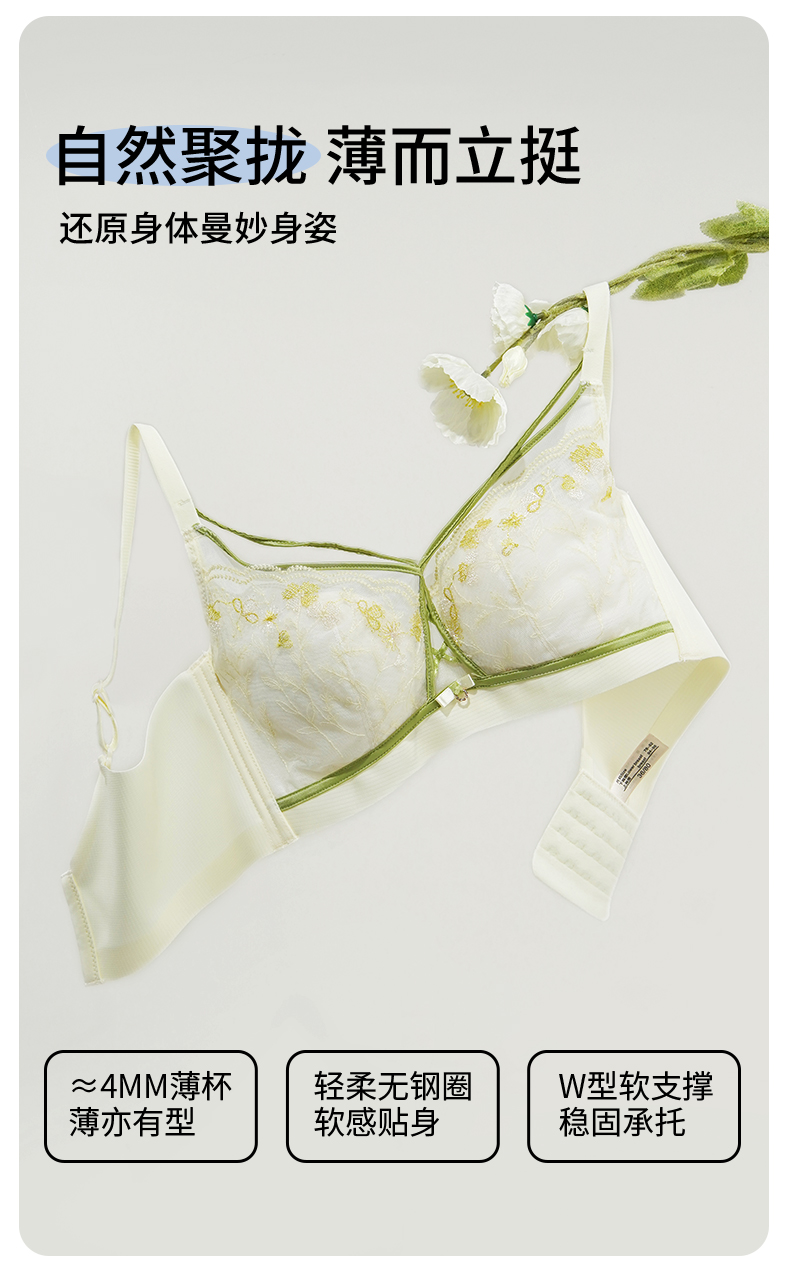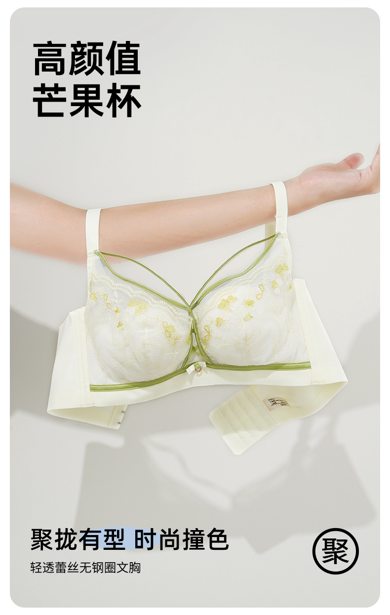 雅黛丽内衣女大胸显小薄款文胸无钢圈收副乳防下垂性感美背胸罩女