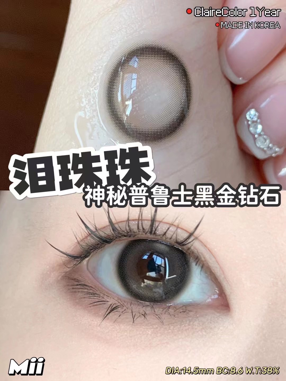 clairecolor·年抛 泪珠珠棕/泪珠珠黑 模拟泪光设计 就是你要的那种眼泪感;14.5mm /备注双眼度数