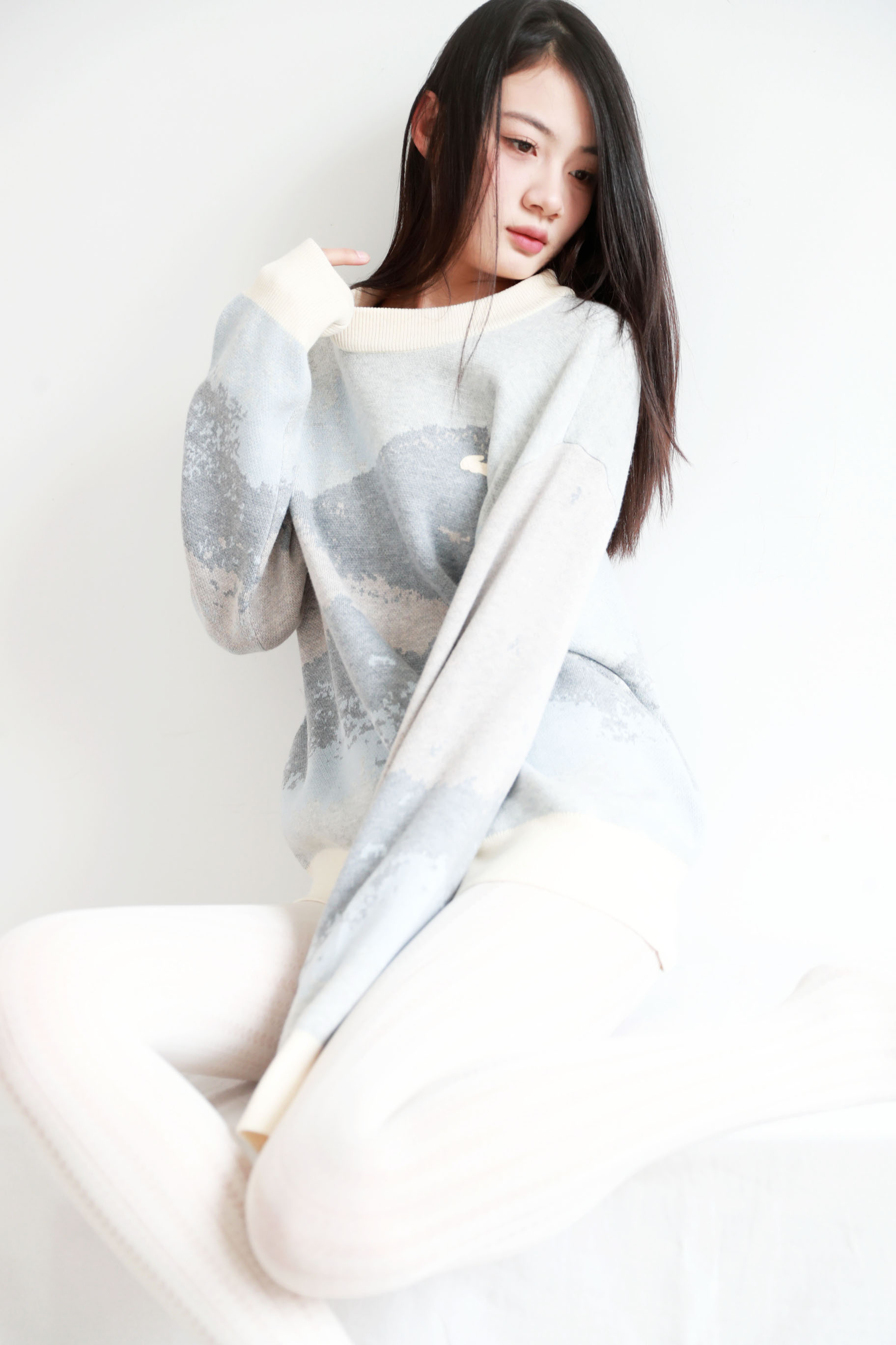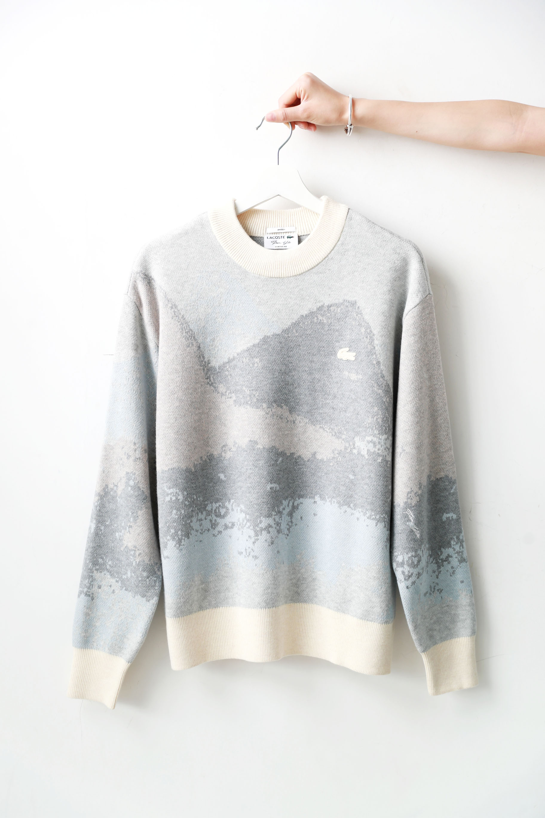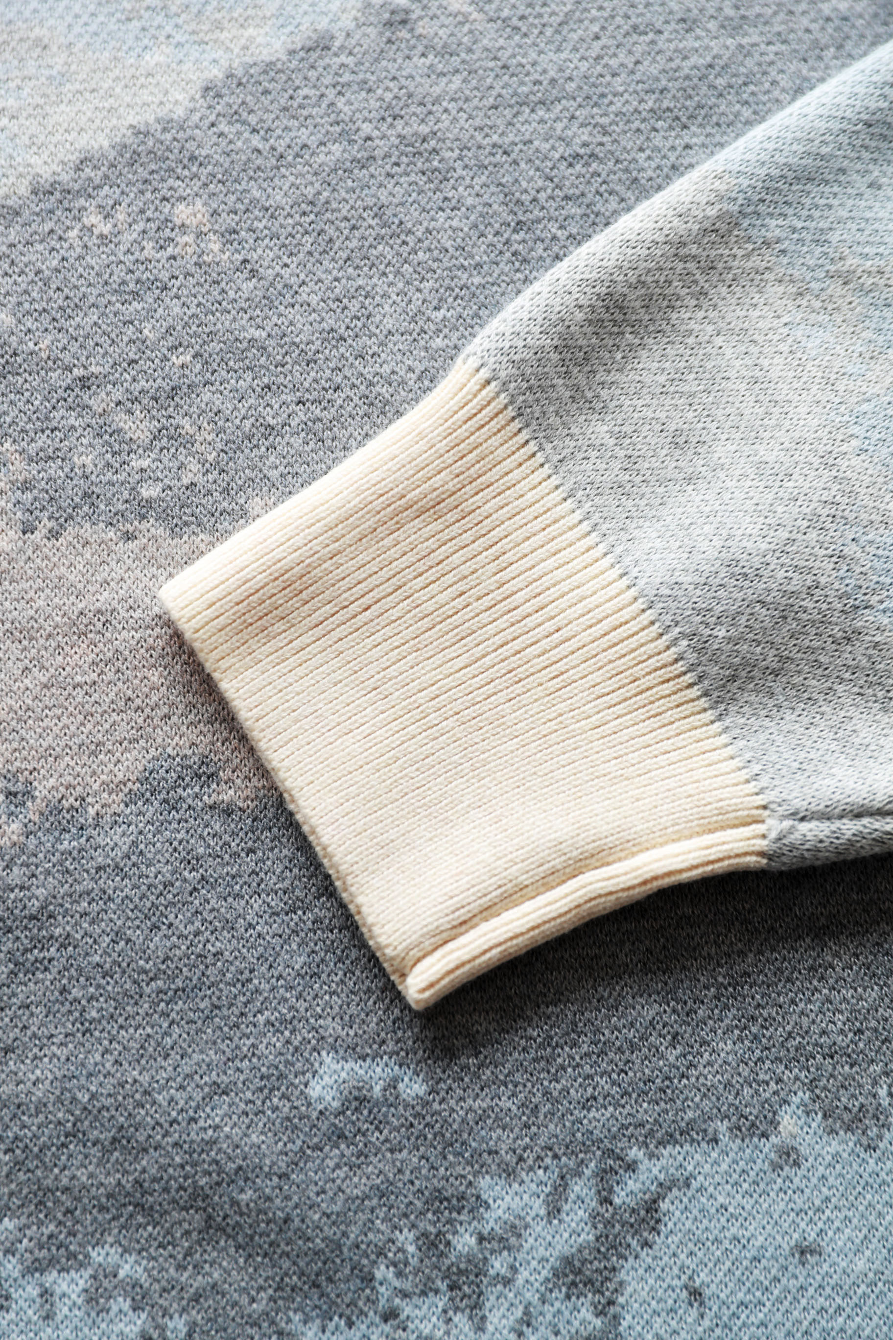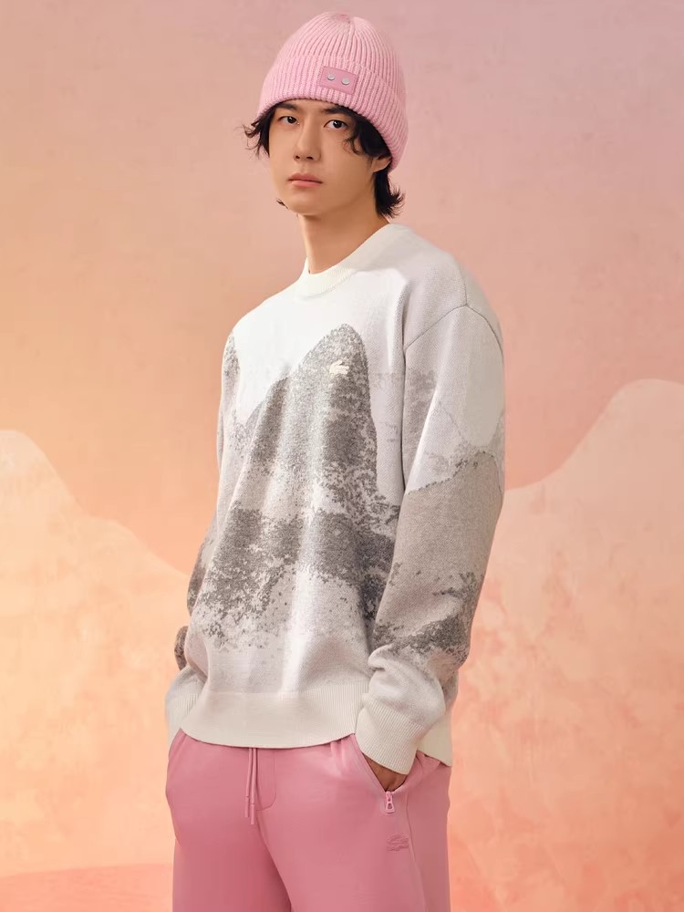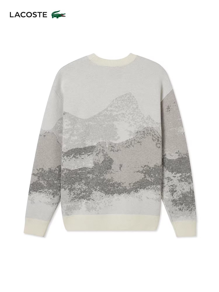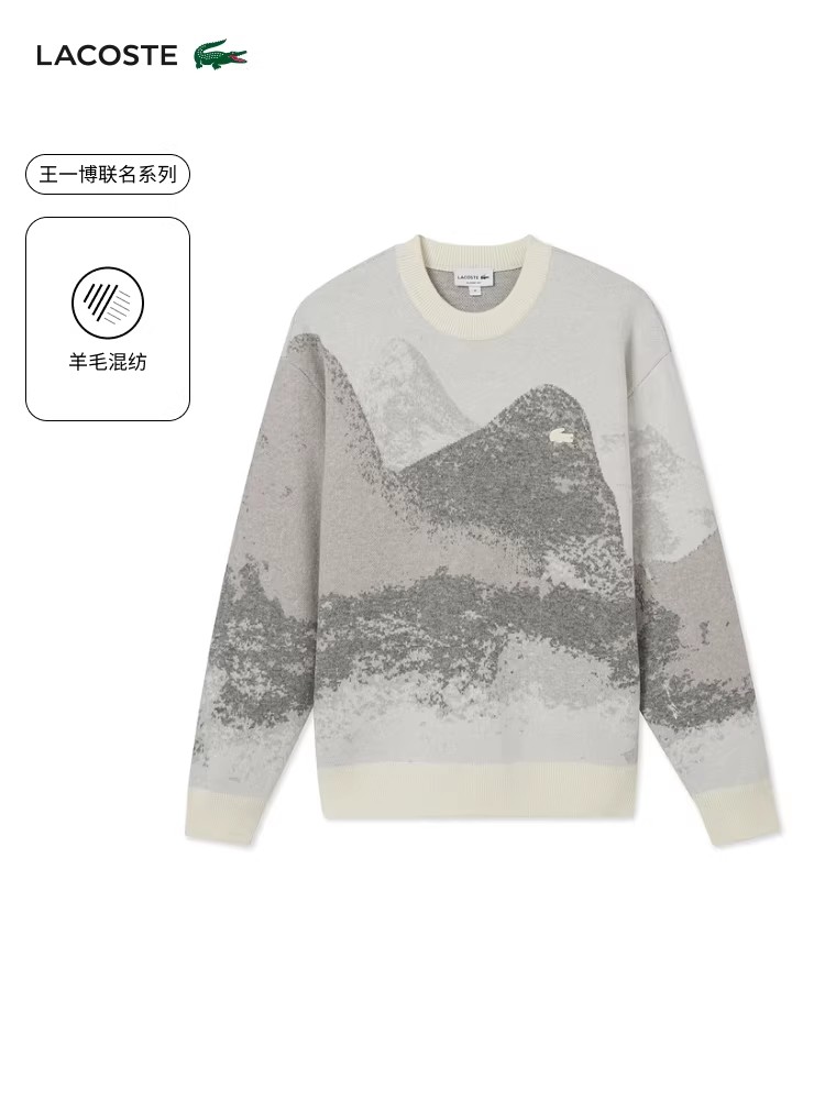 10%山羊绒+90%羊毛,签名款刺绣羊毛衣。山系提花圆领外套C122568